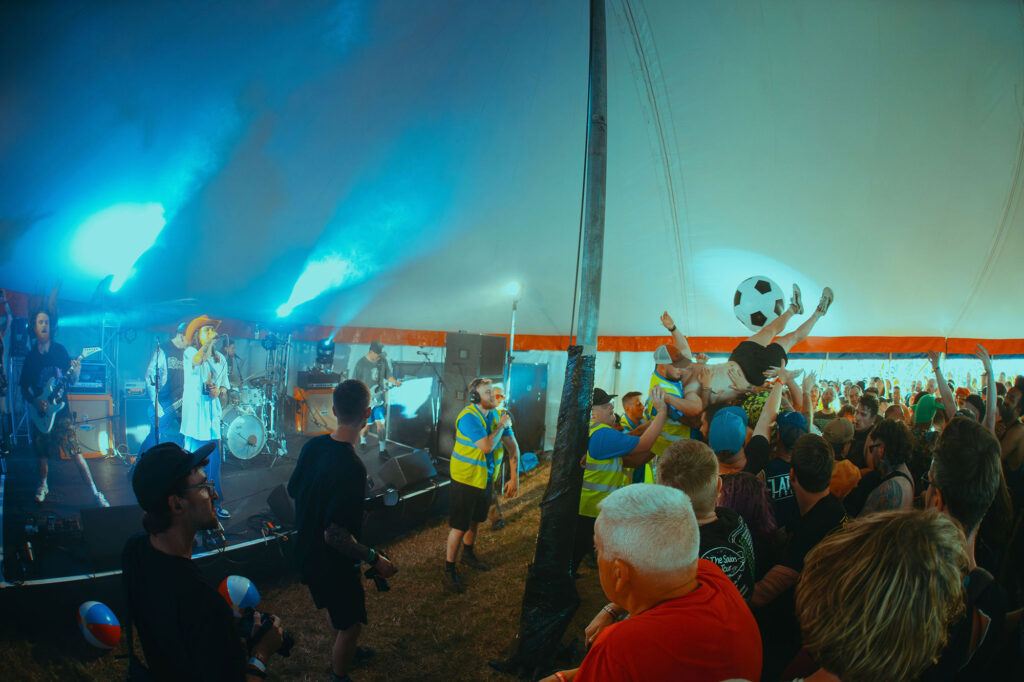 Shoegaze met emo in a haze of reverb, as OVERSIZE soundtracked the lunchtime comedown. Sam McCauleyās vocals floated beautifully over their grief-stricken soundscapes, though the dreamy pacing often lost the crowdās focus. OVERSIZE have found a delicate balance between heavy and ethereal which may be perfect for lying in the grass, but is less so for that oh-so-needed festival adrenaline.