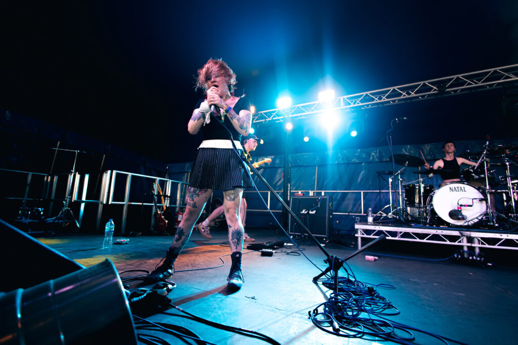 Friday kicked off with Bristolās MALLAVORA delivering a fierce wake-up call. Frontwoman Jess Douekās guttural screams on SkinĀ certainly shook the bleary-eyed crowd awake, while their unreleased track about radicalisation showed rare lyrical depth. Though some of the festival goers were still recovering from the night before, those that showed up took home MALLAVORAās powerful message about disabilities and the strength it takes to get up and go everyday. Returning the favour from when Jess joined them on stage a few years back in Liverpool, they were joined by fellow frontwoman of GEN AND THE DEGENERATES to debut their upcoming single Smile. Closing with the image of Jess leaning on her cane during the finale āDisorderā drove home their message of resilience – a band with both muscle and meaning.
