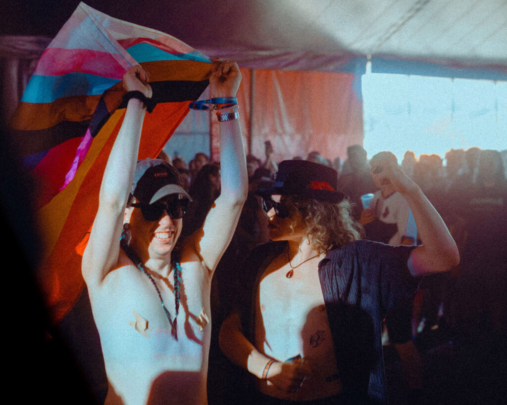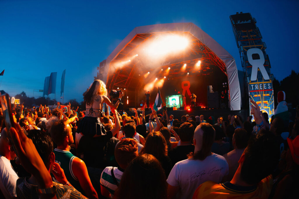 Controversy be damned, KNEECAPās headline set was a raucous celebration of resistance in a tumultuous global era. From the laid back Fenian CuntsĀ to the headbopping Get Your Brits Out, the duoās Irish-language rap ignited a constant raging mosh pit and brought out a sea of Palestinian flags and smoke flares, waved about in solidarity. Just as KNEECAP promise to unleash their heavier tracks, the crowd erupts into a thunderous chant of “free, free Palestine”, a moment which Mo Chara seizes with fiery conviction, thanking 2000trees for refusing to bow to media pressure to drop them from the lineup as a result of their anti-genocidal stance. A screen below DJ Próvaiās decks flash anti-Tory slogans and the group close out with Come Out Ye Black and Tans, cementing their status as punkās most contemporary rebels.