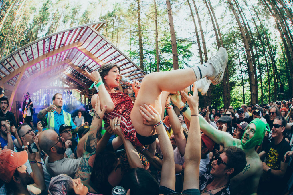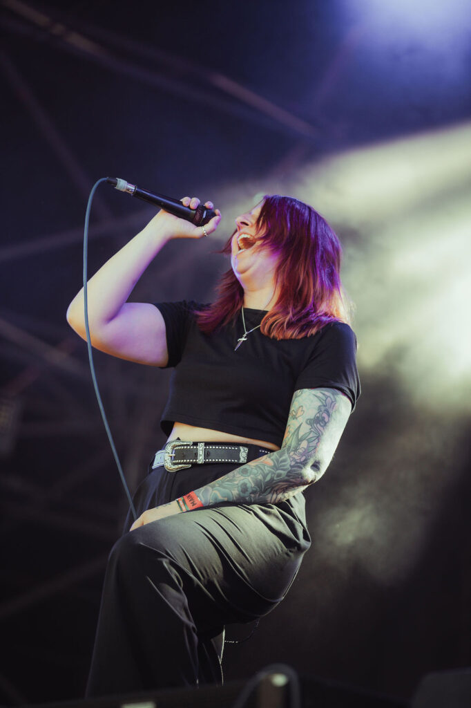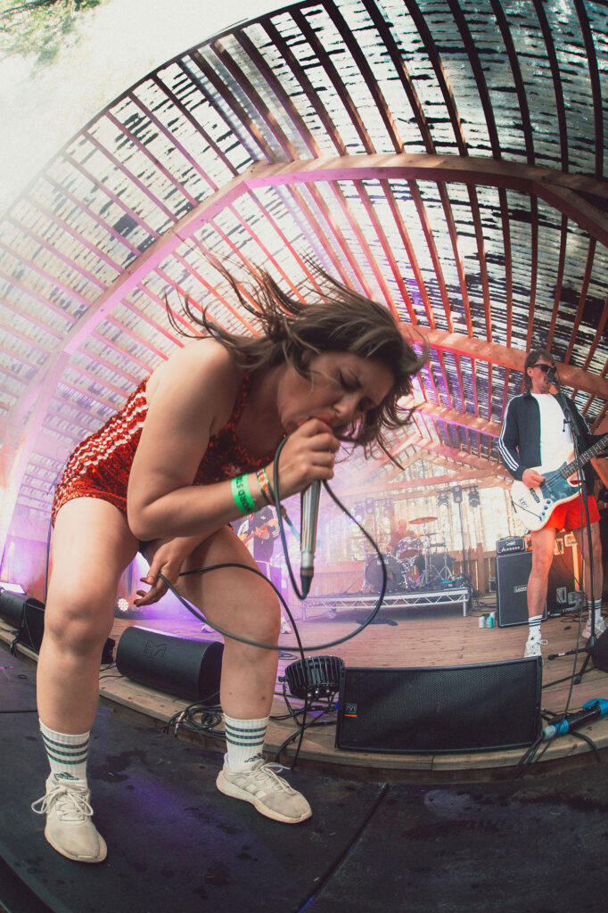 Tired from the heavy moshing and energy that 2000trees had brought, RĆRY brought a healing balm to end the weekend, not dissimilar to a group therapy session amongst the trees. Her sunny energy gave the crowd joy – her candidness around her sobriety, age, and sensitive topics like not being able to accept her motherās death barely two decades ago make her amiable and refreshing. Her quips like thanking the crowd for āchecking out the weird ADHD ladyā are punctuated with truly headbangable tracks like the new sublimely heavy āDegradationā. Ever vulnerable and transparent, emotional tunes like Sorry Iām LateĀ brought many to tears and the weekend to a bittersweet close.