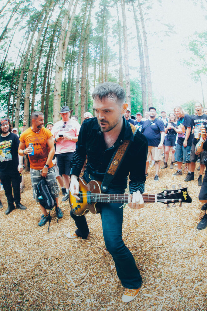 True metal purists delighted at EMPLOYED TO SERVEās set on the Main Stage. Whilst 2000trees is known for championing many āweirdā and out-of-the-box artists, this five-piece metal band stick to their lane, but oh boy do they do it well. The dual vocals from Justine Jones and Sammy Urwin balance each other nicely, and the band weaponised the afternoon sunshine to play songs off their new album āFallen Starā for half of their set. This group are well-deserving of their Main Stage feature, getting the crowd jumping left, right and centre, and even executing a wall of death during Sun Up To Sun DownĀ – in this heat? Peak 2000trees absurdity.