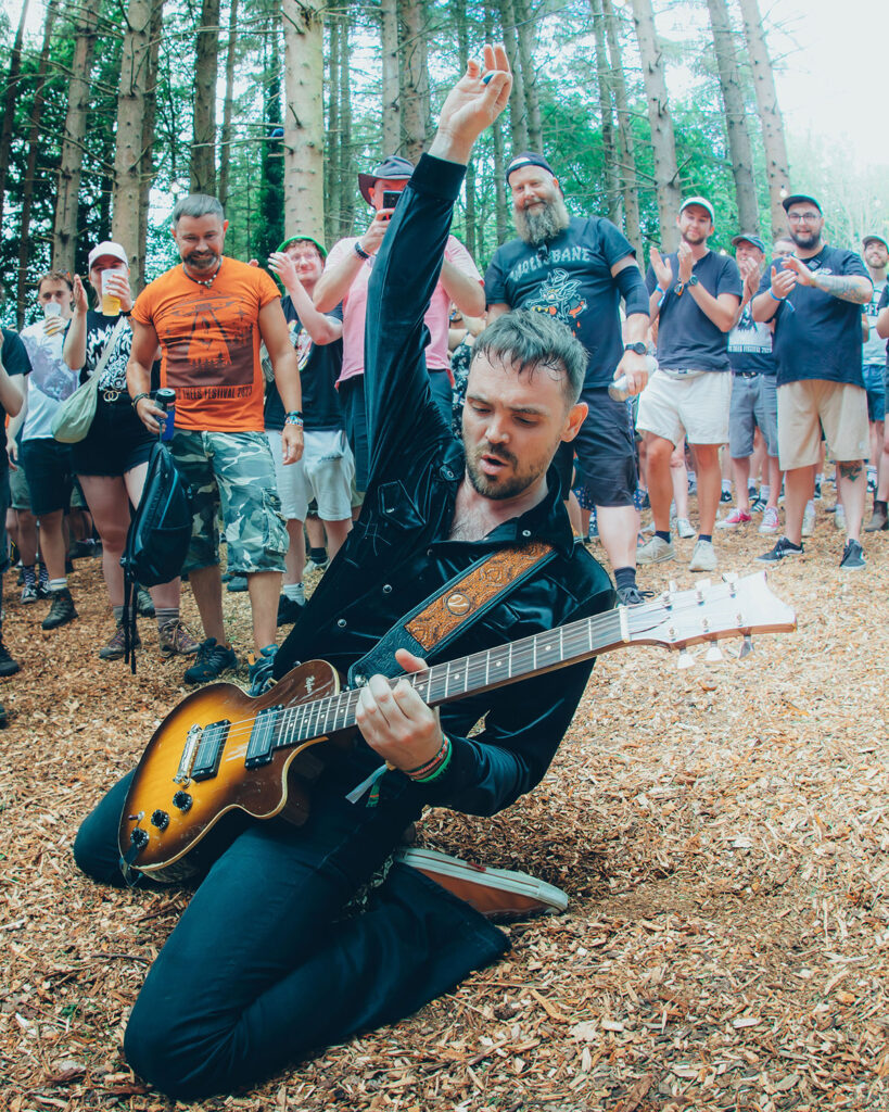 This was a band with a true connection to the festival, formed whilst three of the original band members attended 2000trees in 2014. The pairing of Debbie Goughās guttural goblin-mode vocals and Jake Packerās deep sludge metal screams drew The Cave into the night in an apocalyptic fashion. The call to mosh of āround and round, donāt let me down 2000treesā by Debbie was heard and quickly fulfilled, and watching the chaos unfold under the orange lighting felt overwhelming, but unforgettable.