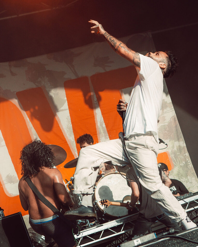 This French trioās grungy, poetic hardcore felt more art-gallery than mosh pit – beautiful, but lost on a crowd craving explosive catharsis. The vocalist – whoās name cannot be shared due to their deliberate arty omission from their work – often felt monotone and repetitive. Overall, the performance was flat and didnāt leave much for the festival goers to sink their teeth into. With the band members mostly not even looking into the crowd, this performance may have been better suited to a dark basement instead of a festival tent.