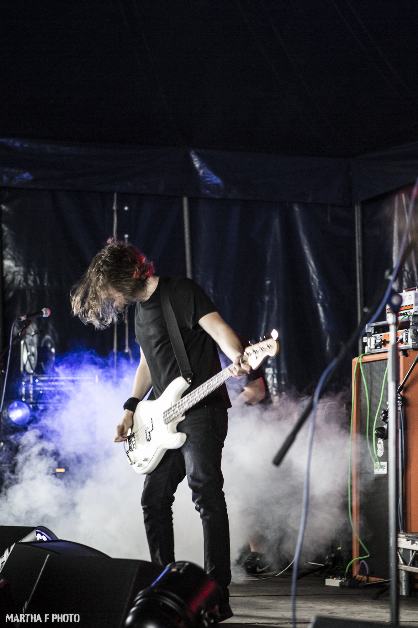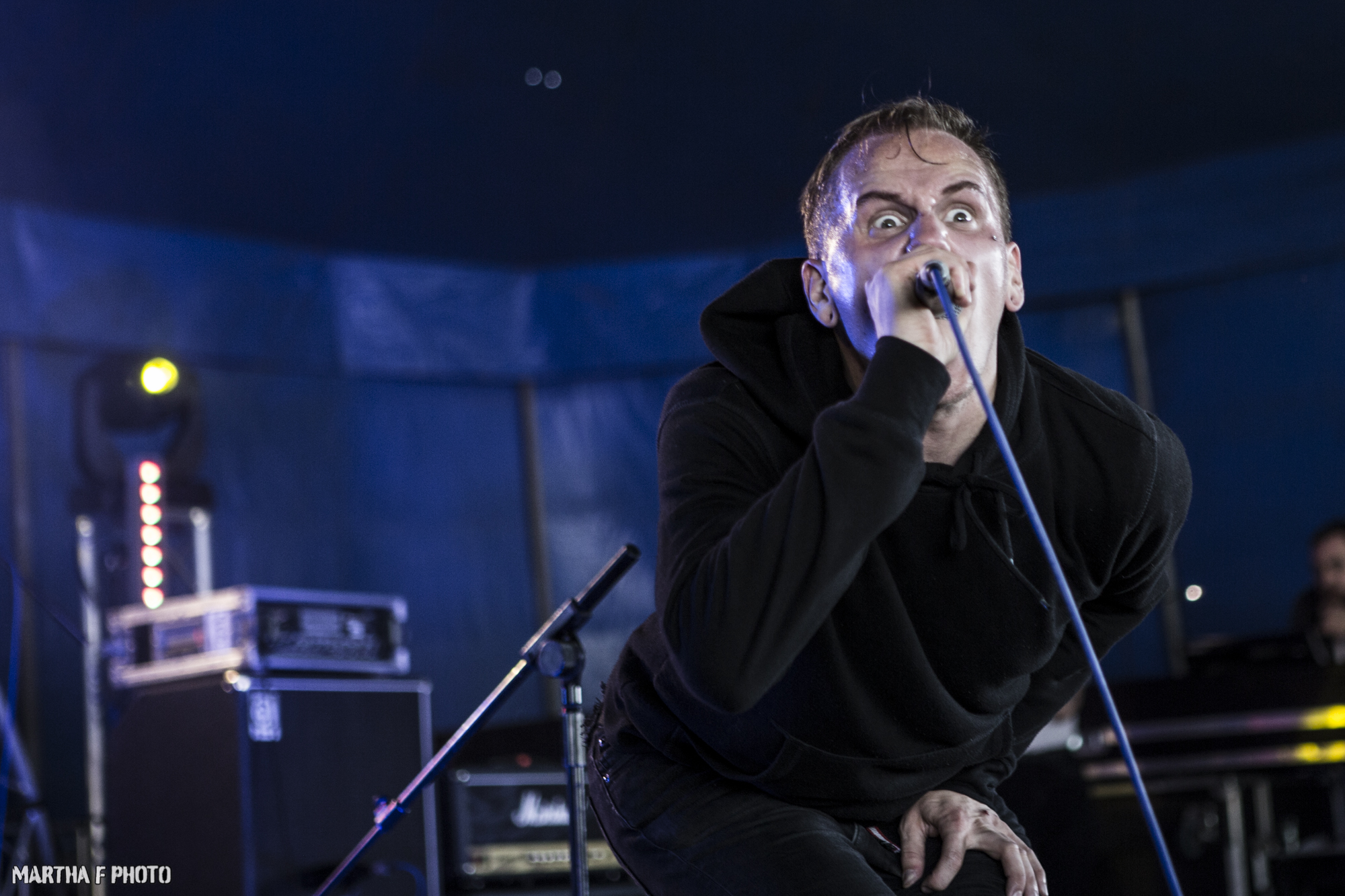 The term fun is not one that could be thrown at TALONS(7/10) who followed them, bleak and grim certainly, but you could never use the word fun for them. But still despite having as much levity as a TED talk on your life’s failures the tent was dripping in atmosphere and the wall to wall feedback combined with the strings brought its own deeply dark and worrying charms.