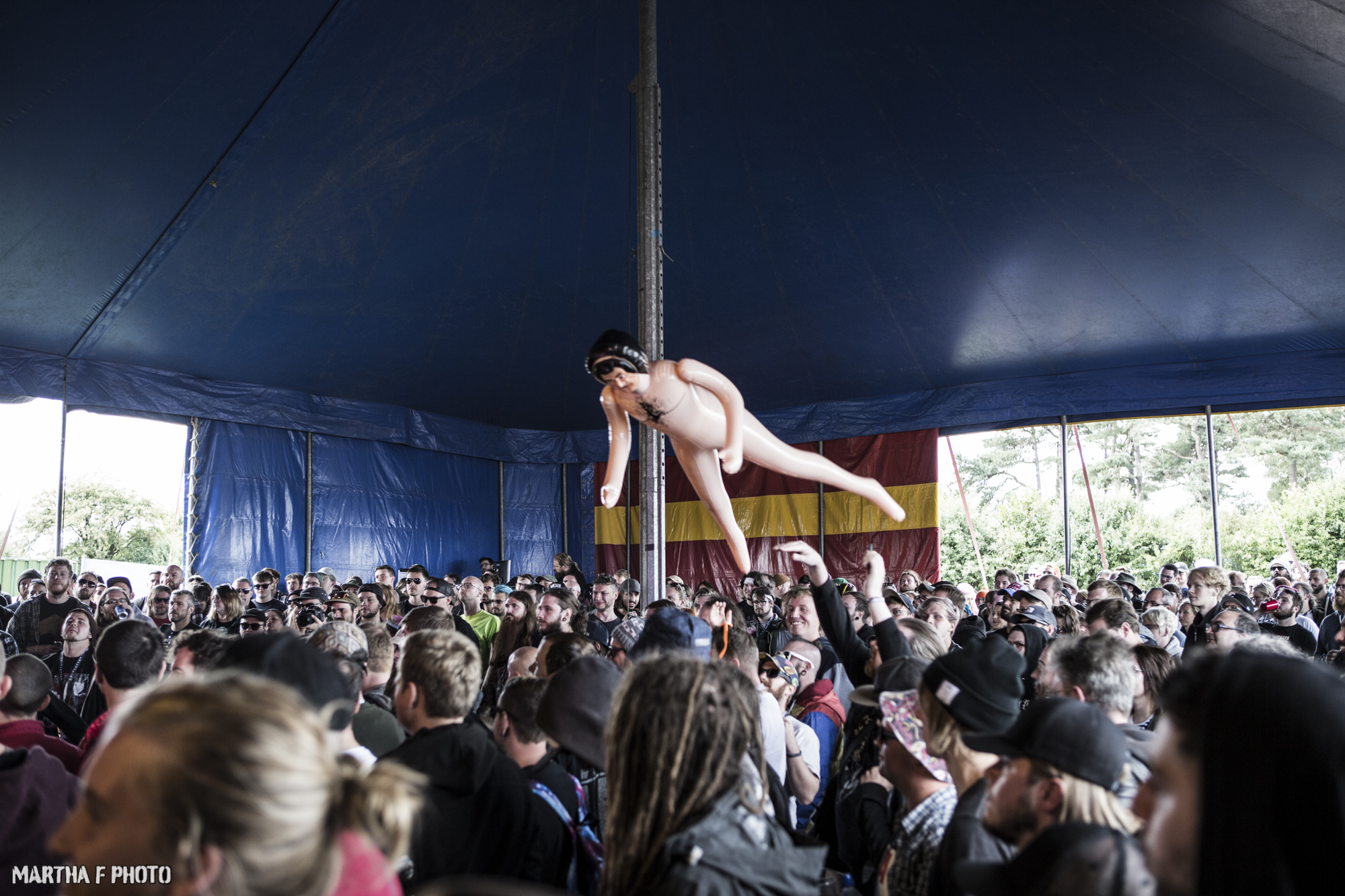 Back down to earth next with Sweden’s GOD’S MOTHER(7/10) who certainly know how to bring the chaos to the still slightly baffled tent. From climbing structures to crowd surfing on SPACE BLOOD‘s sex dolls, it was essentially sheer unadulterated chaos from start to finish and it was bloody magnificent.