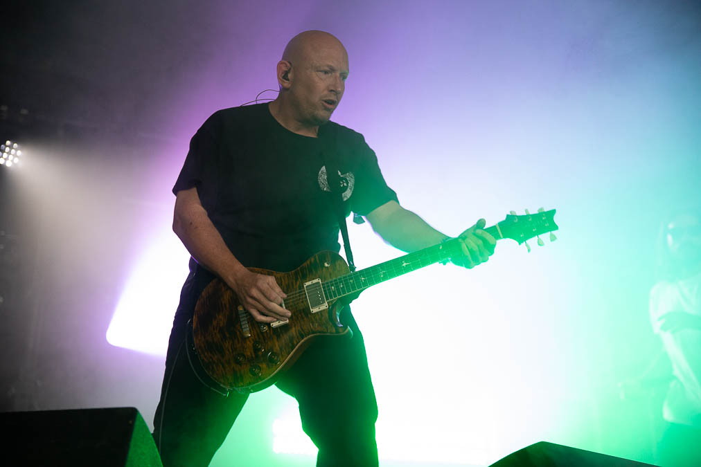 Vocalist Daniel Thompkins commands the stage from his ego riser like a total pro, throwing shapes that make Bruce Dickinson look like a wallflower. The rest of the band use every inch of the elaborate staging, moving around in almost choreographed fashion. The sound is impeccable and there is such a satisfying twang to the djent riffs of tracks like Natural Disaster and The Arrow. When they pull out the big riffs of Concealing Fate Part 2, and pull out all the stops for the incendiary Juno, they make it clear why they were booked to headline. Yes, there could have been other bands that may have commanded a bigger crowd, but few could put in a performance as professional and polished as this.