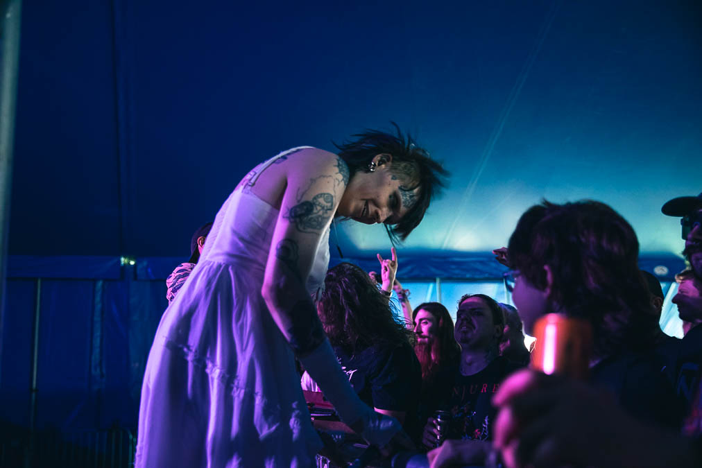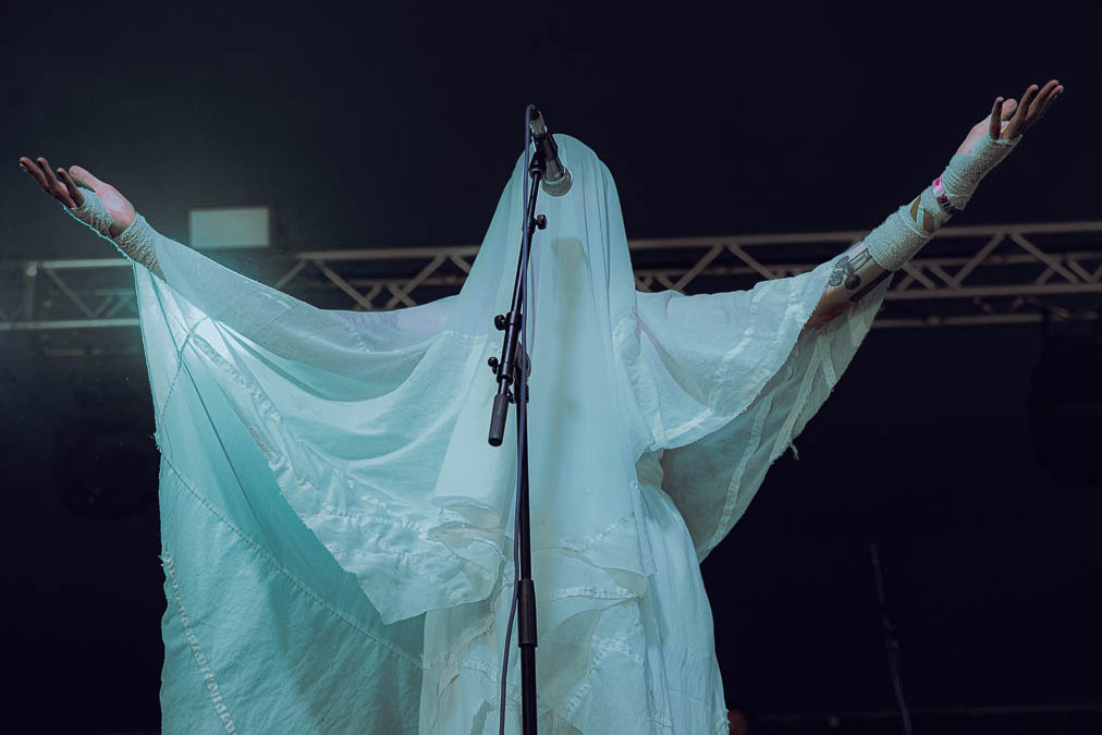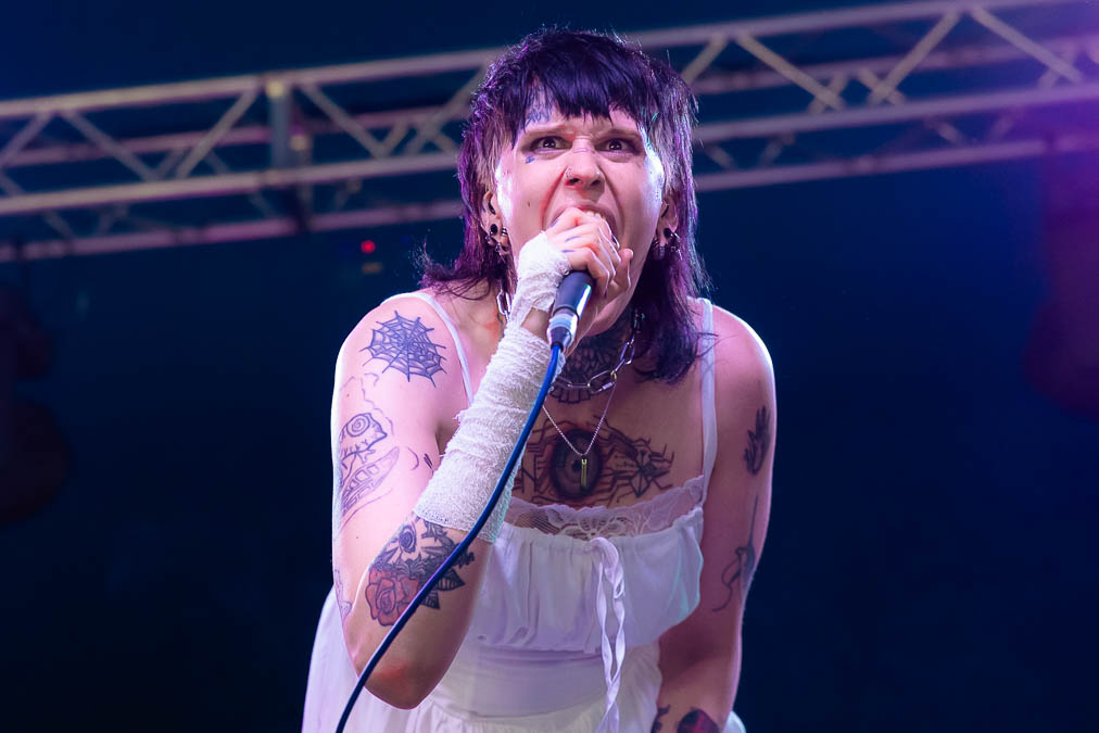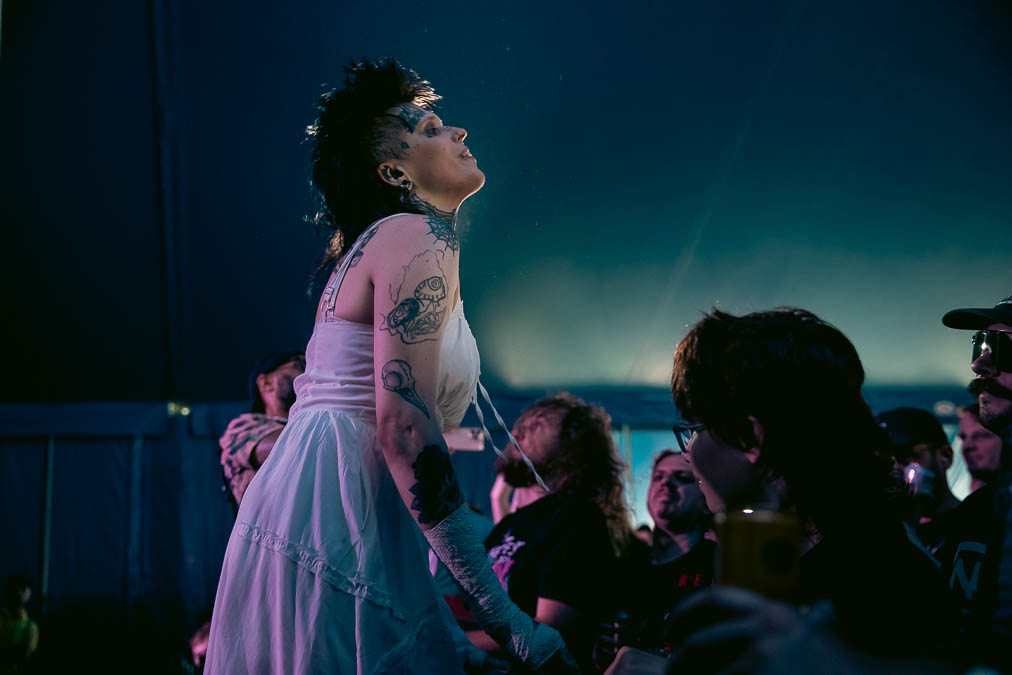 Vocalist Abi Vasquez enters the stage beveiled in a white wedding dress, her band members behind her in all black, a visual symbol of the harsh contrasts that UNDERDARK deal in. Their set, which pulls mostly from their beautifully uncompromising album Managed Decline, veers from rasping black metal to soaring, emotionally wrought melody. It’s as vicious as it is vulnerable and is utterly enthralling throughout.