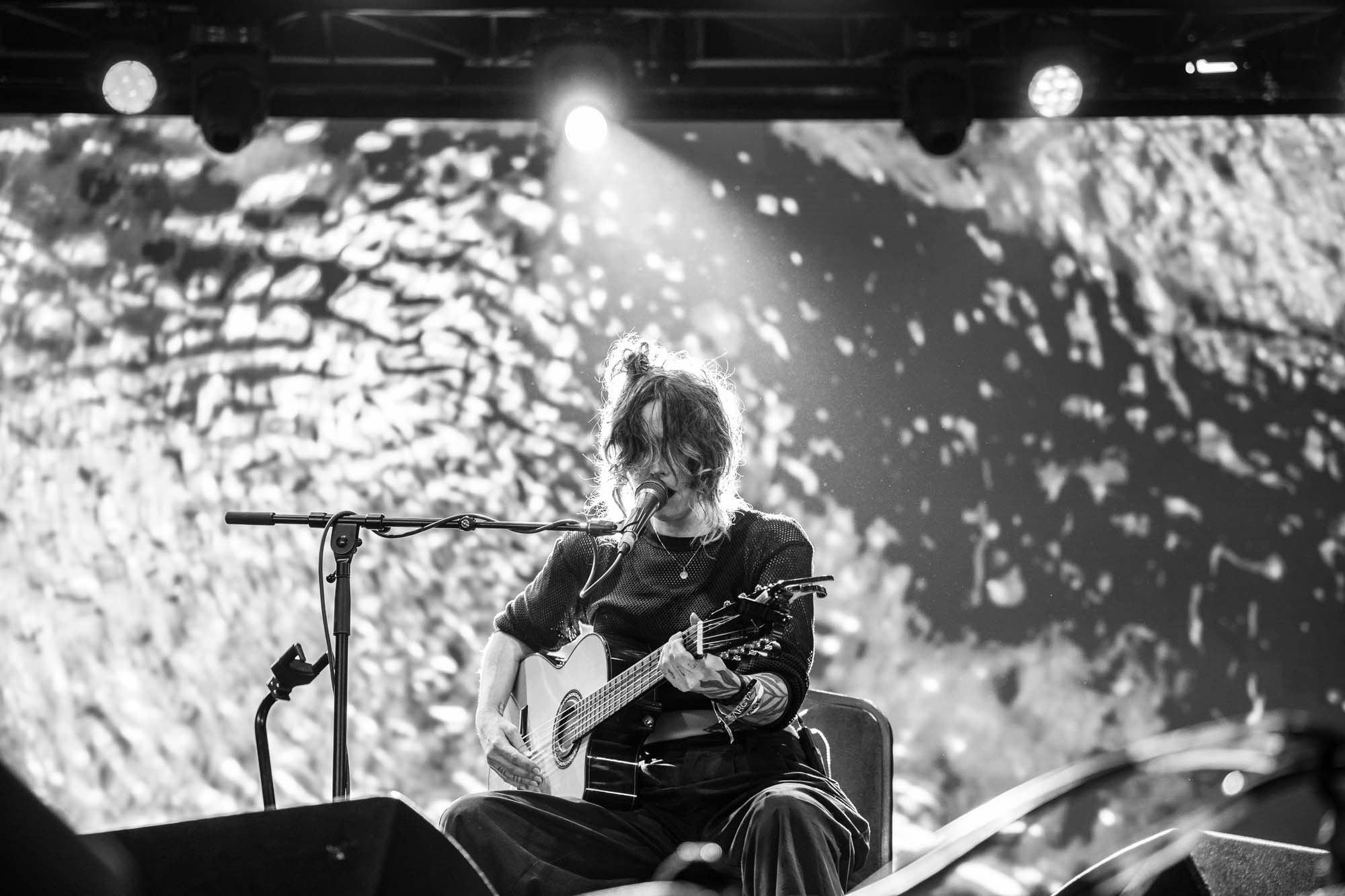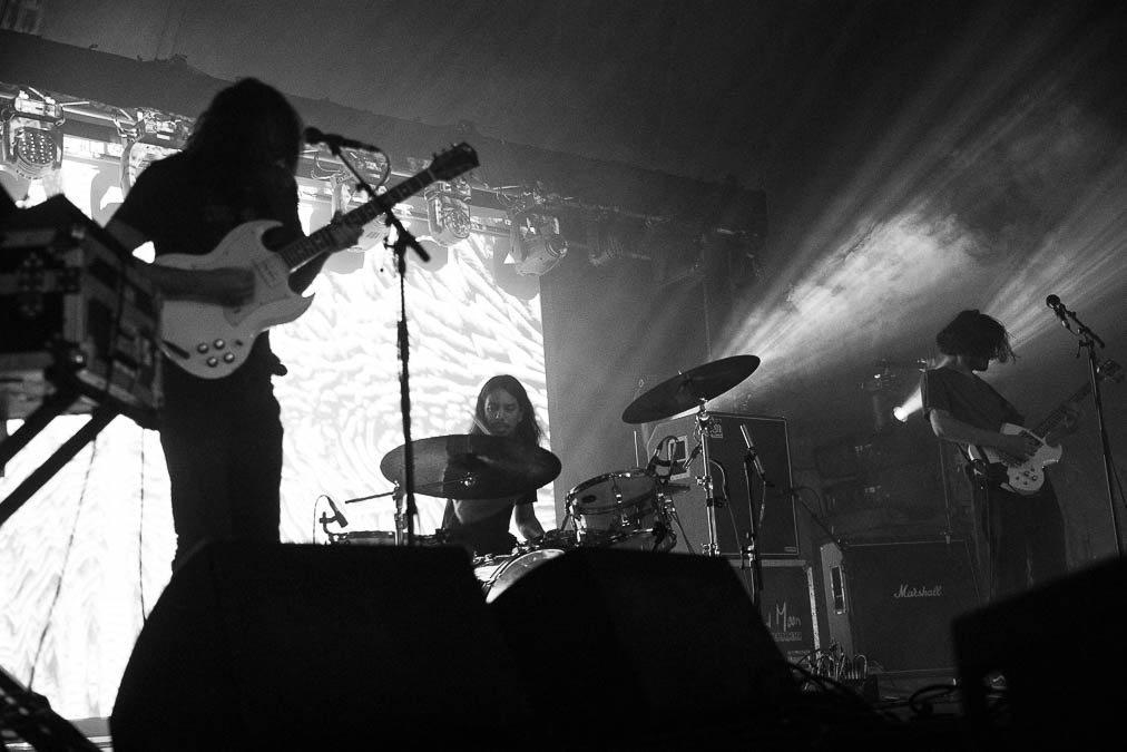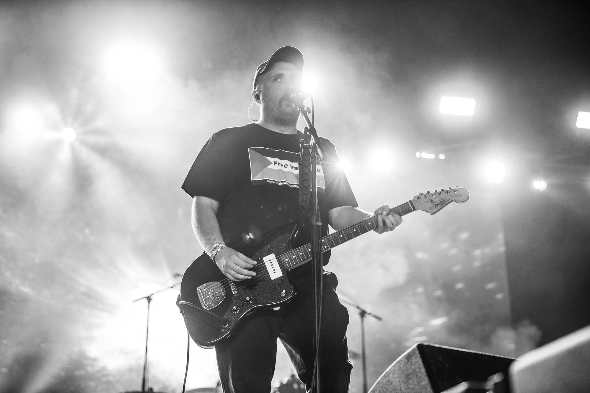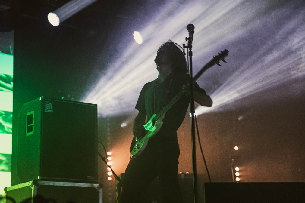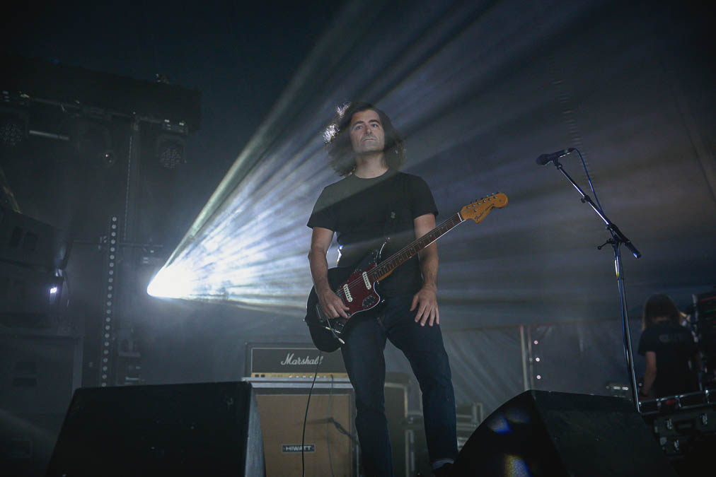 They make the most of their extra long set, starting as they usually do with Hope Drone, an improvisational piece that builds from nothing into a cacophony of harmony and from there on in they take their time with each composition, building lofty peaks and abyssal troughs. There are eight of them on stage, with a few of the guitarist seated, giving the set the vibe of a glorious jam session. Violins interweave between the chest rumbling bass lines, while sepia imagery of industrial landscapes is juxtaposed against the shimming soundscapes. Much of the set is taken from last year’s NO TITLE AS OF 13 FEBRUARY 28,340 DEAD, the title of which makes reference to the number of Palestinians killed by Gaza airstrikes. There are many bands over the weekend who make statements about the conflict to cheers of solidarity from the audience, but it goes to show the power of GY!BE’s music that they can make such a powerful statement without ever speaking a single word.