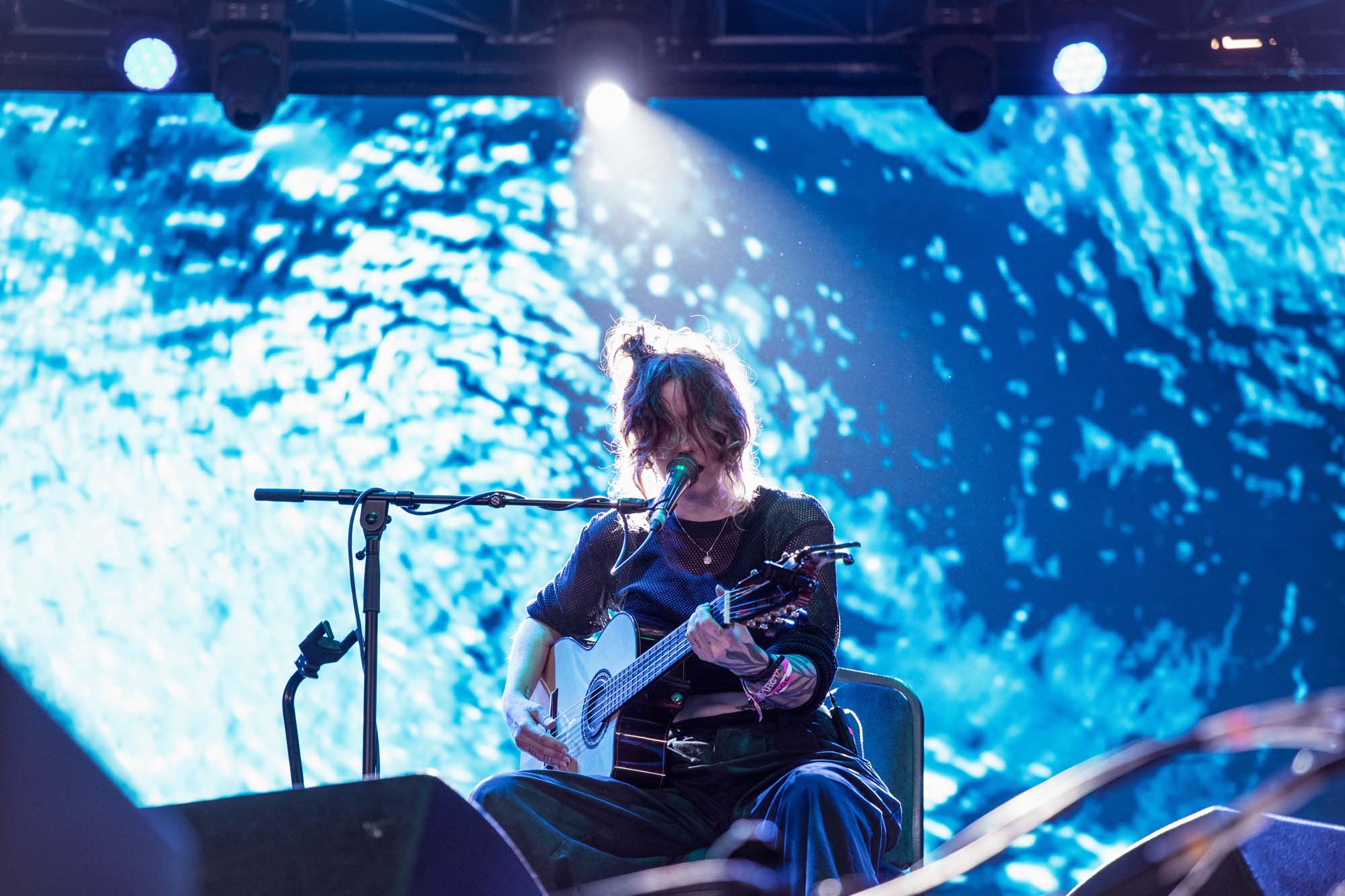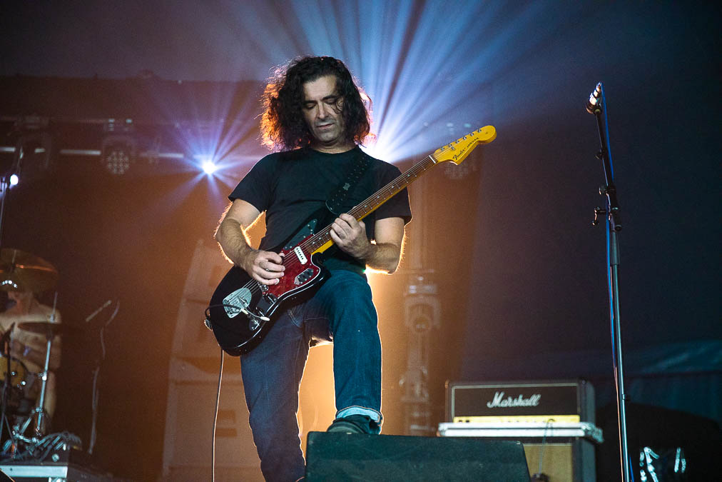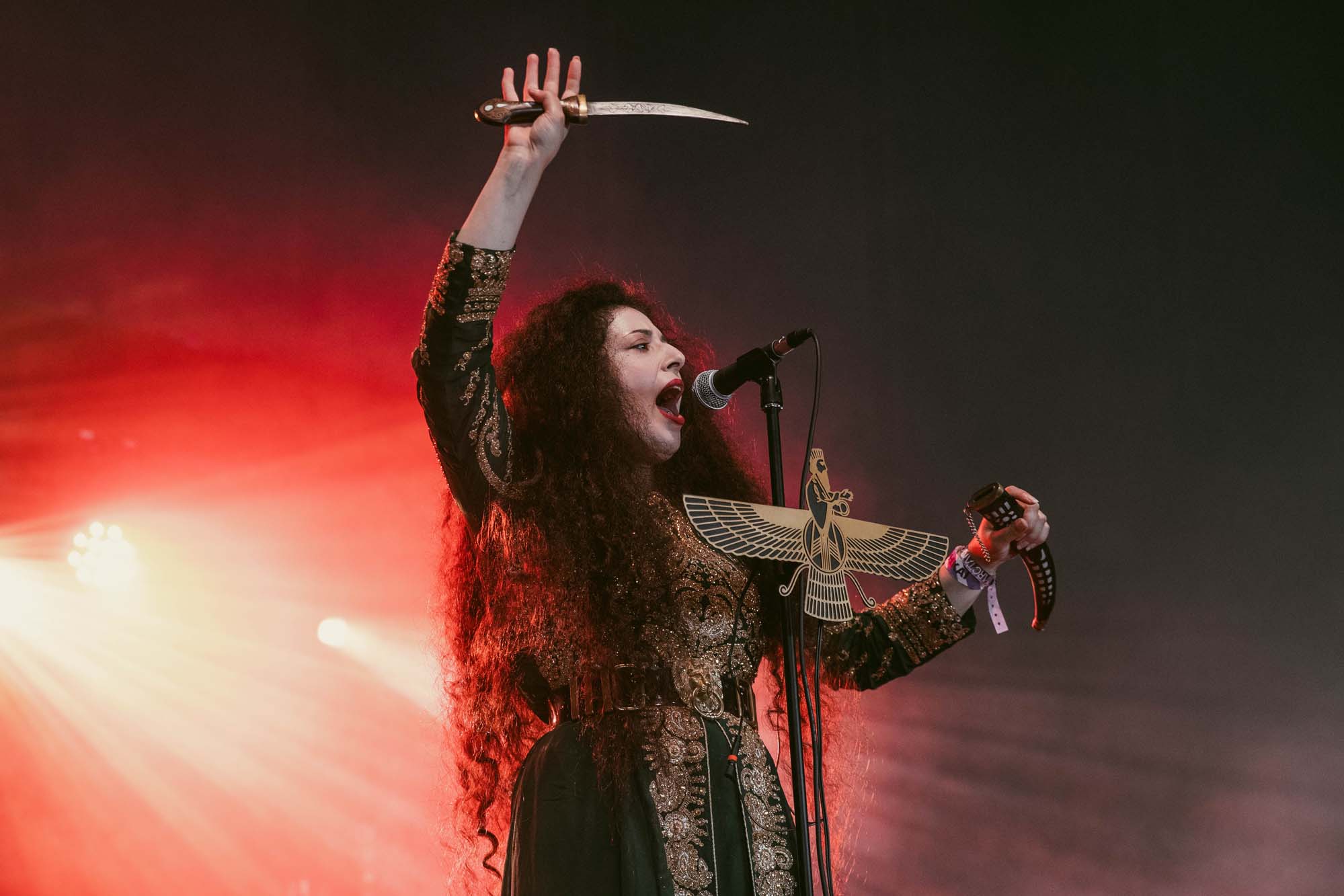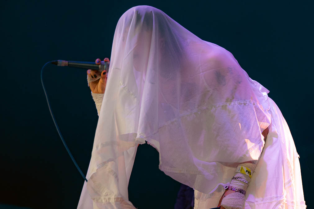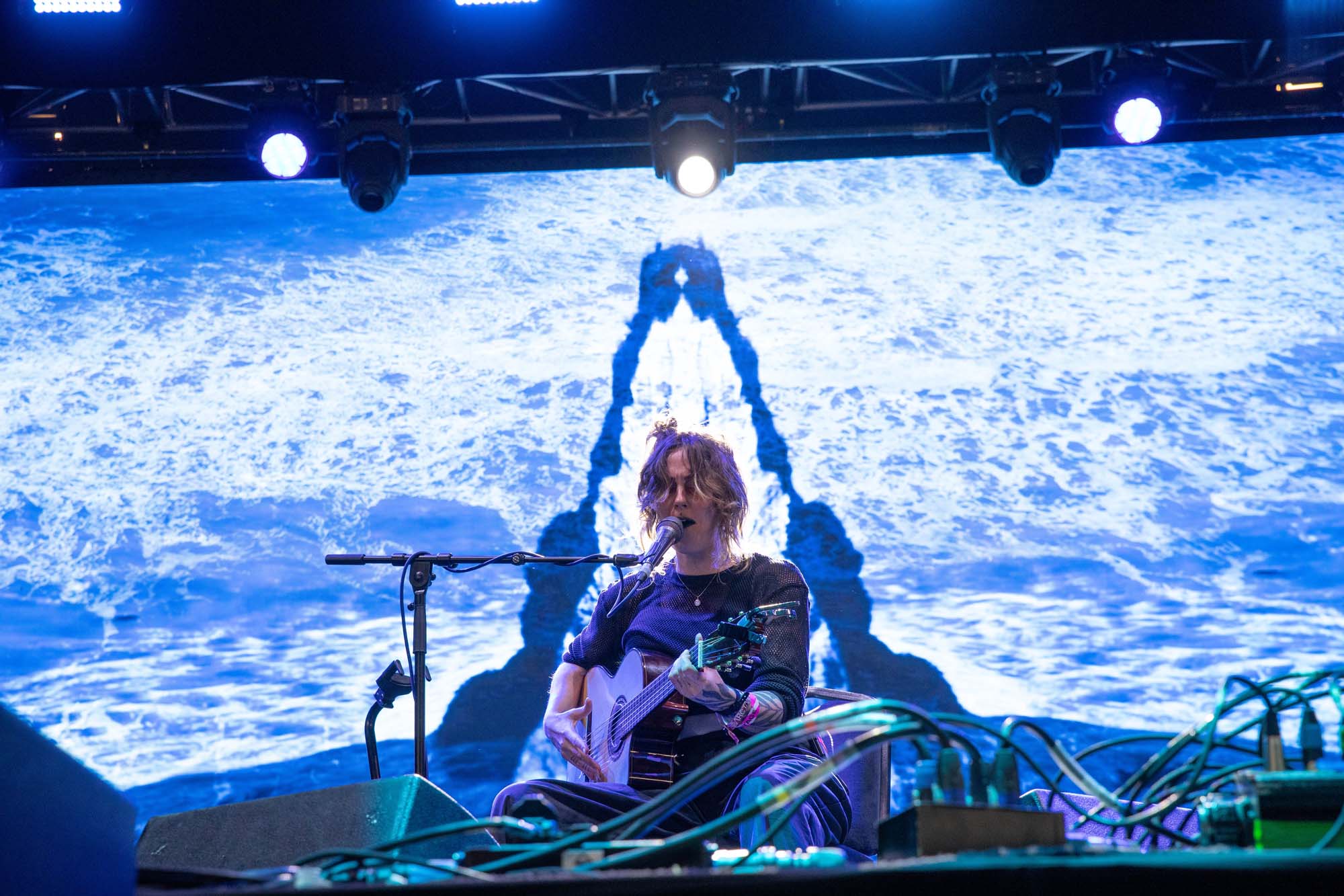 They make the most of their extra long set, starting as they usually do with Hope Drone, an improvisational piece that builds from nothing into a cacophony of harmony and from there on in they take their time with each composition, building lofty peaks and abyssal troughs. There are eight of them on stage, with a few of the guitarist seated, giving the set the vibe of a glorious jam session. Violins interweave between the chest rumbling bass lines, while sepia imagery of industrial landscapes is juxtaposed against the shimming soundscapes. Much of the set is taken from last year’s NO TITLE AS OF 13 FEBRUARY 28,340 DEAD, the title of which makes reference to the number of Palestinians killed by Gaza airstrikes. There are many bands over the weekend who make statements about the conflict to cheers of solidarity from the audience, but it goes to show the power of GY!BE’s music that they can make such a powerful statement without ever speaking a single word.