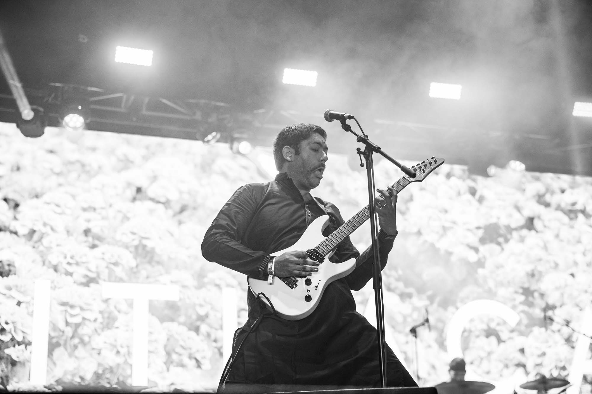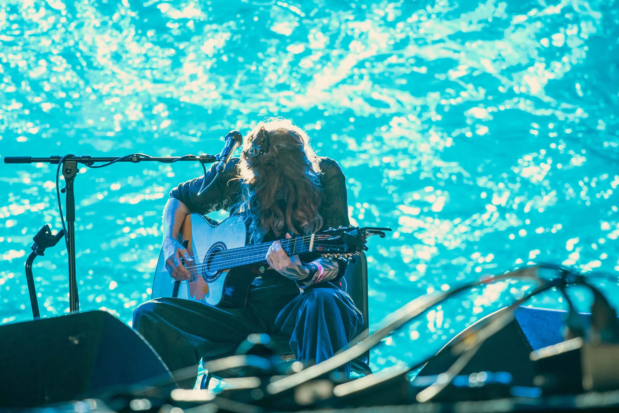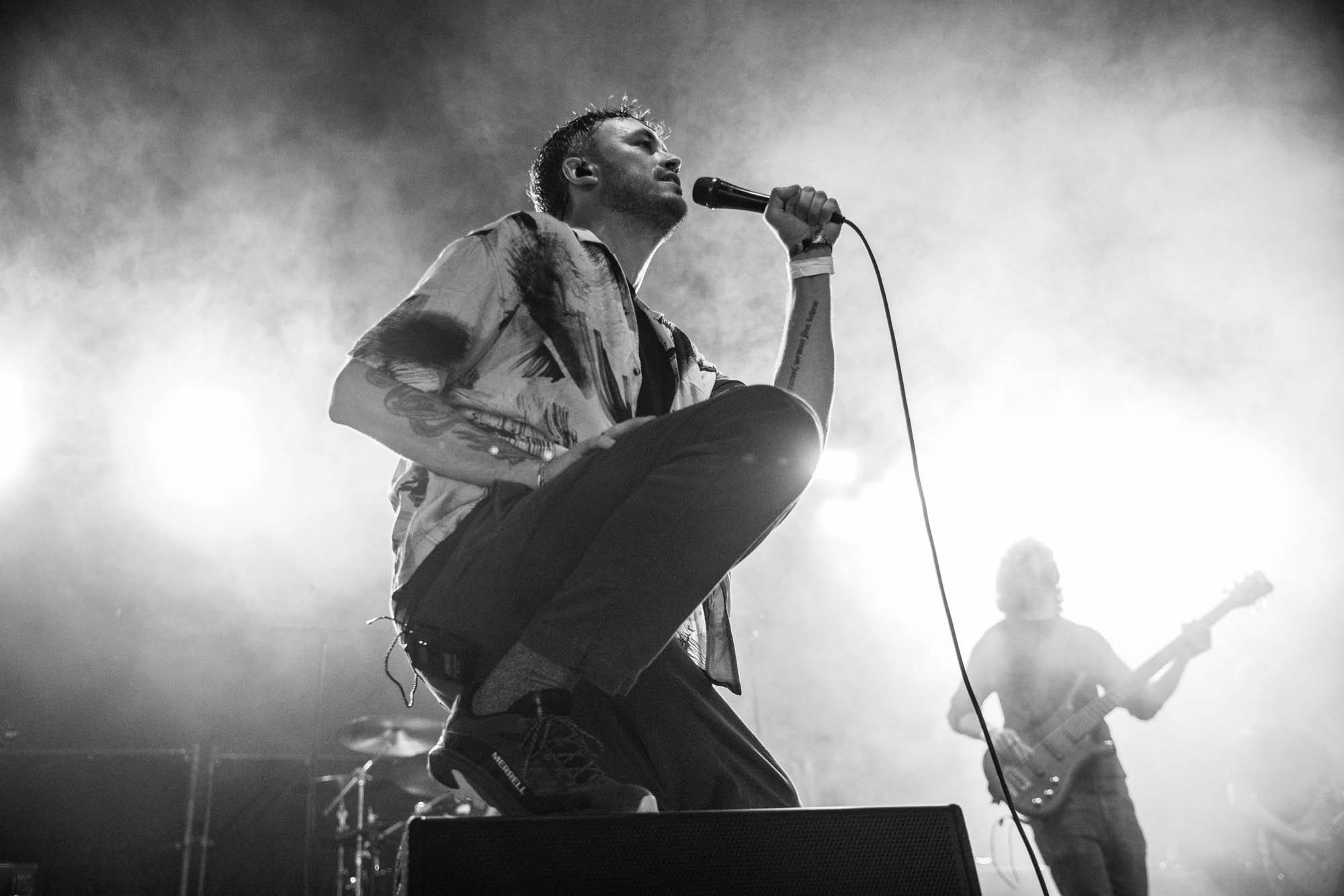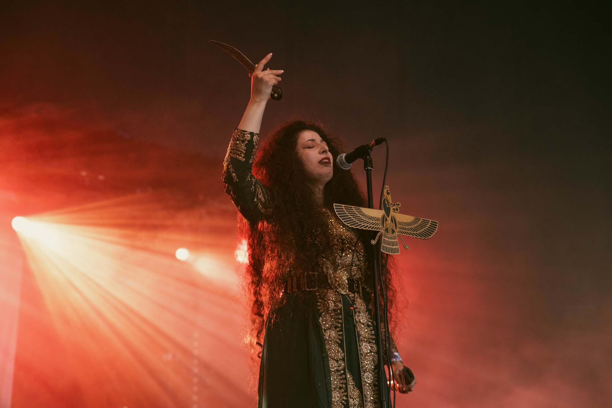 They make the most of their extra long set, starting as they usually do with Hope Drone, an improvisational piece that builds from nothing into a cacophony of harmony and from there on in they take their time with each composition, building lofty peaks and abyssal troughs. There are eight of them on stage, with a few of the guitarist seated, giving the set the vibe of a glorious jam session. Violins interweave between the chest rumbling bass lines, while sepia imagery of industrial landscapes is juxtaposed against the shimming soundscapes. Much of the set is taken from last year’s NO TITLE AS OF 13 FEBRUARY 28,340 DEAD, the title of which makes reference to the number of Palestinians killed by Gaza airstrikes. There are many bands over the weekend who make statements about the conflict to cheers of solidarity from the audience, but it goes to show the power of GY!BE’s music that they can make such a powerful statement without ever speaking a single word.