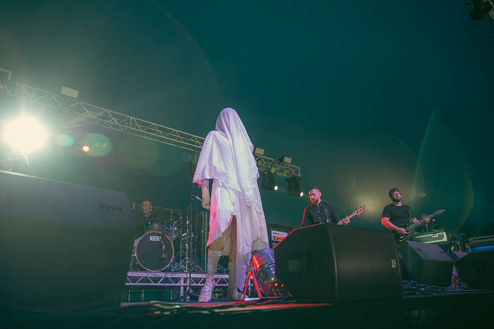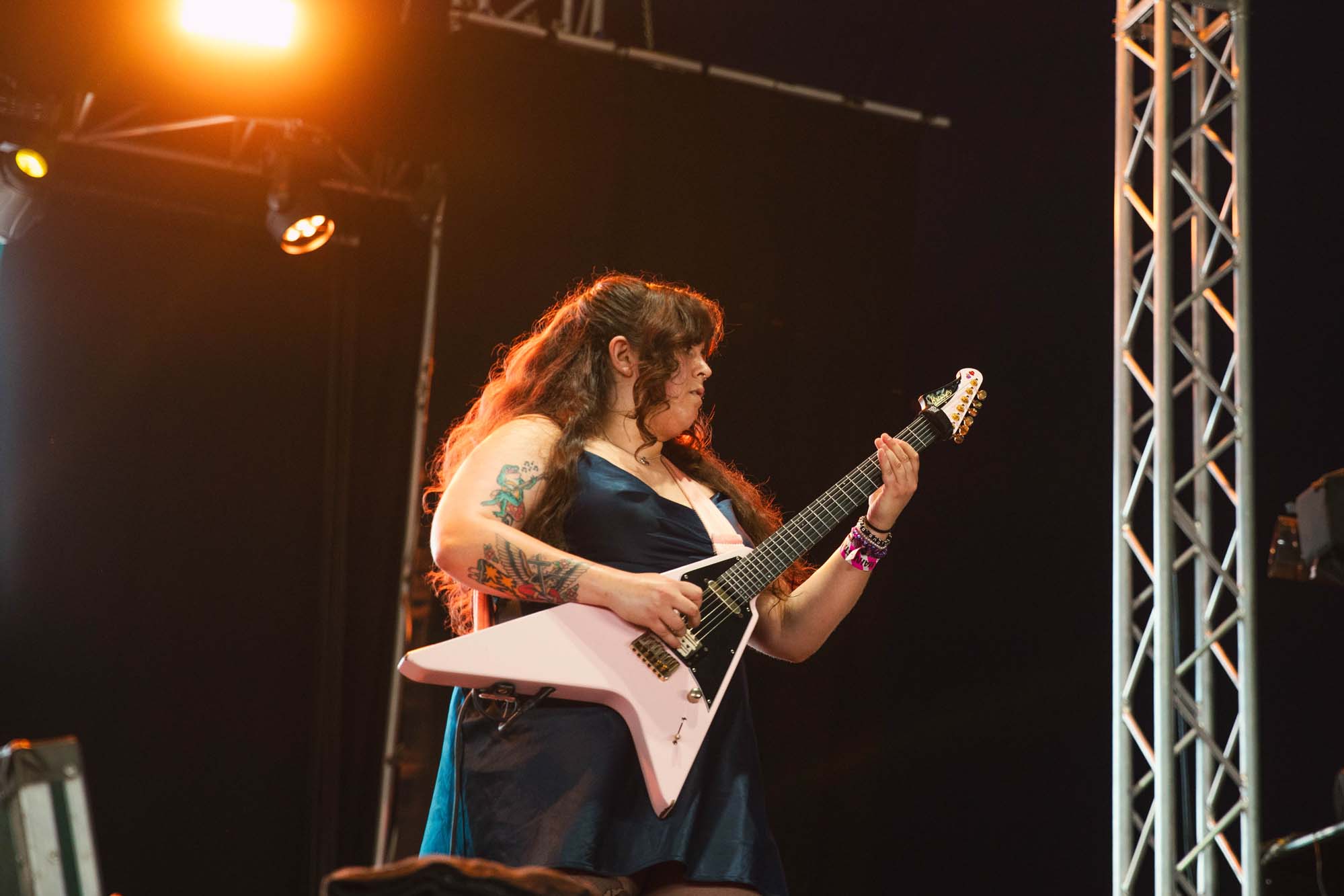 Given the sheer sonic excess that’s is an ArcTanGent lineup, it’s refreshing to watch something as stripped back as EMMA RUTH RUNDLE. She’s alone on the stage with nothing more than a chair, an acoustic guitar and a selection of pedals. By this time in the afternoon the predicted heatwave is in full effect, with temperatures reaching the low 30s. People look like they’re melting in the tent but frosty folk of songs like Living With The Black Dog and Citadel, accompanied by imagery of icy blue mountain streams is the perfect way to stave off the heatstroke. Despite the size of the tent, it’s an intimate affair and between songs it’s like we’re sat in her living room and she jokingly suggest she spend the next 20 minutes telling grandma stories, even busting out the riff from the Jaws theme tune to signal “a grandma story approaching”. Perhaps this set might have been more suited to one of the smaller stages, but for those paying attention it’s a more than rewarding experience.