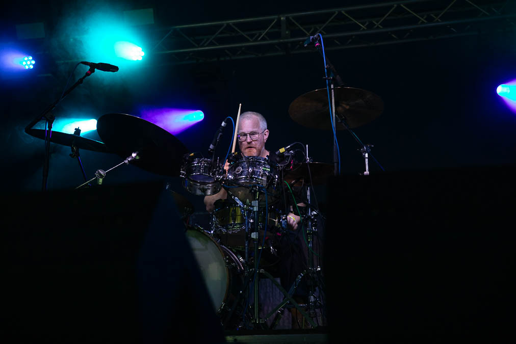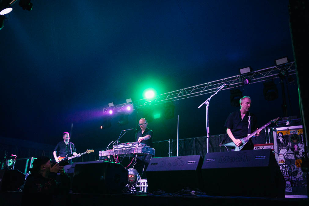 Even on a lineup as eclectic as ArcTanGent, Scottish art-pop stalwarts ARAB STRAP stick out like a sore thumb, but the healthy crowd they pull into Yokhai just shows how open-minded the ATG crowd is, and that there really is no such thing as a “typical ArcTanGent band.” Their combination of lo-fi indie, throbbing electro beats and spoken word poetry has the crowd entranced from the get-go. Adrian Moffat’s lyrics, delivered in his trademark Caledonian drawl, drip with sarcasm, dark humour and occasional yearning. Although the band formed in the mid-90s much of the set is pulled from this year’s brilliantly titled i’m totally fine with it i don’t give a fuck anymore, and its 2021 predecessor As Days Get Dark with tracks like Sociometer Blues, The Turning Of Our Bones and Fable Of The Urban Fox going down particularly well, but the lone older cut, Girls Of Summer sounds particularly gorgeous this evening. It’s a set that is sure to get James Scarlett thinking about what other sore thumbs to book in future editions of the festival.