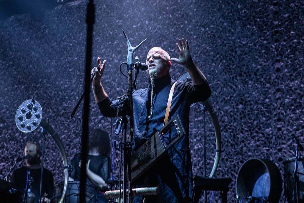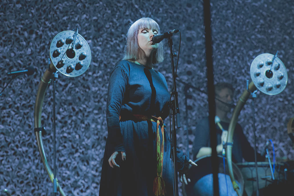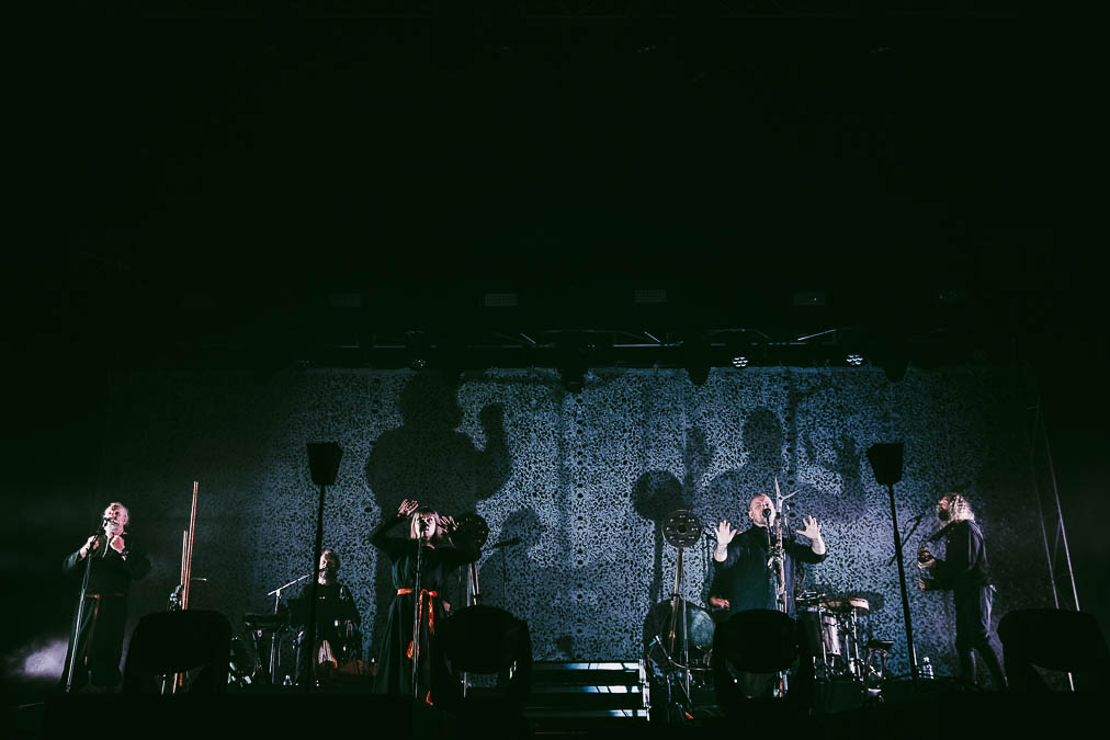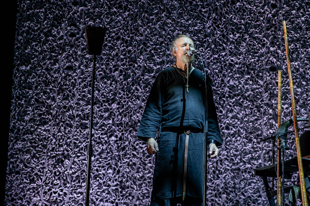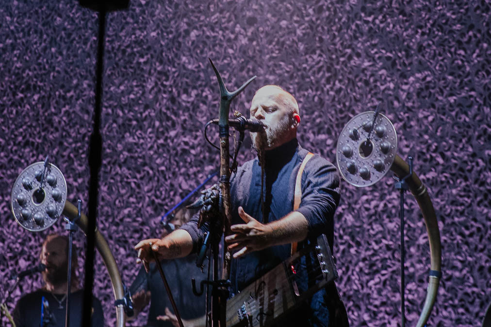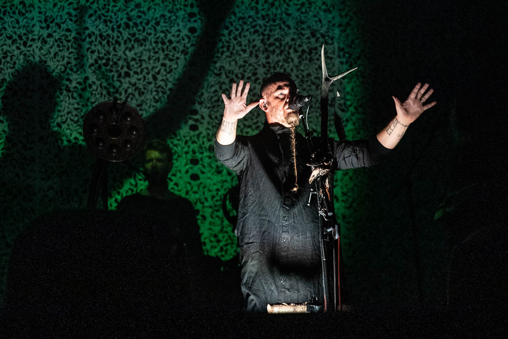 While Nordic trad-folk might not provide the party atmosphere you’d expect from a Wednesday night headline set, the sound, staging and production from WARDRUNA are so well put together that it’s still a spectacle to behold. The sound mix is impeccable and stage is dressed in a way it that looks like the ragged rocks of the Norwegian fjords.