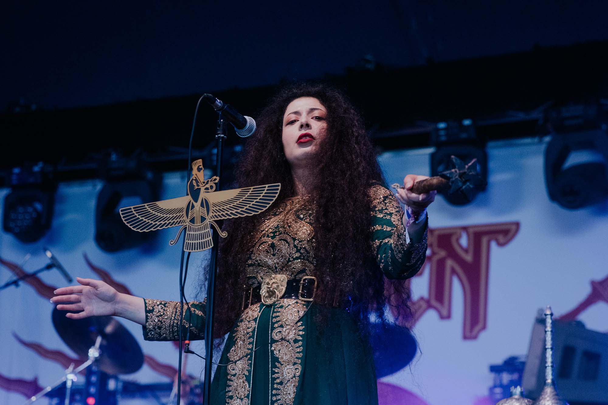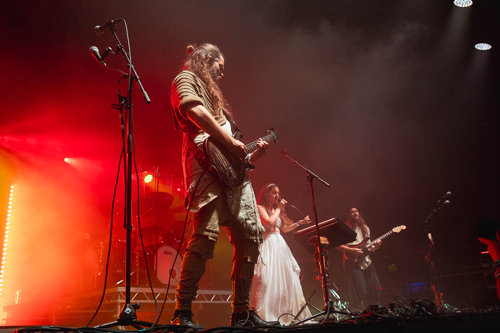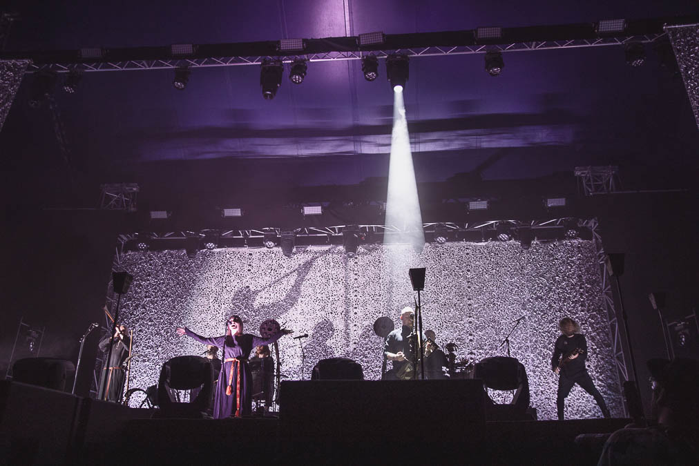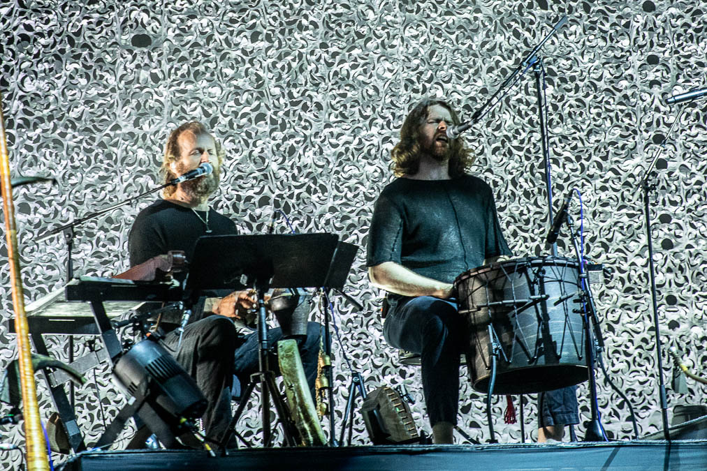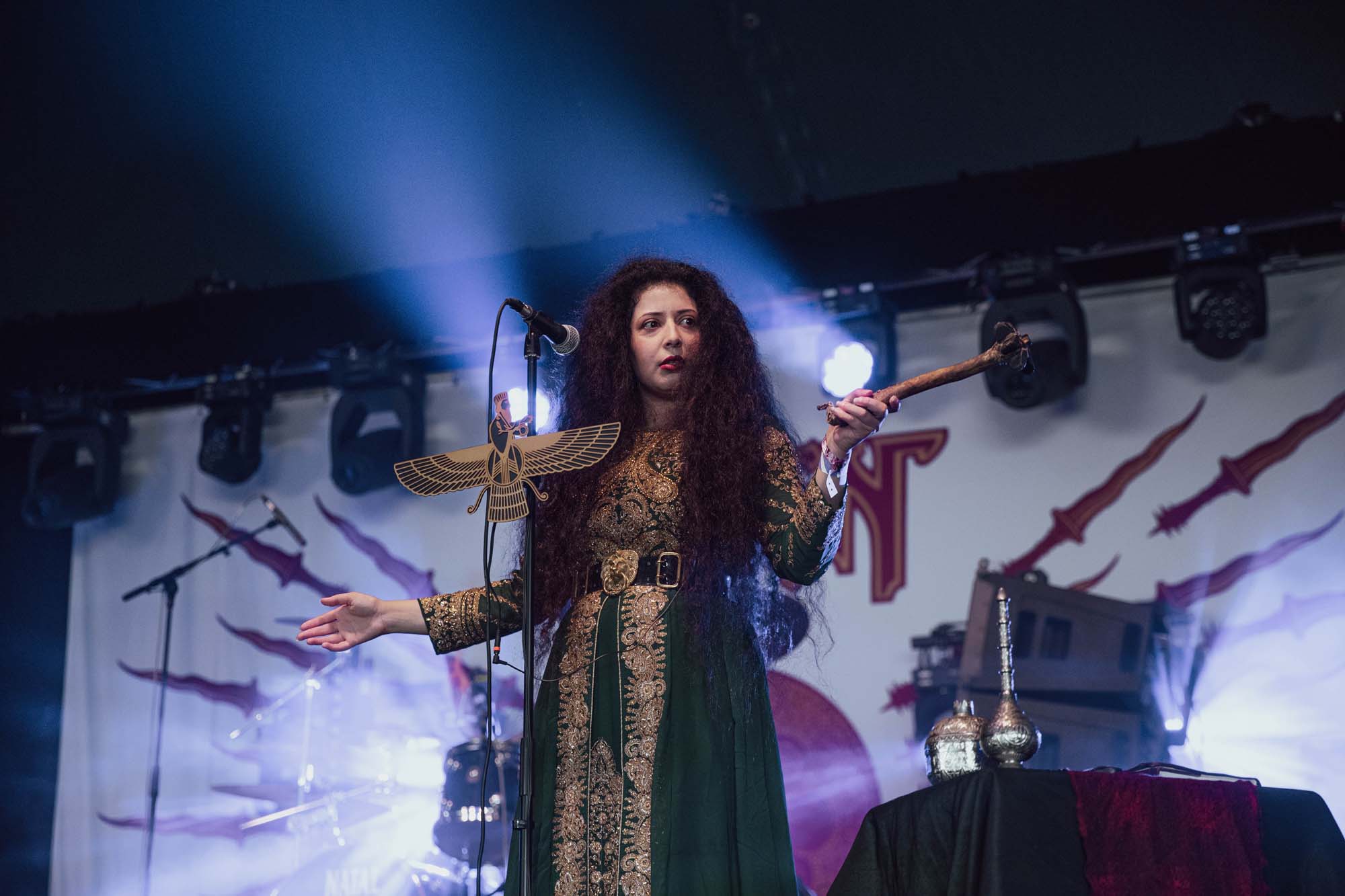 While Nordic trad-folk might not provide the party atmosphere you’d expect from a Wednesday night headline set, the sound, staging and production from WARDRUNA are so well put together that it’s still a spectacle to behold. The sound mix is impeccable and stage is dressed in a way it that looks like the ragged rocks of the Norwegian fjords.