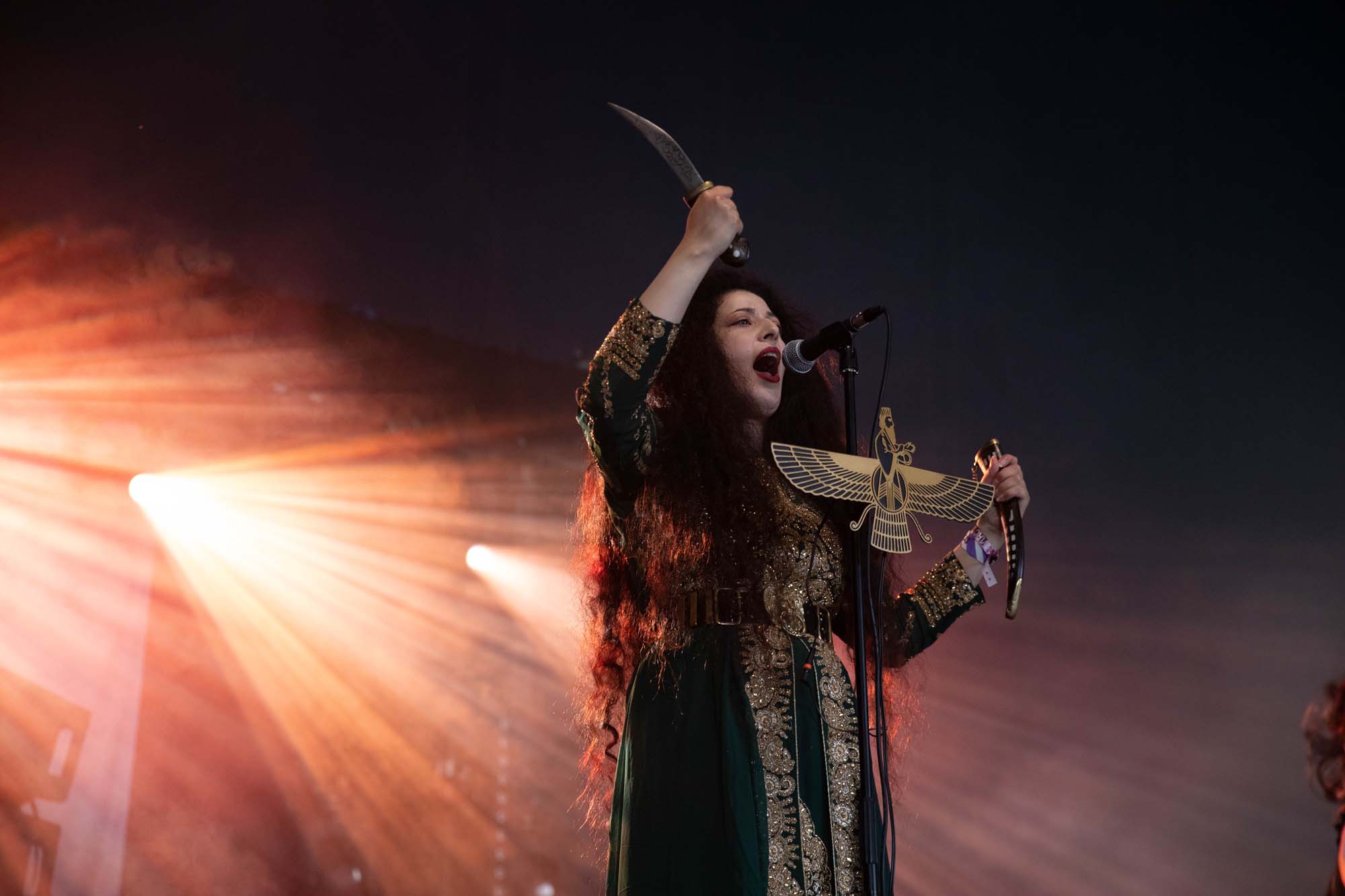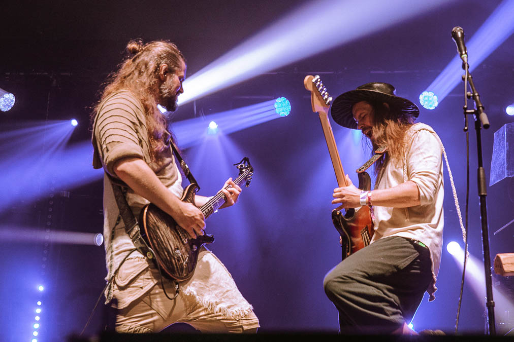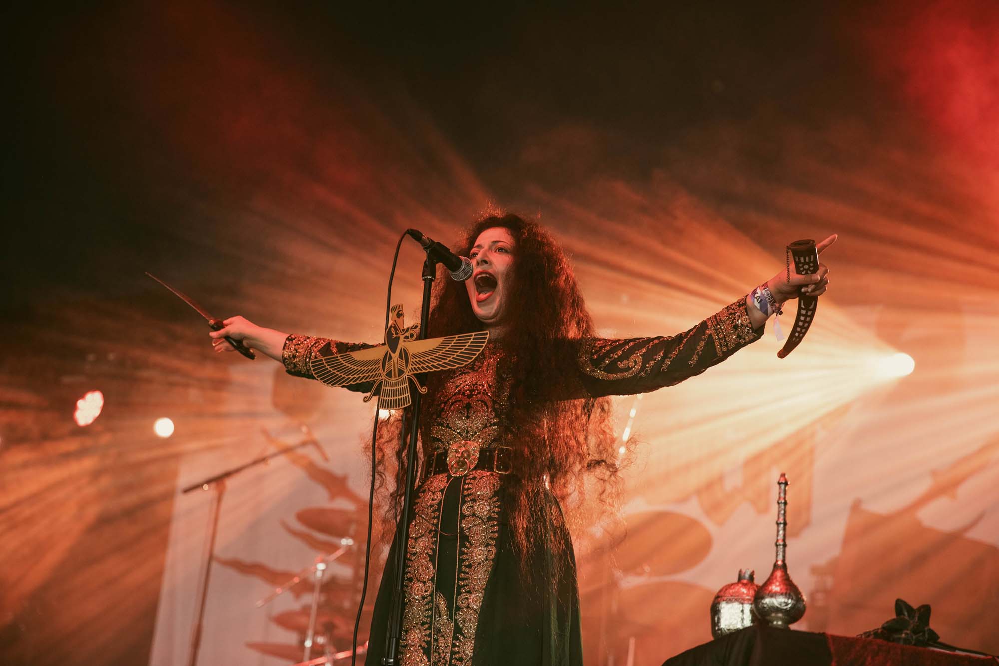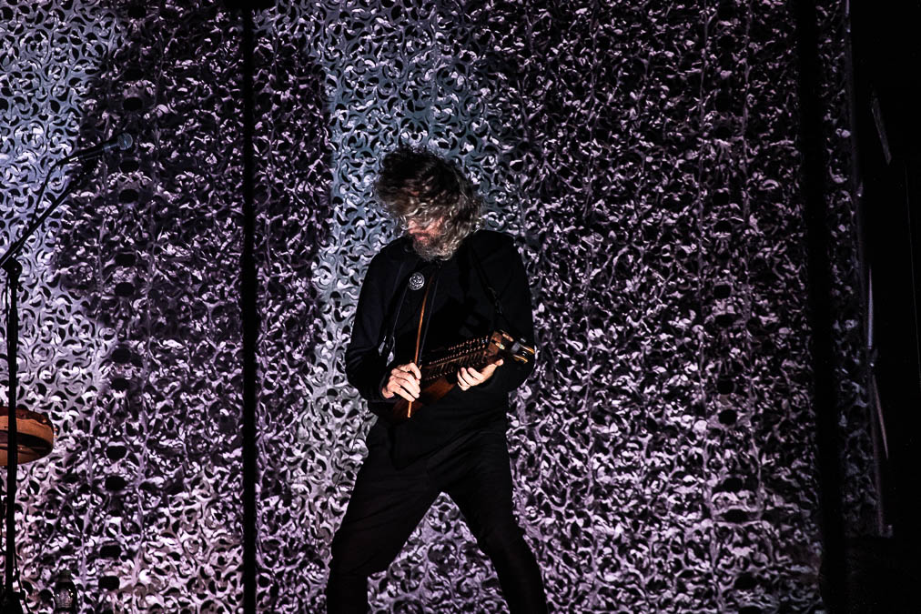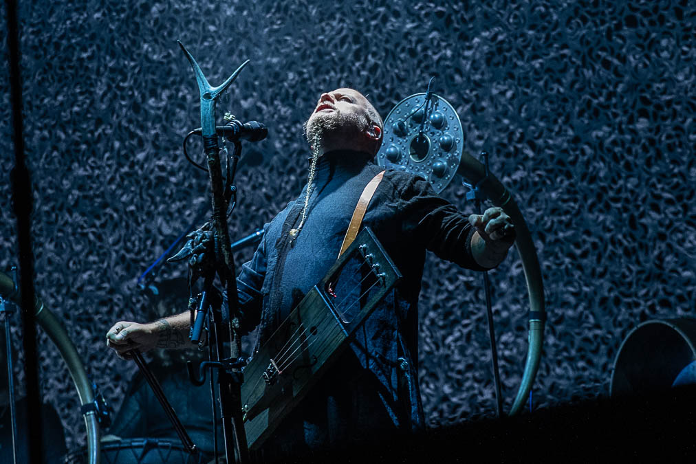While Nordic trad-folk might not provide the party atmosphere you’d expect from a Wednesday night headline set, the sound, staging and production from WARDRUNA are so well put together that it’s still a spectacle to behold. The sound mix is impeccable and stage is dressed in a way it that looks like the ragged rocks of the Norwegian fjords.