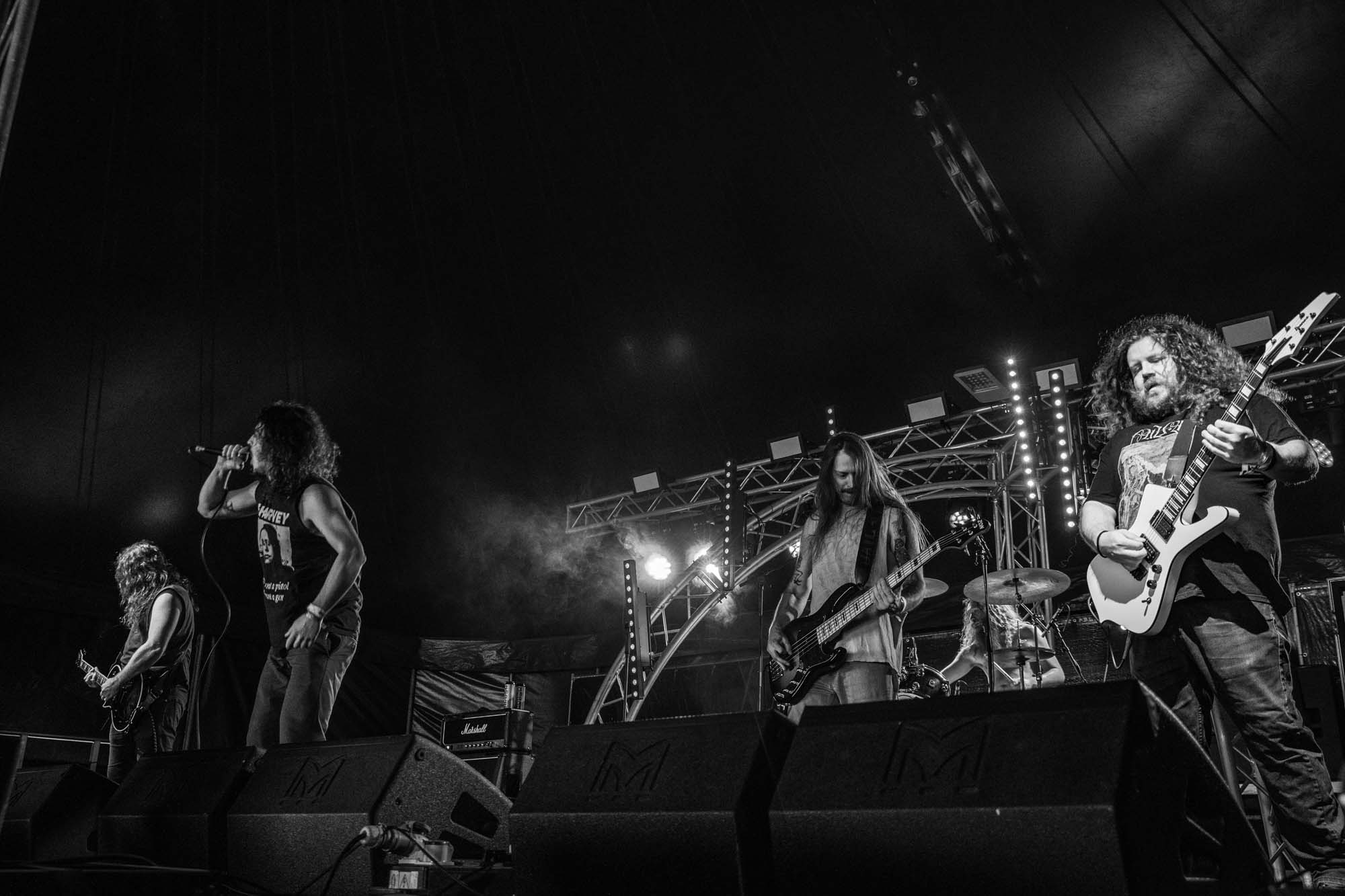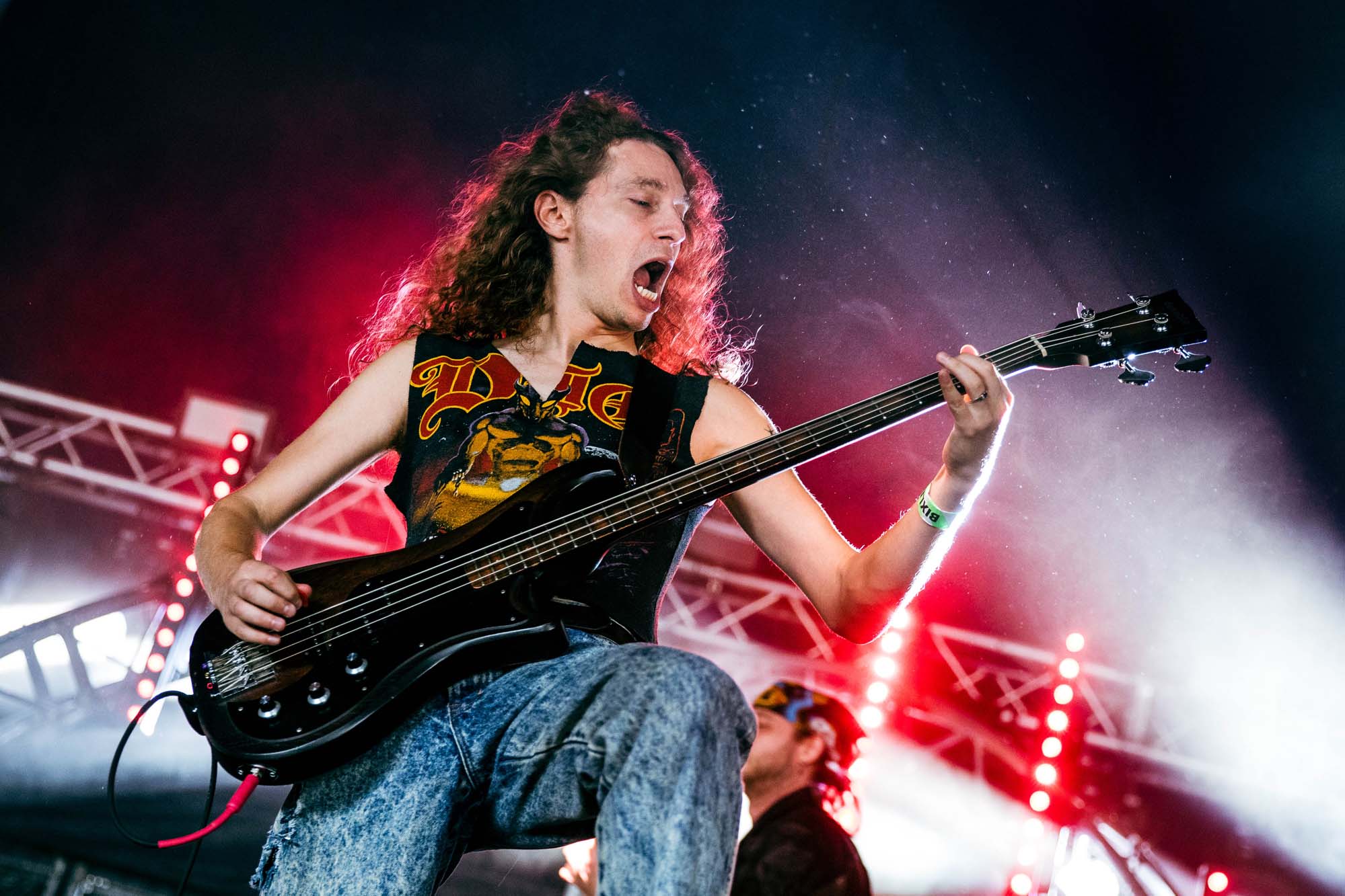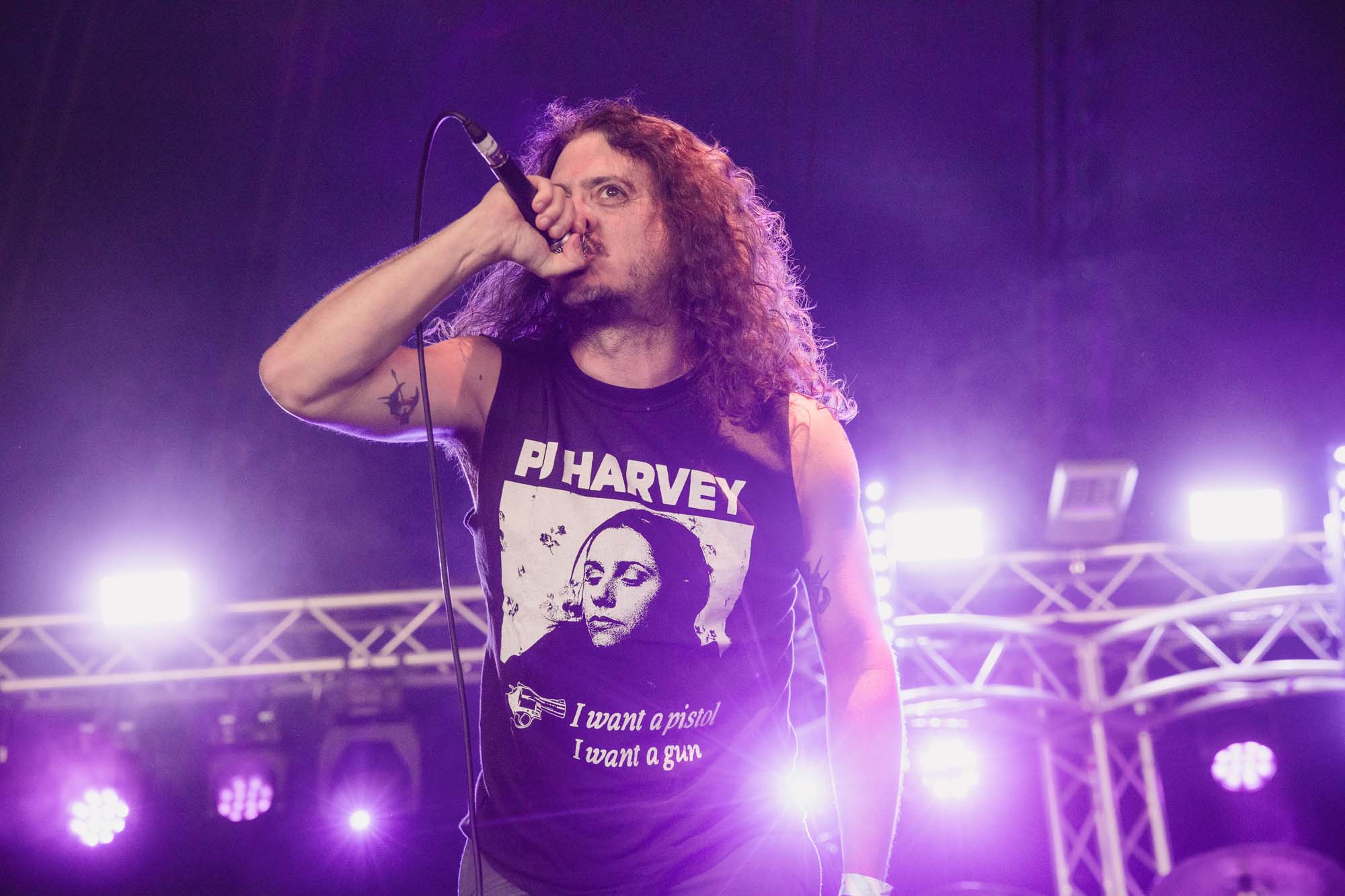 SWAMP COFFIN’s marketing in the lead up to the festival and between song banter may be light hearted but their set of blackened doom is as serious as a car crash. Not only are their songs crushing, there’s a surprising amount of emotional weight to tracks like Chapter And Hears with its “I’m mad as hell!” sample from the movie Network. There is a genuine moment of levity as they finish their set with As Cold As Blood, which features the World’s Biggest World’s Slowest Wall Of Death, the entire tent splitting down the middle before, very slowly, charging into each other, participants and onlookers in stitches as they do so.