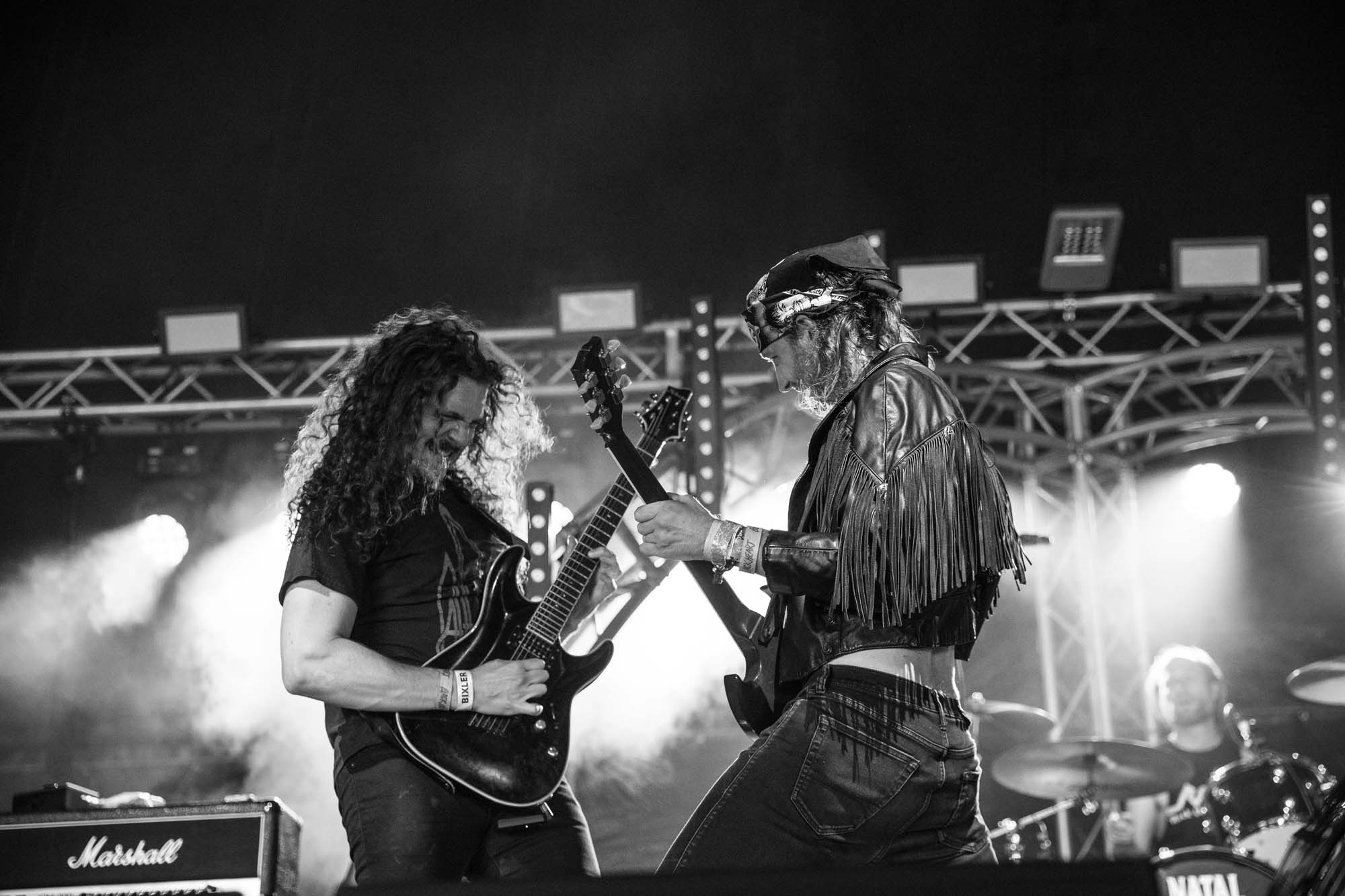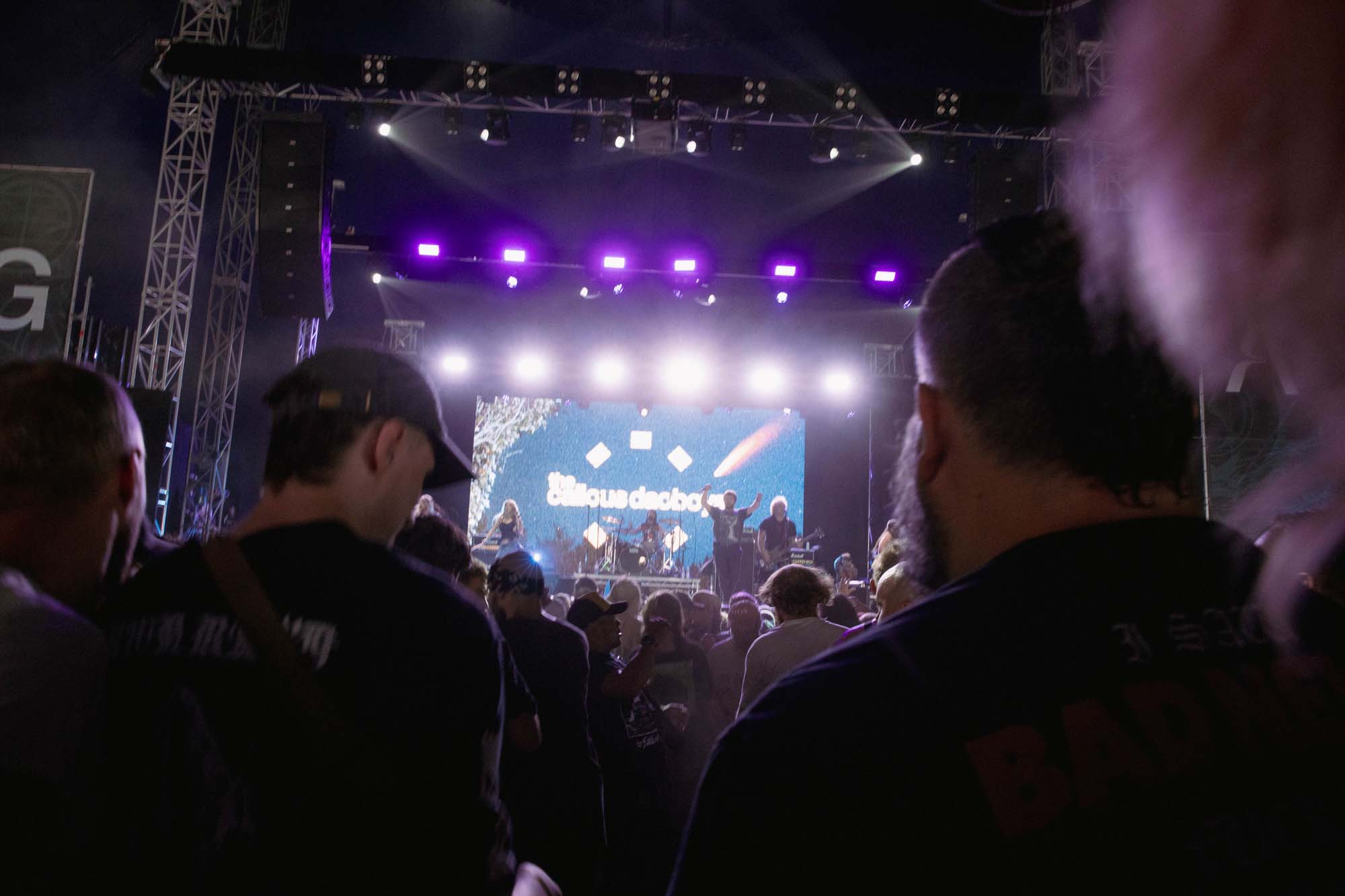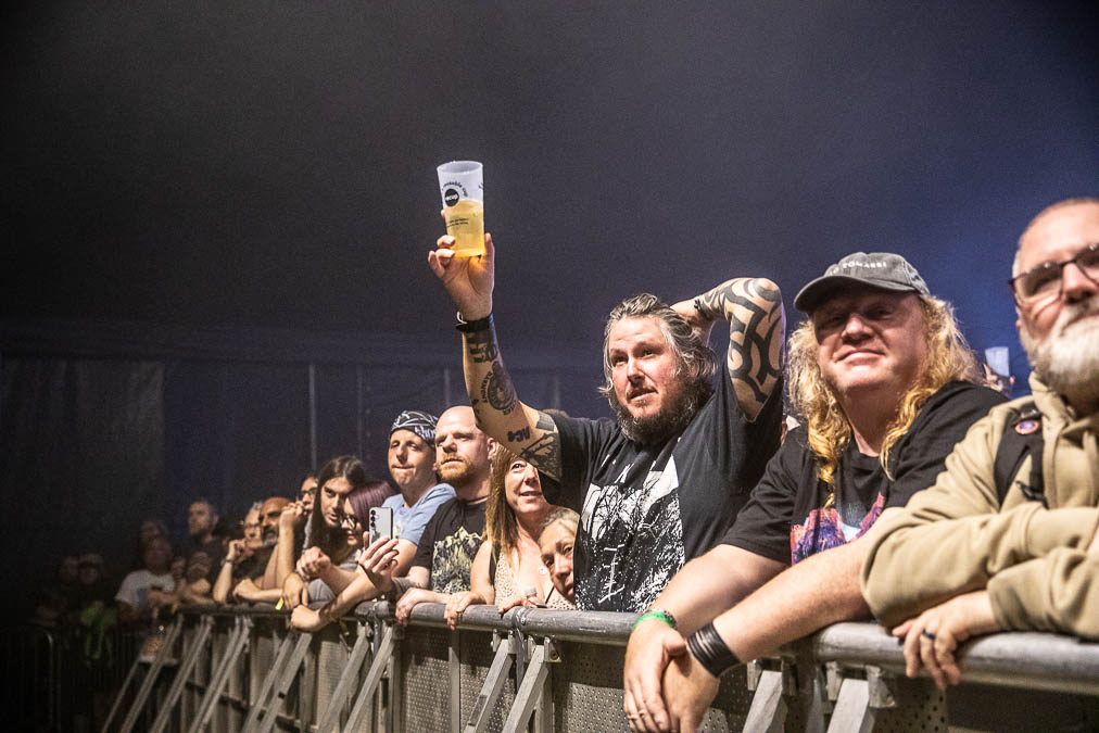 SWAMP COFFIN’s marketing in the lead up to the festival and between song banter may be light hearted but their set of blackened doom is as serious as a car crash. Not only are their songs crushing, there’s a surprising amount of emotional weight to tracks like Chapter And Hears with its “I’m mad as hell!” sample from the movie Network. There is a genuine moment of levity as they finish their set with As Cold As Blood, which features the World’s Biggest World’s Slowest Wall Of Death, the entire tent splitting down the middle before, very slowly, charging into each other, participants and onlookers in stitches as they do so.