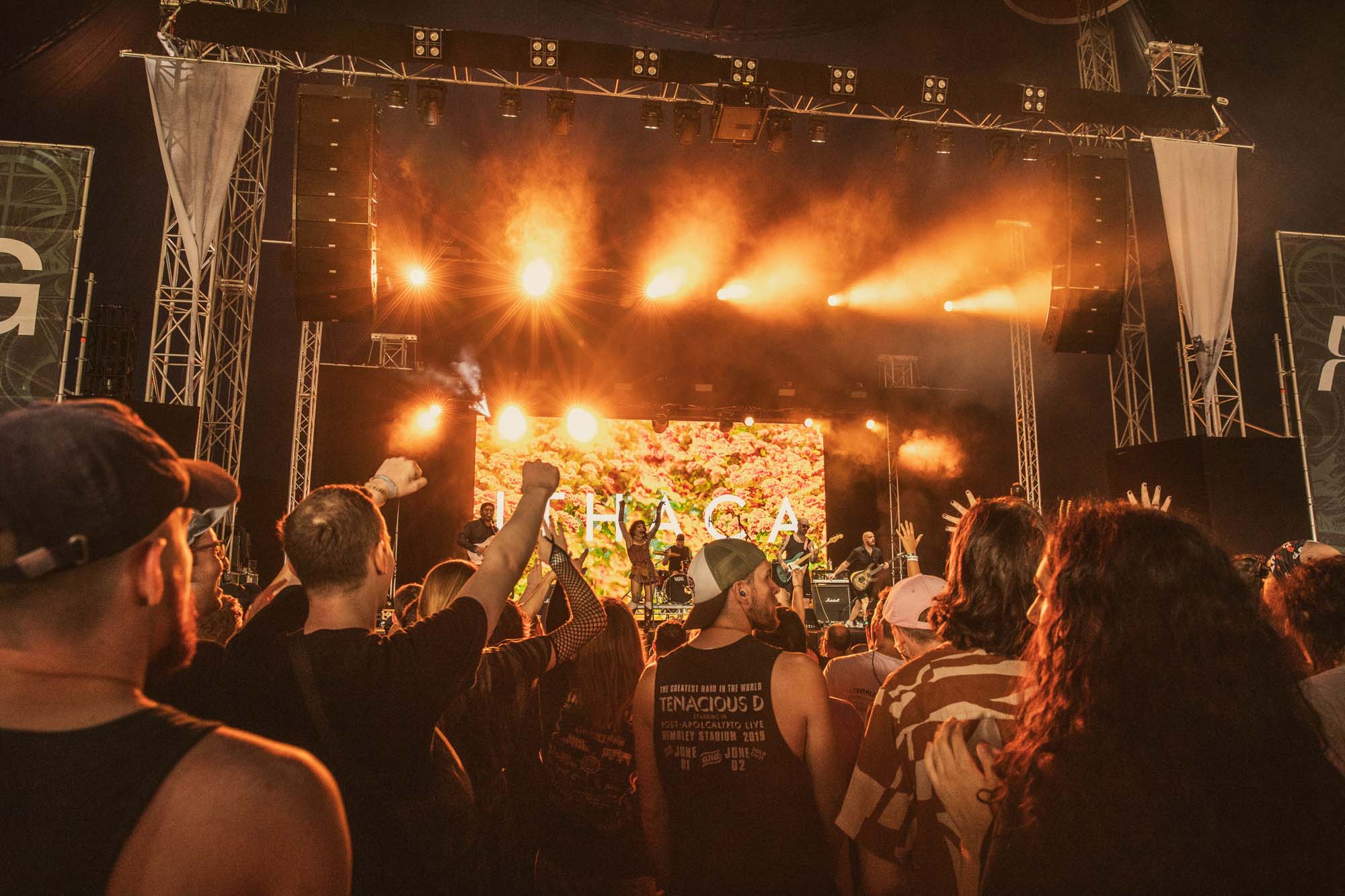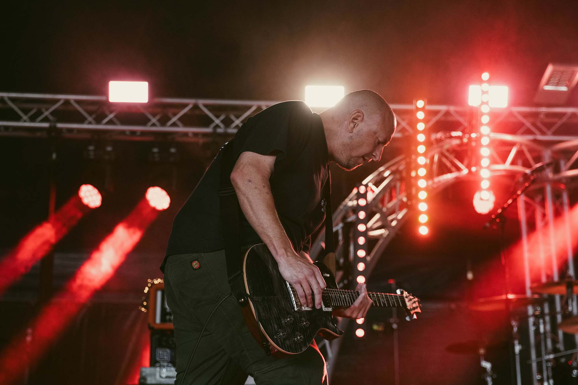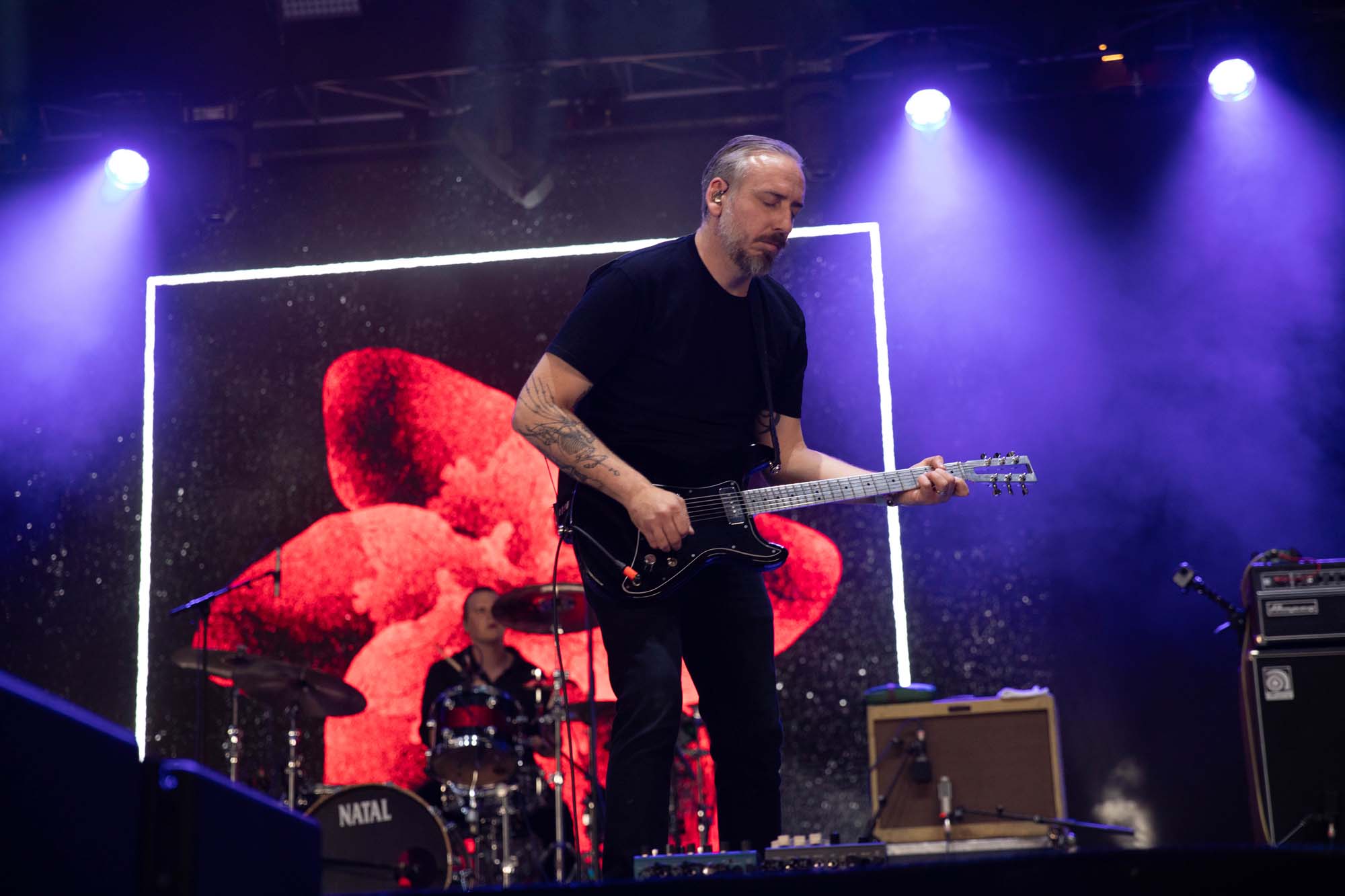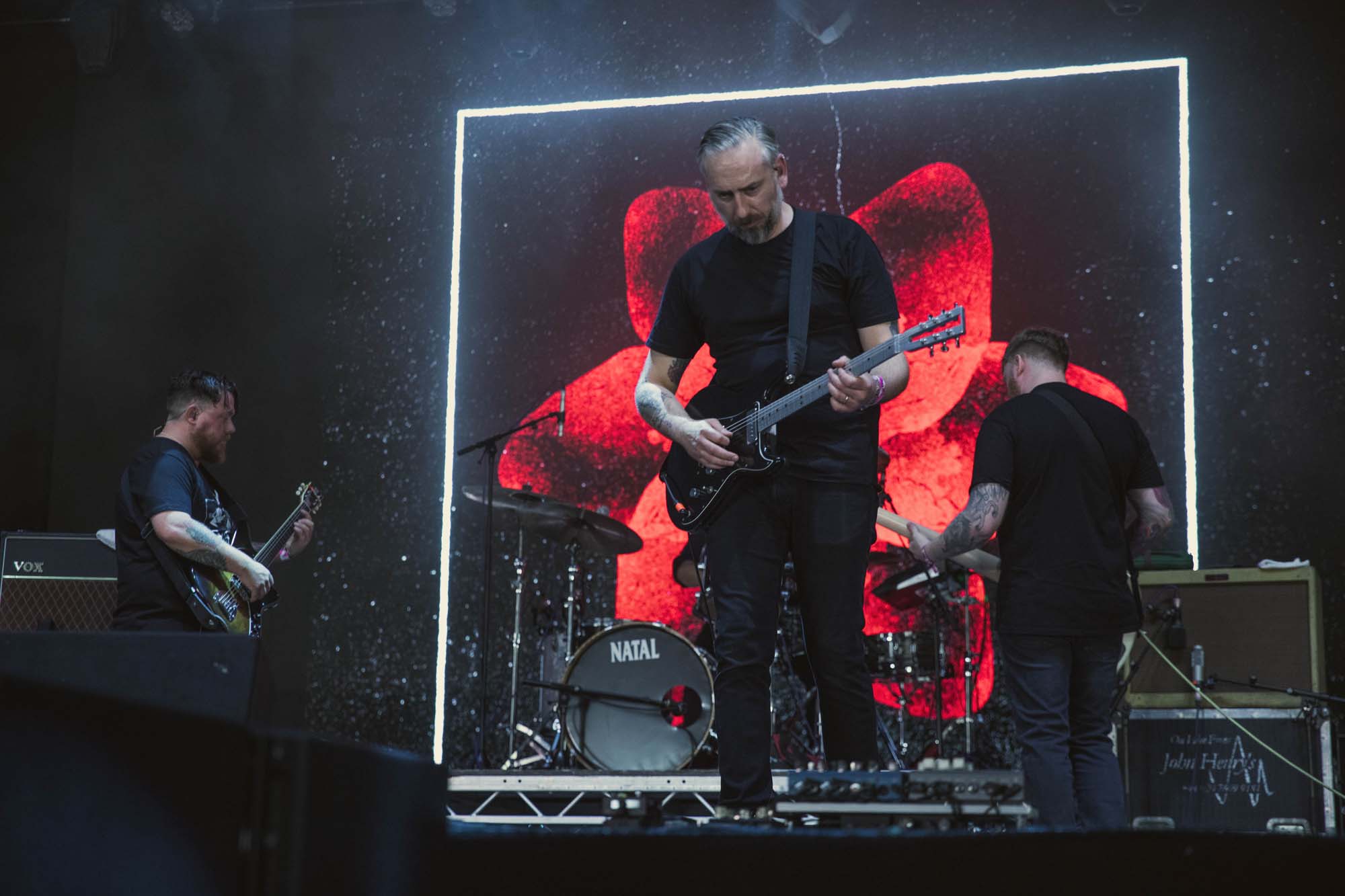 While much of the buzz this weekend might be around Australian post-rock legends WE LOST THE SEA doing their breakthrough album, Departure Songs in full, it’s their first set this weekend that sees them lob their tackle out and lay it on the table. For their main stage debut they showcase their incredible new album, A Single Flower, it’s artwork adorning the big screen behind them, with A Beautiful Collapse from 2019’s Triumph & Disaster thrown in for good measure. Their thoughtfully composed and high energy post-rock is more than suited to this main stage and the sound is mixed absolutely perfectly. From the opening of If They Had Hearts, it’s cacophony of roaring guitars, the drums thudding through with serious heft.