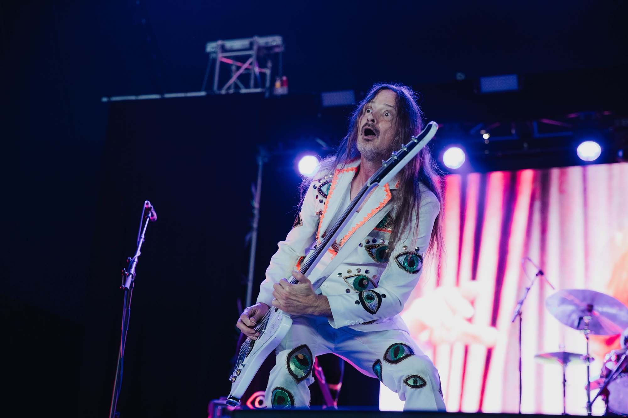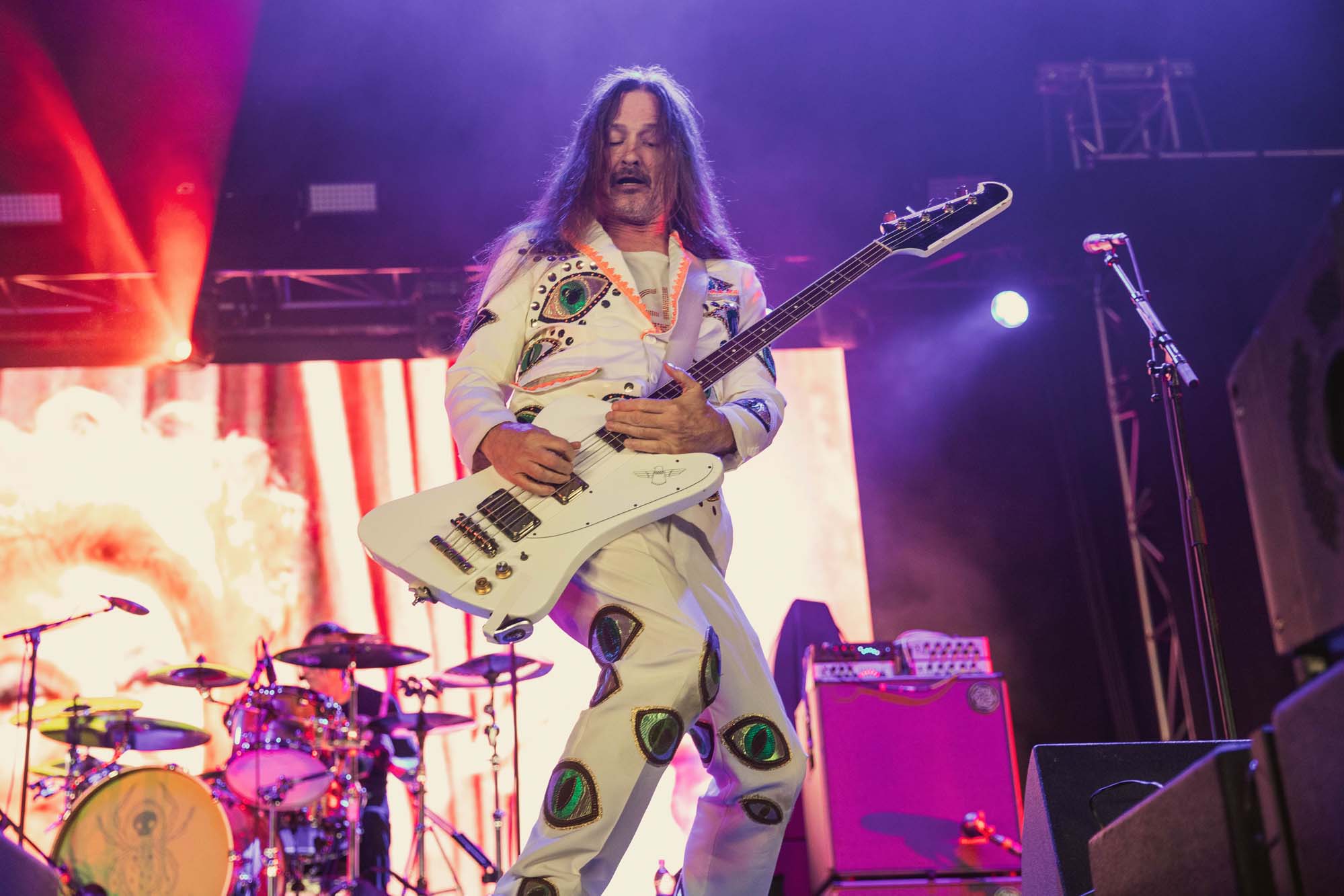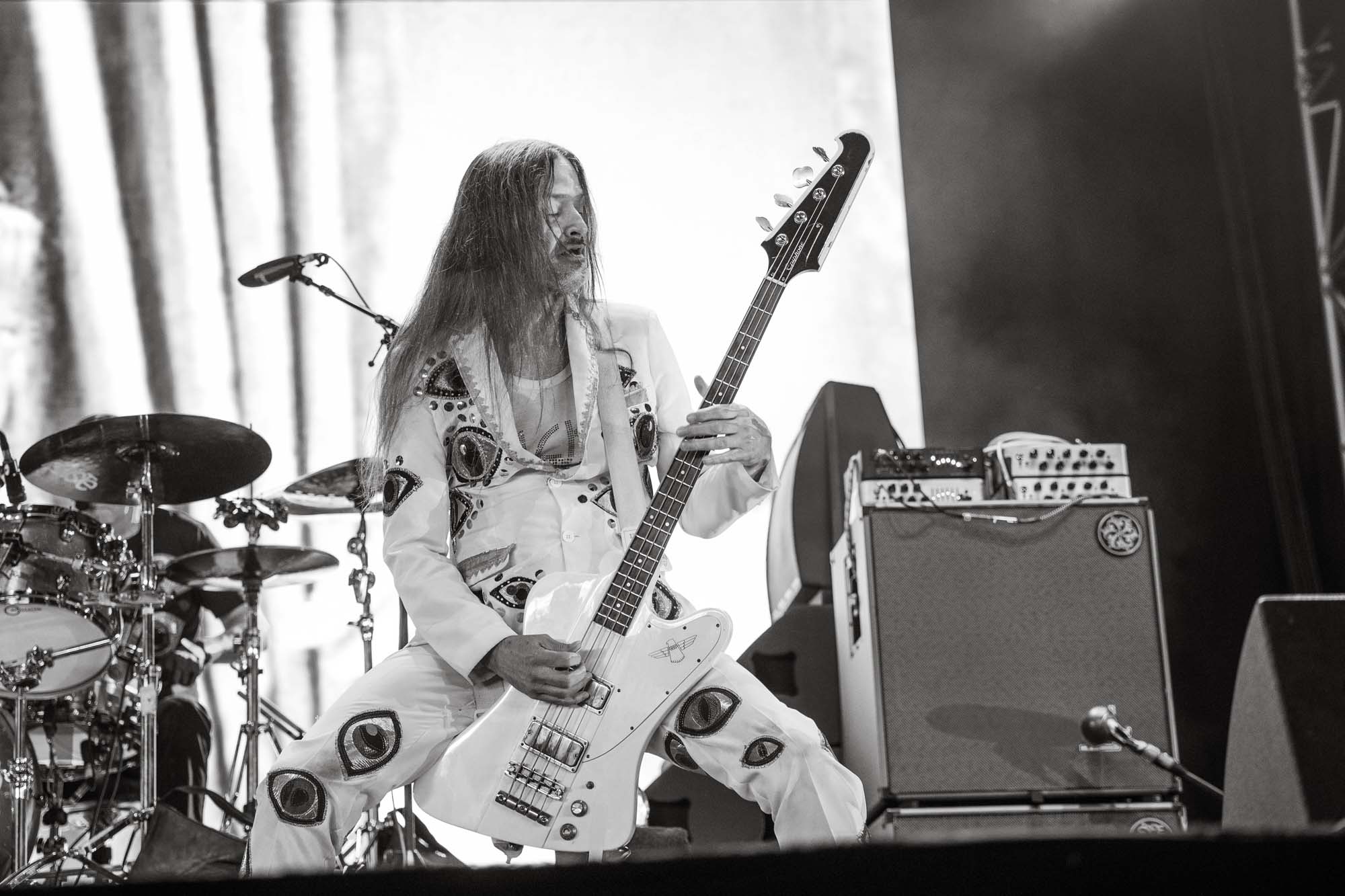 As tea-time approaches, if riffs is what you crave then MELVINS have a veritable smorgasbord of them. Longtime sticksman Dale Crover is joined by Coady Willis and the pair of percussionists provide a thunderous backbeat, set against a giant backdrop Endora from 1960s sitcom Bewitched. Bassist Steven McDonald prowls the stage clad in white Elvis suit while King Buzz, clad in wizard’s robes, digs deep into their extensive back catalogue, Strangely there’s nothing in the set from this year’s Thunderball album, but it’s a masterclass in stoner-grunge-metal-weirdness nonetheless. Granted it may not the best the main stage has sounded this weekend but hell, it’s still the MELVINS. A History Of Bad Men is a particularly delicious highlight of this riff-packed feast, and the three song finale of Hag Me into Honey Bucket into Revolve gives the crowd plenty to chew on.