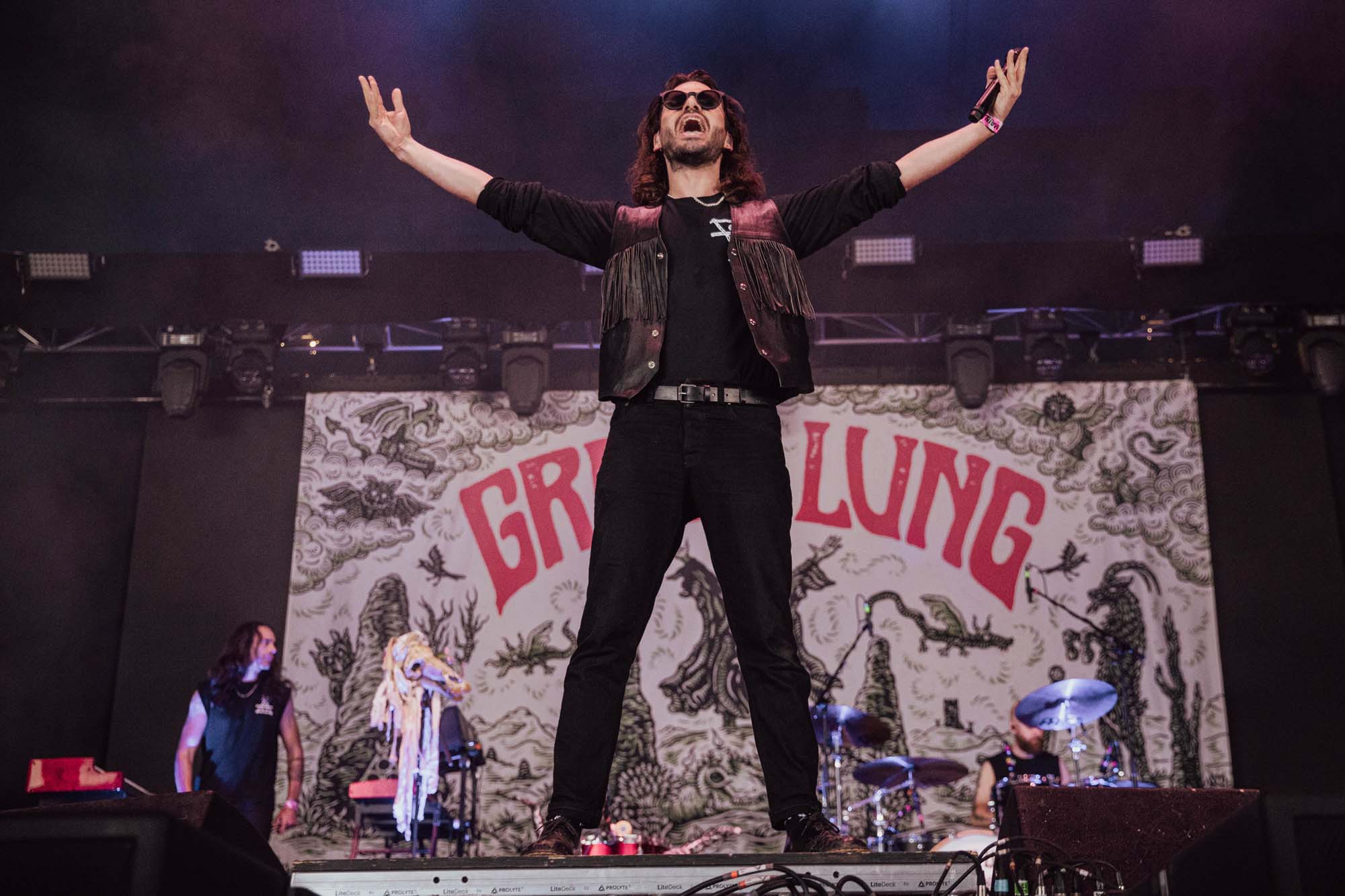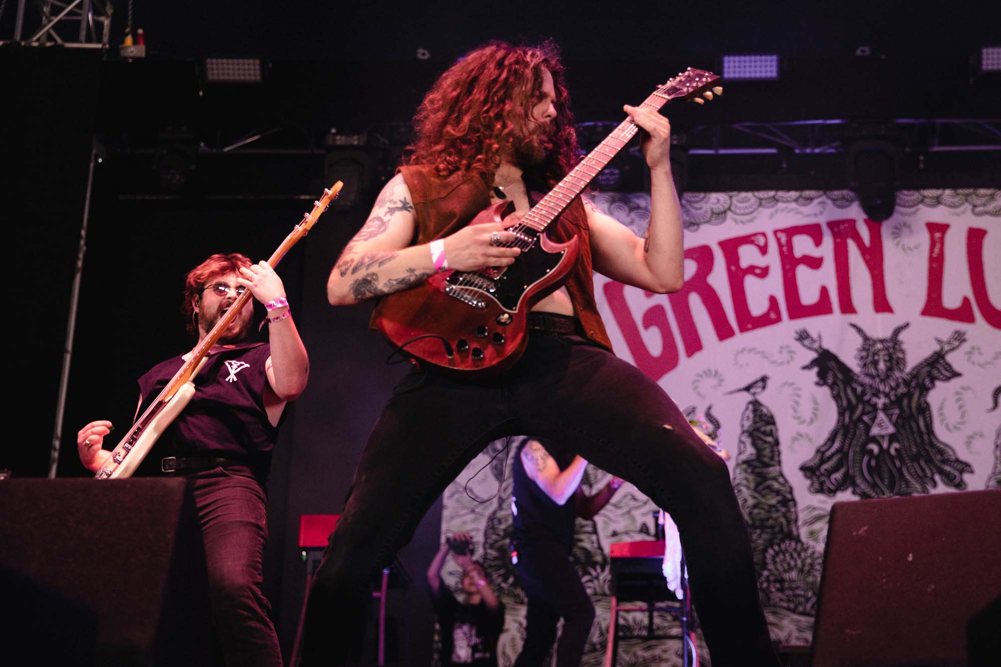 GREENLUNG’s “Old English forest dwelling mushroom eating God bothering heavy metal” was made for the big stages. Their stage-craft is delivered with high camp but backed up with masterful song craft and deliciously hefty tone. They’re also joined by a brass trio which a touch more sass and soul to the already sassy and soulful riffs of the likes of Woodland Rites and Let The Devil In, which are fast becoming hard rock classics. As vocalist Tom Templar declares, “we don’t have any polyrhythms, time signature changes or blast beats but what we do have is riffs, choruses, solos, and deeply researched lyrics about English Folklore!”, which it would appear is exactly what the crowd at ArcTanGent are after at this moment in time. Looking around, there’s beaming grins on every face in the tent, although that could be attributed to the game of inflatable rubber ring toss being had in the first few rows. It’s also impressive that they manage to command a pit to open up for the slowest song of the set, the doomy One For Sorrow. This is a band that has been steadily on the rise over the last few years and if they keep on putting in shifts like this one, they’re on a clear path to headliner status in the years to come.