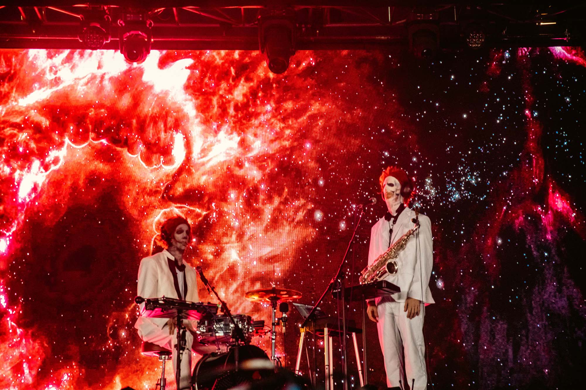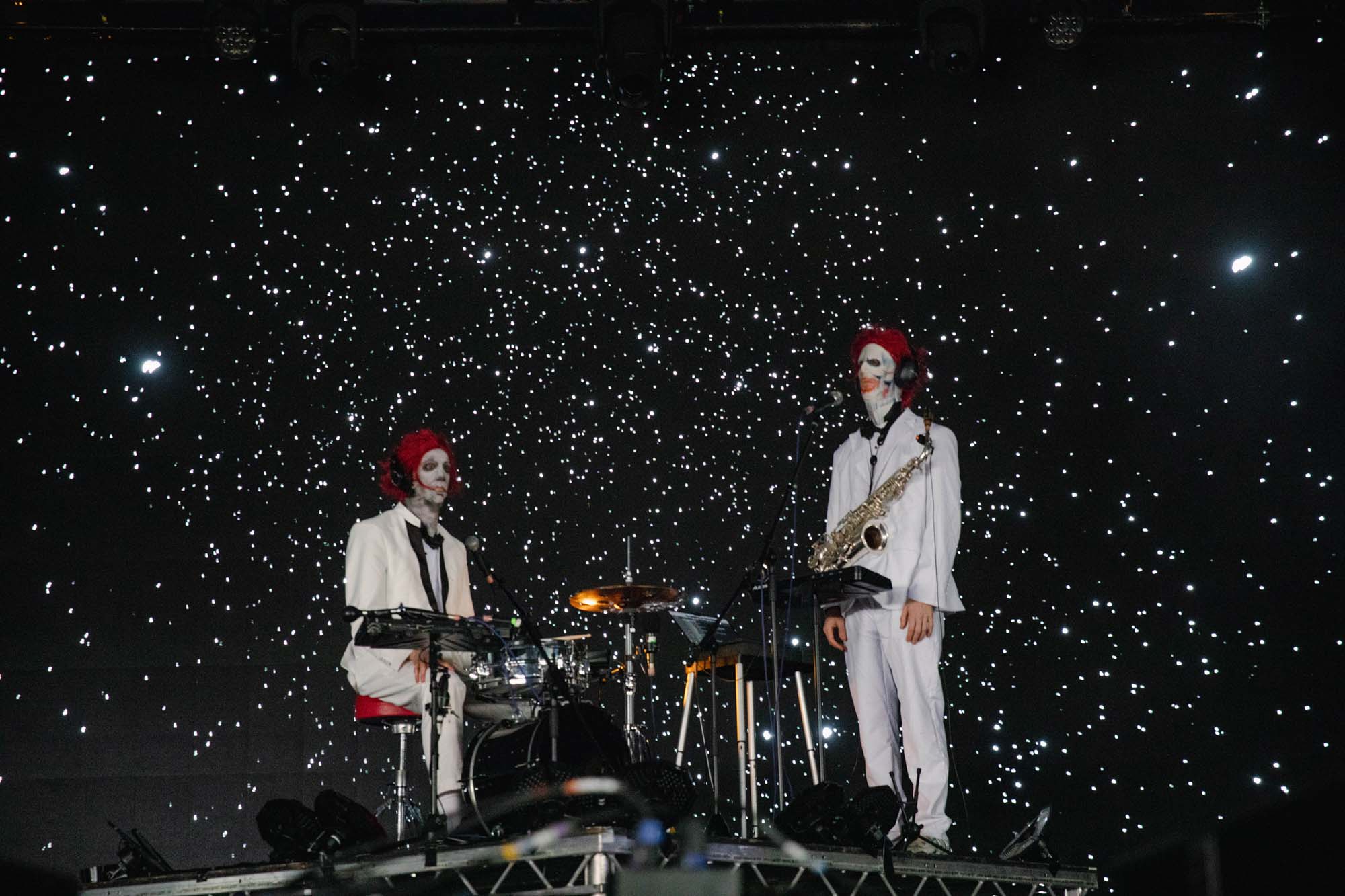 Having cancelled last year due to health reasons, anticipation levels are high, as the ArcTanGent faithful wait to see exactly what the viral meme-turned-cultural phenomenon, CLOWN CORE has up the sleeves of their boiler suits. Chuckles ripple through the crowd as the big screen flashes up seizure warnings and parental guidance notices, little do they know just how seriously those warnings should be heeded. Eventually, the anonymous clowns are escorted onto the stage by a pair of handlers. Once in position, they stand statue still for an uncomfortable amount of time before, the images on the big screen catapult us through space, towards earth and eventually into what looks like a carpark.