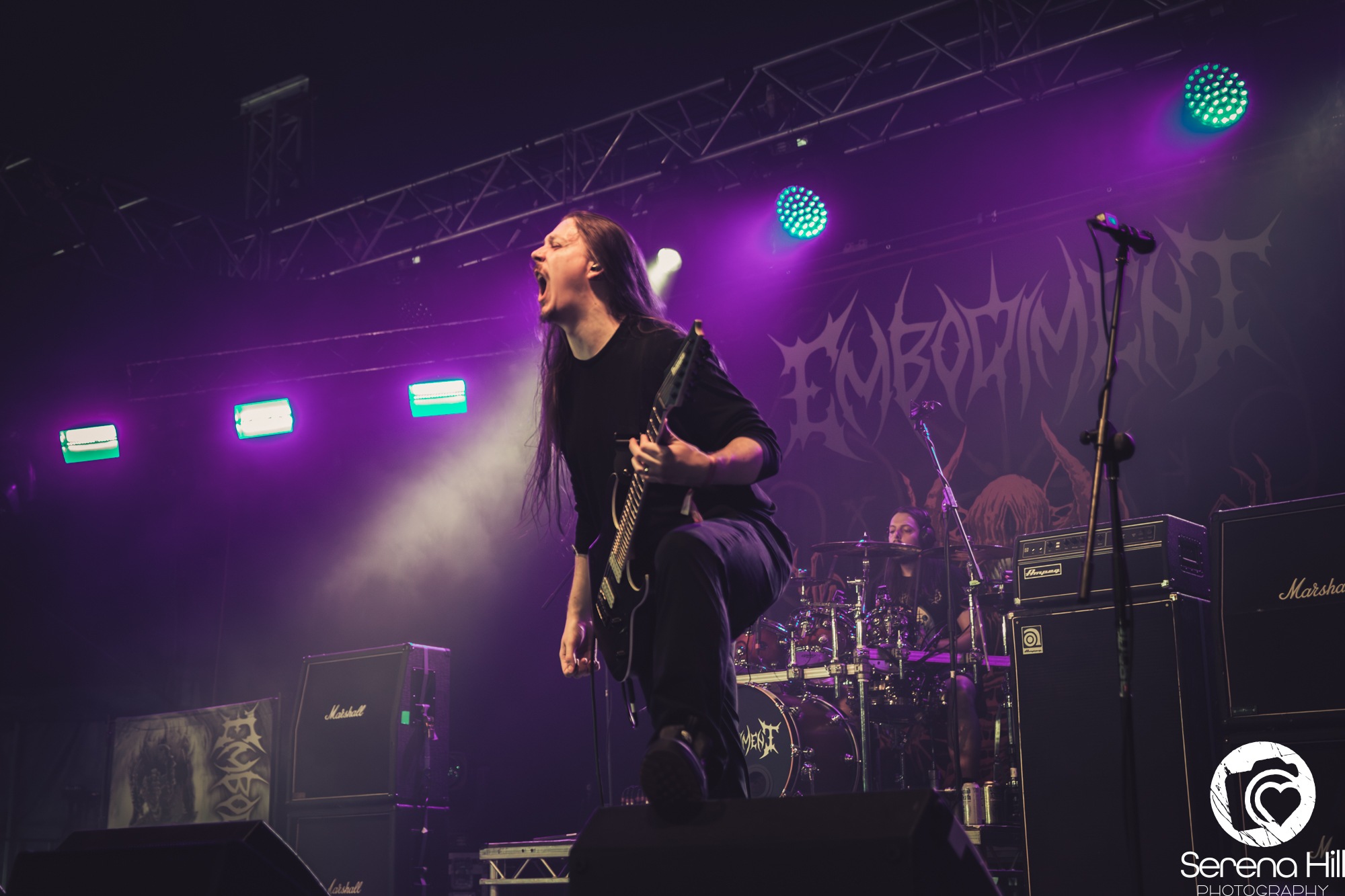 New Blood Stage alumni EMBODIMENT are back on the much larger Sophie Lancaster Stage at Bloodstock Festival 2023 and the Bristol-based death metal band offer another round of bludgeoning for those still recovering from SEPULTURA. The riffs come thick and fast from guitarists Finn Maxwell and Sam Godding, with the hefty breakdowns igniting plenty of stank faces amongst the crowd, and in vocalist Harry Smithson, the band posses one hell of a focal point. Consistently energetic and with a mighty set of guttural vocals in his locker, he leads the line effortlessly and keeps the intensity high. A solid set from a band that are really beginning to surge in momentum.