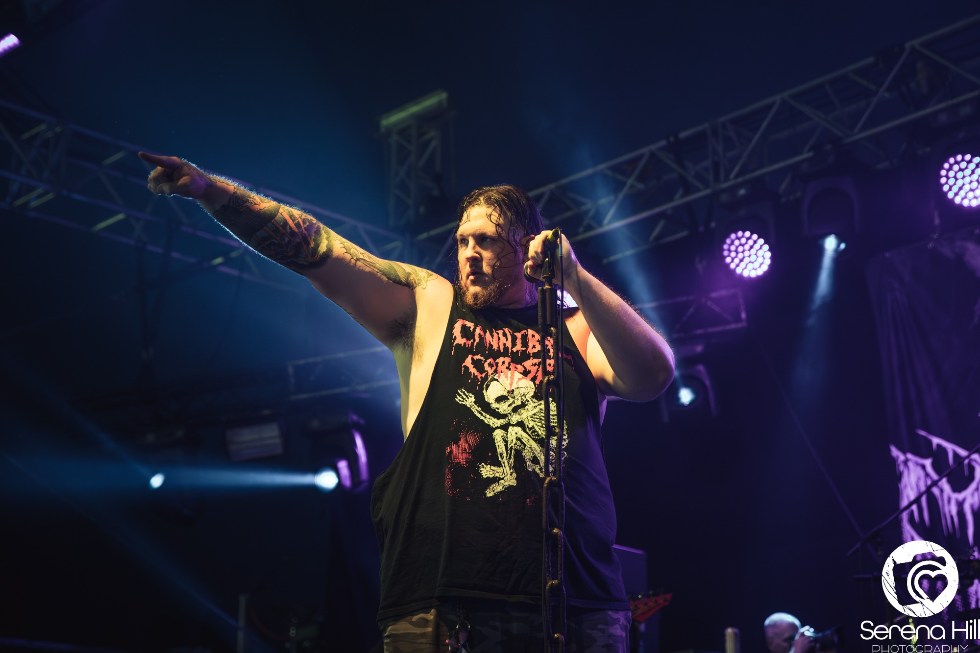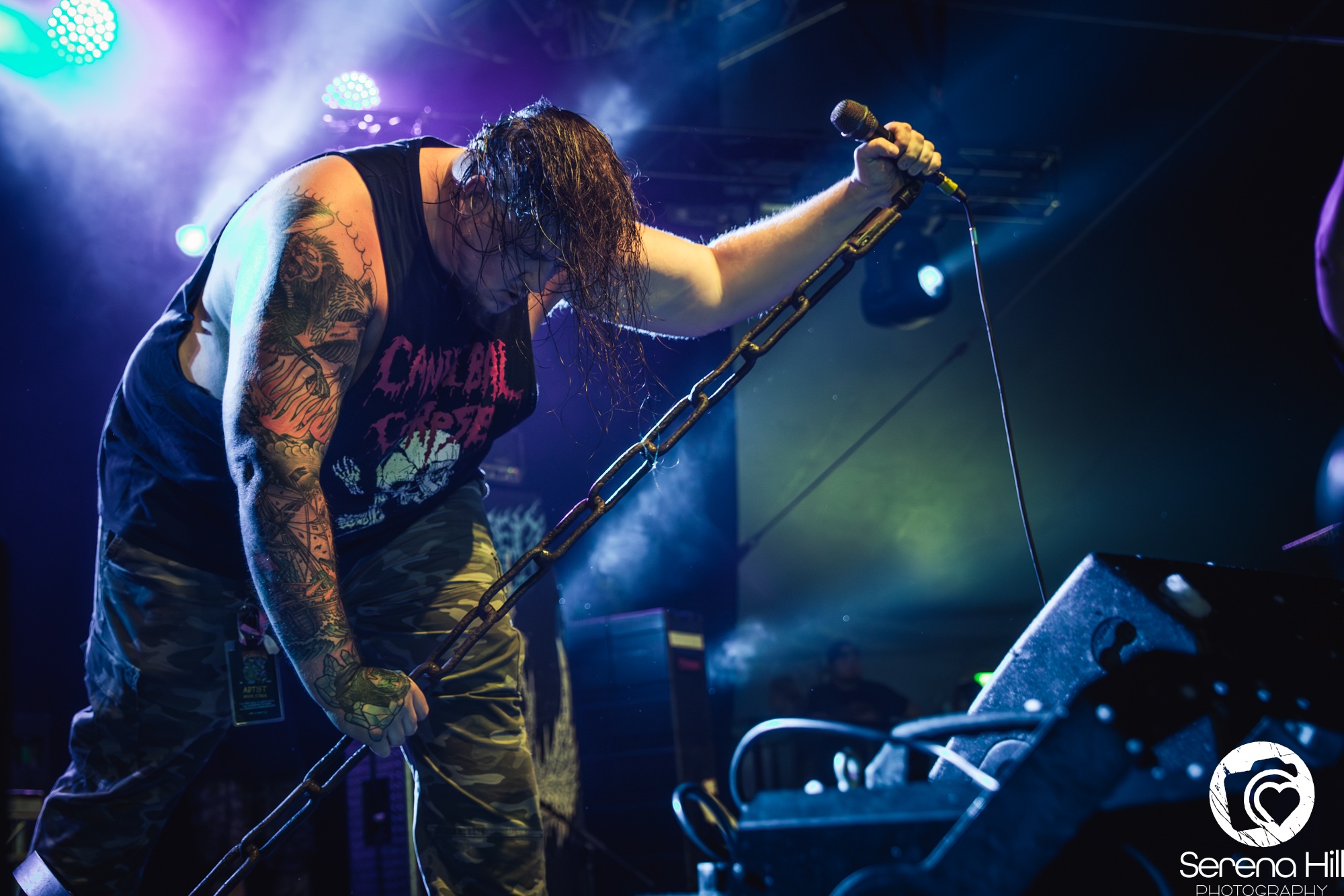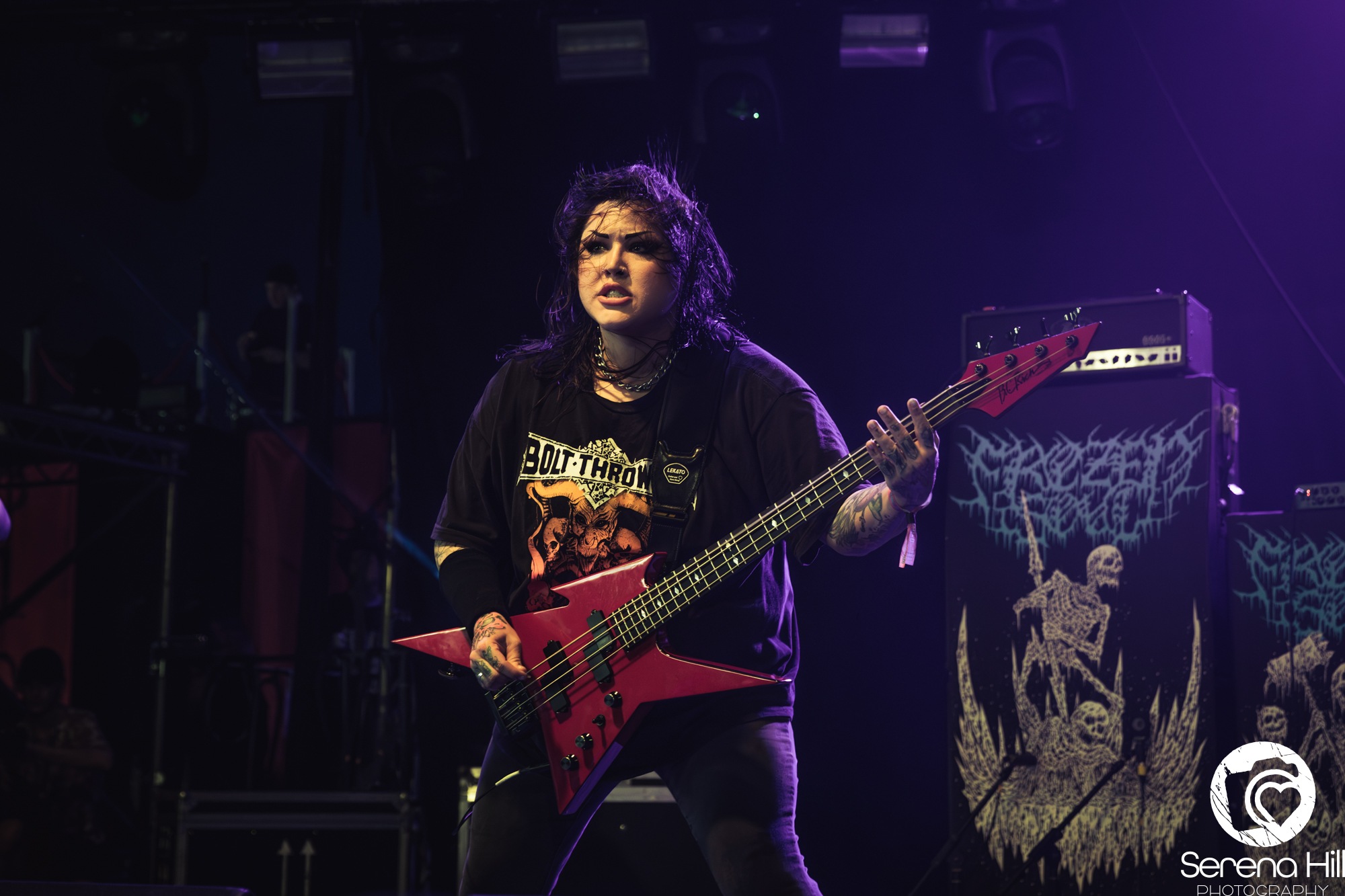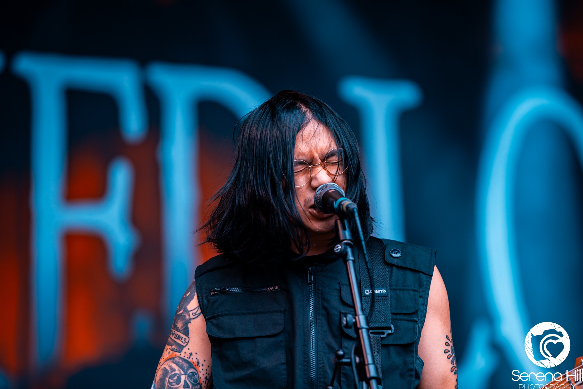 SKYND’s sound is simply massive and the somewhat grating nature to their vocals sets people on edge in a niche they once found comforting. Adorned in shades of pink to honour this stage’s namesake, SKYND cuts a striking figure while counterpart Father lingers in shadows orchestrating sonic landscapes a few patrons find overwhelming. Columbine provides a stark example. Anxiety pervading a crowd in a place they should feel at ease. It’s strange to call them hits yet the reaction to John Wayne Gacy, Edmund Kemper, and Jonathan Davis (KORN) endorsed Gary Heidnik are haunting reminders true crime music is on the rise. SKYND were deliciously discomforting and made a triumphant debut in a place where difference is sovereign.