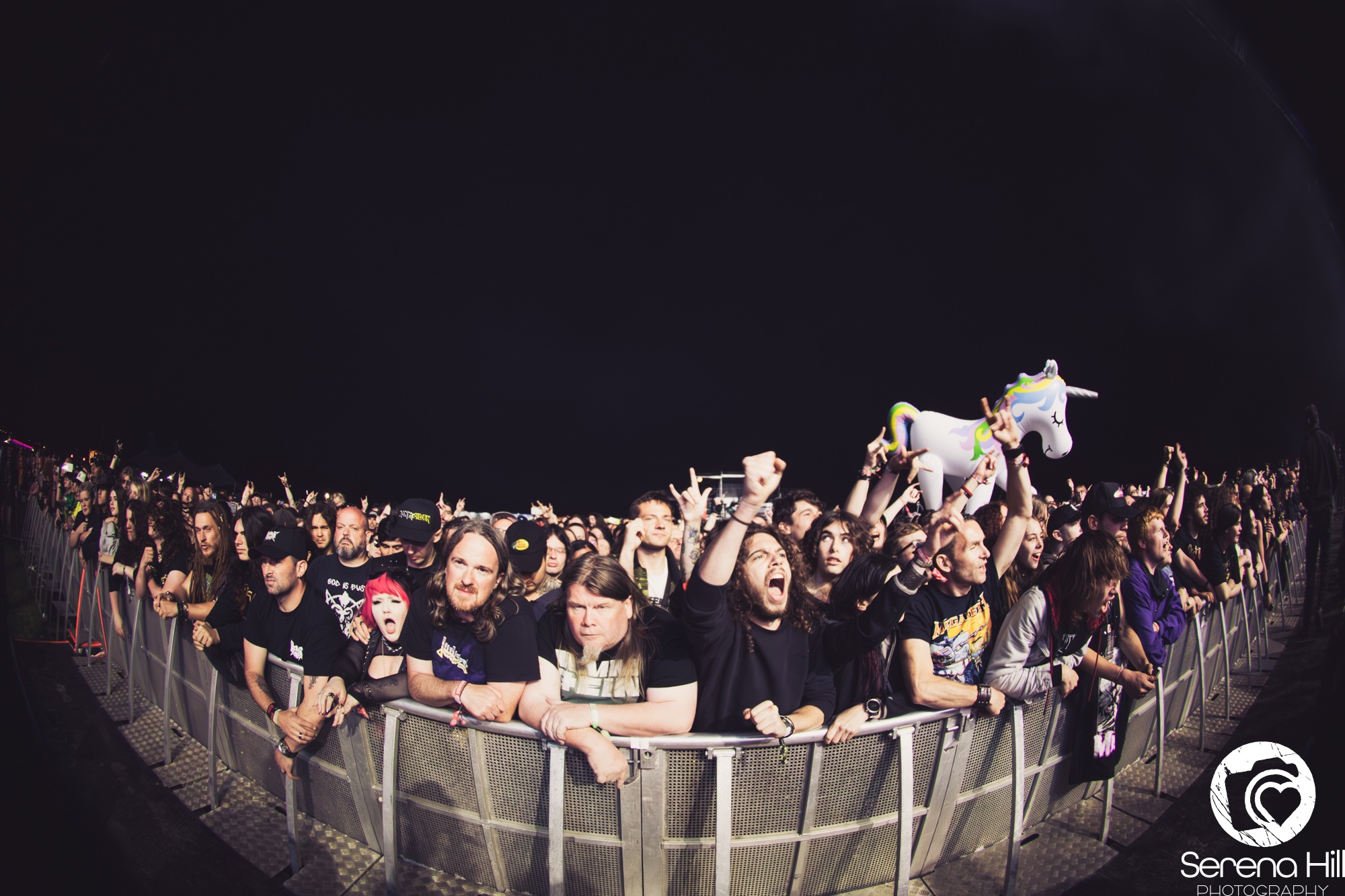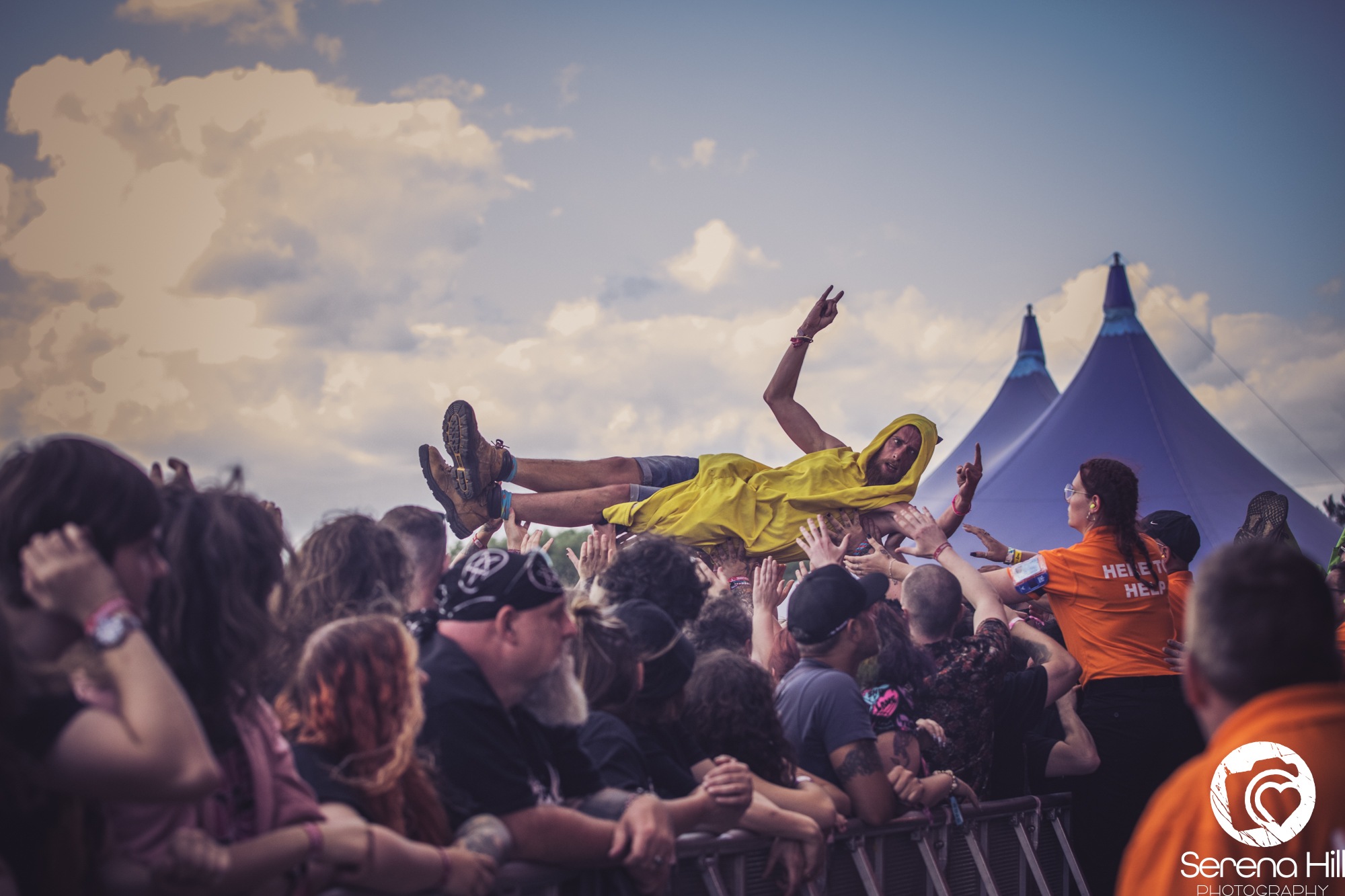 Donning hazmat suits and plenty of toilet paraphernalia, Czech bruisers GUTALAX have an aura of comedic value to their charm with their obsession for human faecal matter, but musically, the band decimate the Sophie Lancaster Stage in one of the heaviest sets of the weekend. Skull-crushing riffs are the order of the day and the snarling pig squeals and croaked snarls are met with both adoration and confusion in equal measure. For music this heavy and brutal, the comedic value in GUTALAX‘s shtick helps them win over those who normally aren’t knee deep in this level of extreme metal, but for some, it’s too much. A marmite band perhaps, but the band effectively showcase that the obtusely heaviest of metal still is welcome at Bloodstock table.