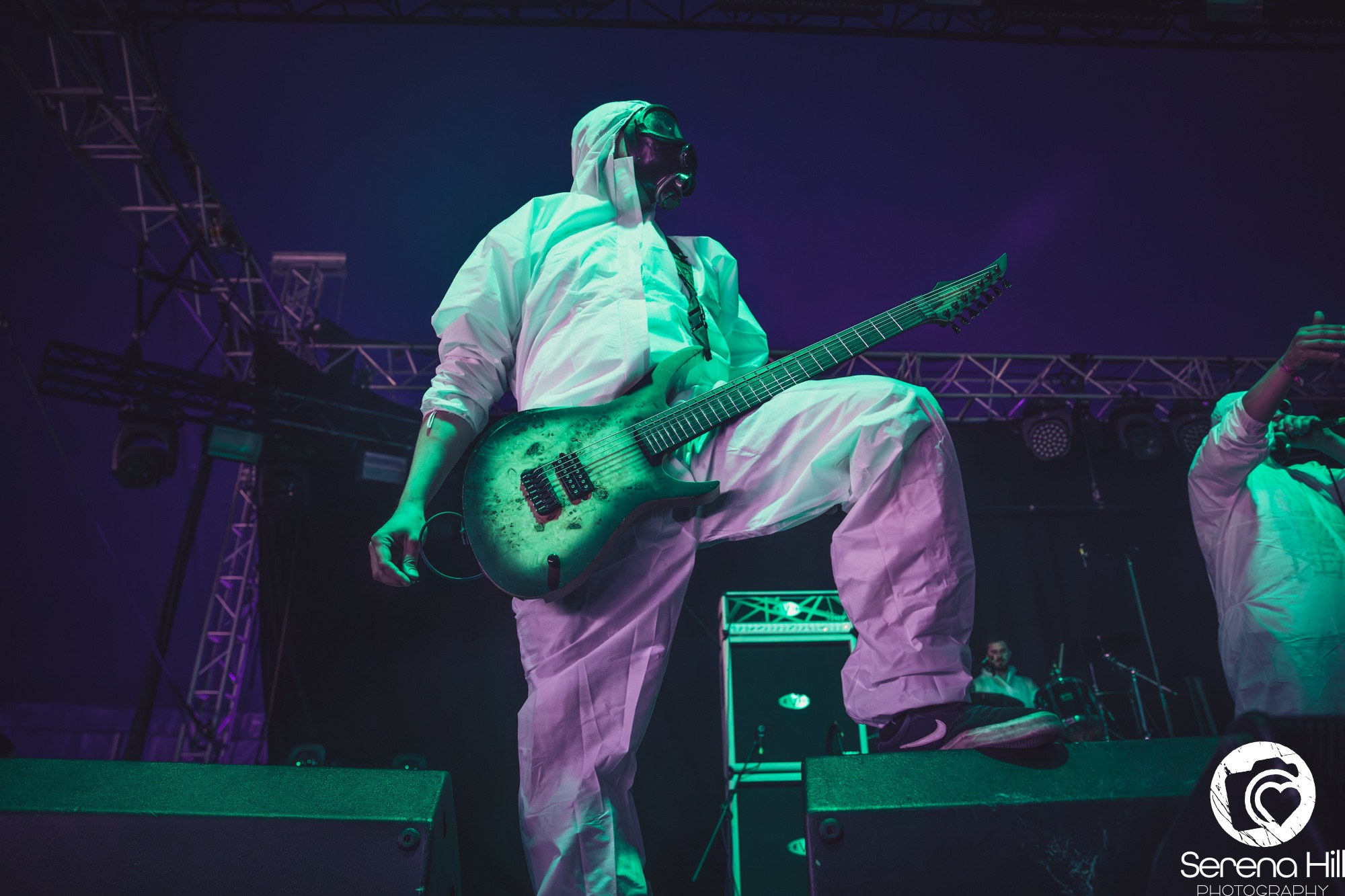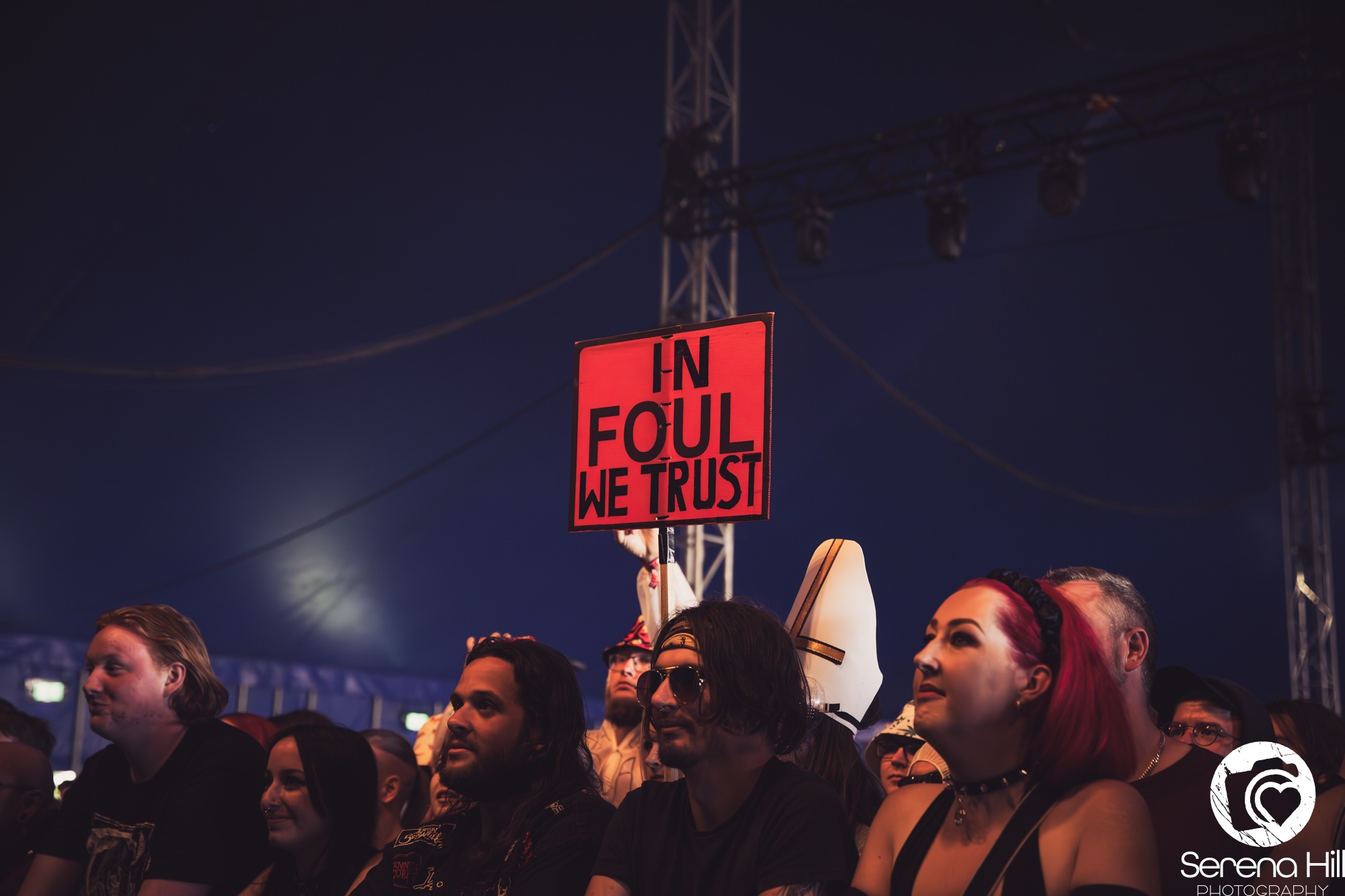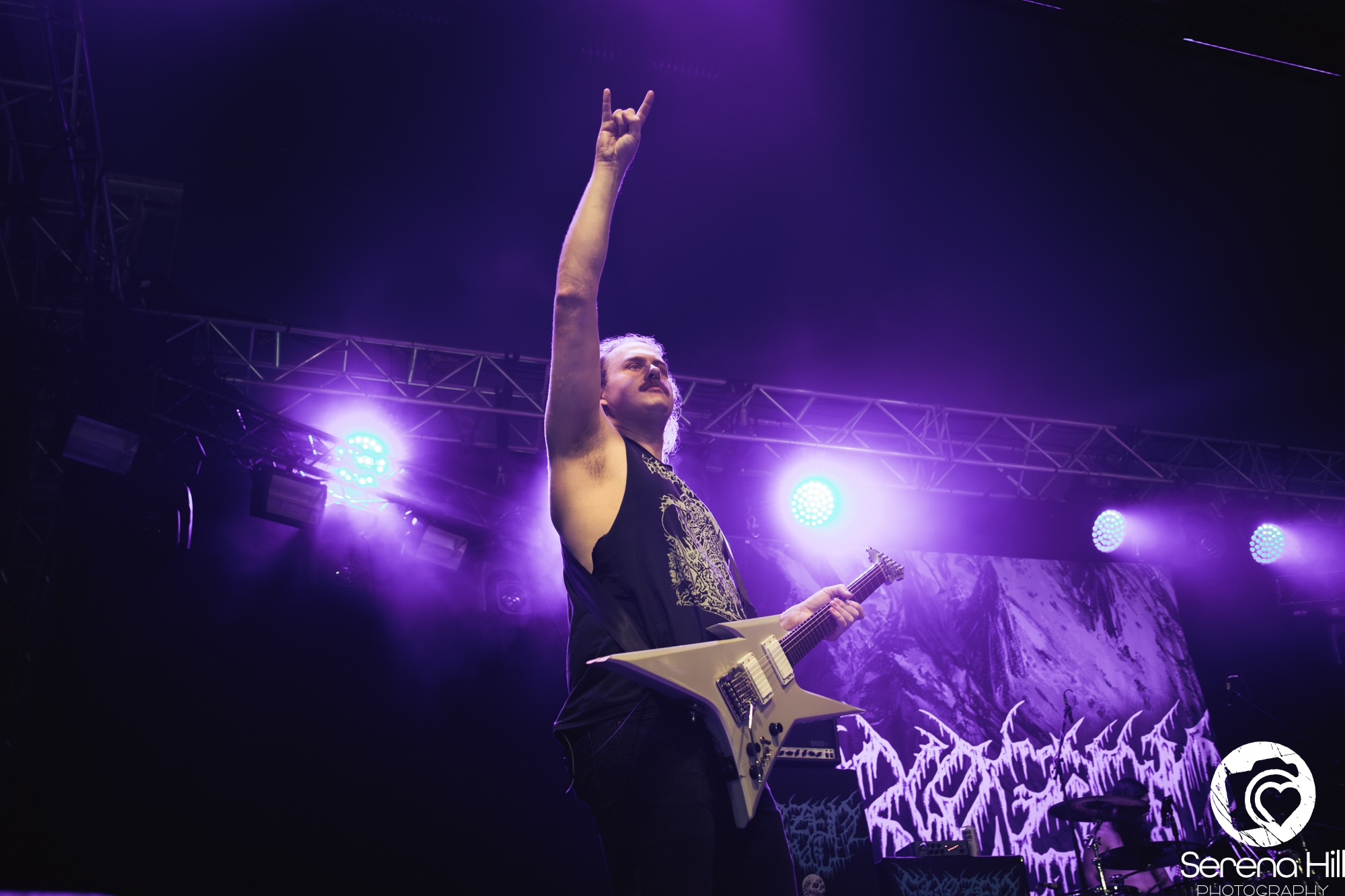 To say that CHURCH OF THE COSMIC SKULL stick out today is like saying you should be a little sceptical if Vladimir Putin buys you a plane ticket. Dressed all in white and taking their musical cues from 70’s prog bands, they may be the least metal act performing at Catton Hall this year. They’re not an intense band by any means, but there is something unsettling about them. Their stage outfits are pristine, their hippie vibe is a little too nice, and songs like Mountain Heart are catchy and enjoyable. But they also want you to let your guard down enough that you won’t notice the knife until it slips in beneath your ribcage. So yes, they’re not metal, but when they’re dancing and clapping along to Everybody’s Going To Die, you’re only one smiling Florence Pugh away from being stitched into a bear suit and burned to ashes. They’re not going to be for everyone, but the folks who get into the vibe have the time of their leader-loving lives.