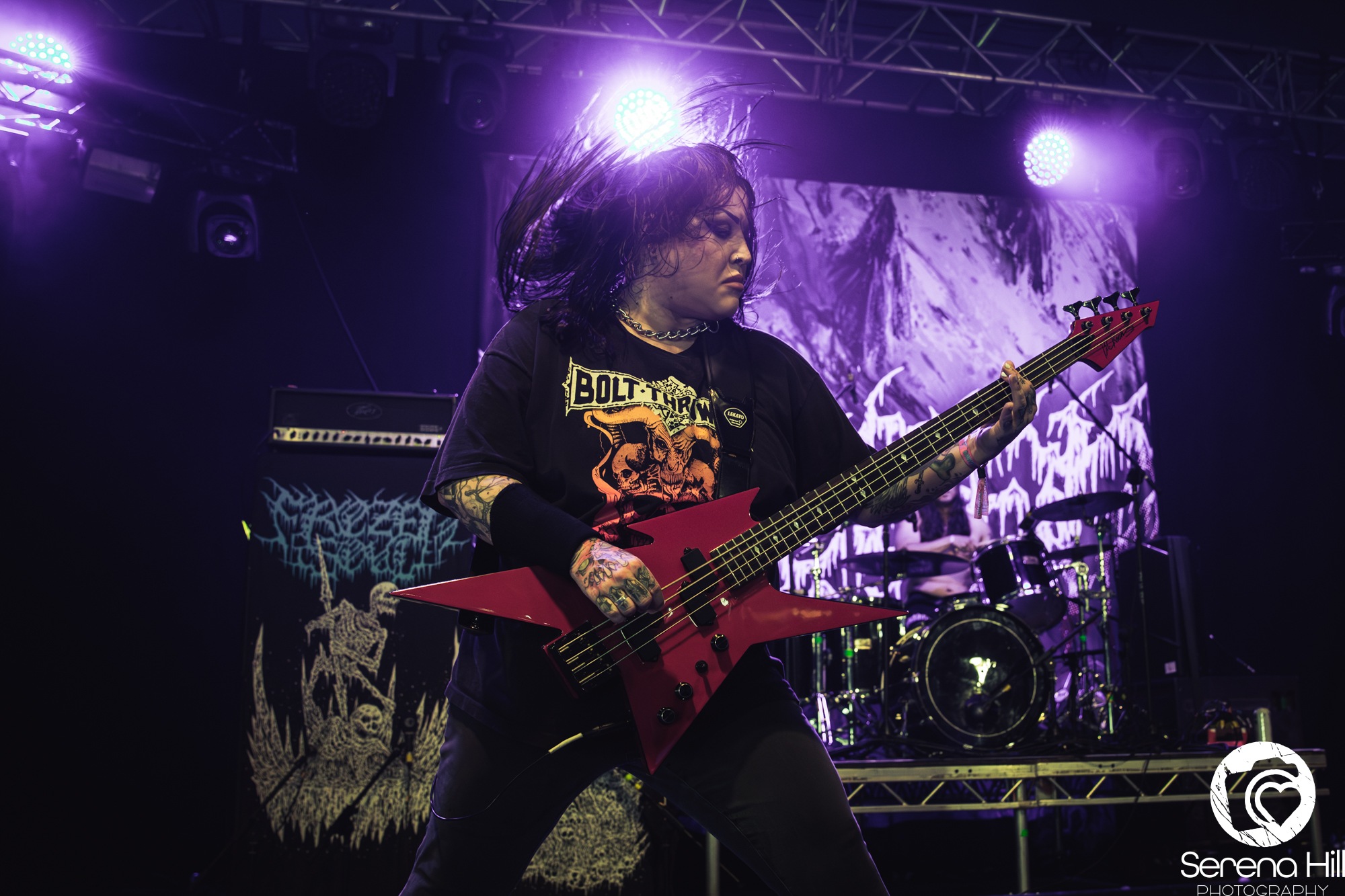 Just as crossover thrashers INHUMAN NATURE decimated this very stage one year prior, 2023 sees Leeds-based outfit PEST CONTROL arrive to The Sophie Lancaster Stage and whip up a storm of epic proportions. The riffs are nasty and encourage heads to bang aplenty and in Leah Massey-Hay, the band have a vocal point as the frontwoman exudes an abundance of energy and keeps the pit swirling by leading the line with aplomb. It’s a storming performance and we can only see the band rising up the Bloodstock ranks in the years to come.