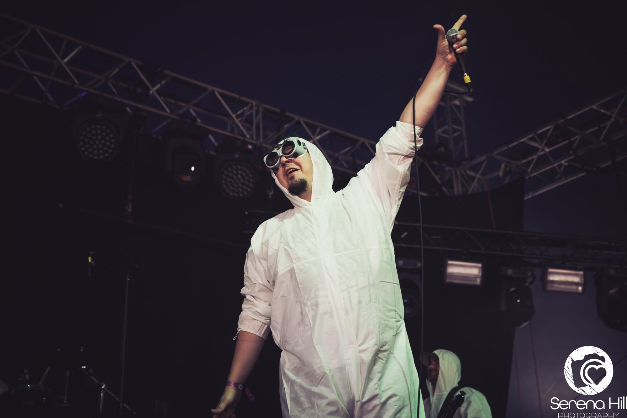 With darkness prevailing, there’s no better setting for enigmatic SKYND. Juxtaposition lies not only in their material but with the contrast of cannibalistic material blasting across the tent where fairground rides cast their neon glow no more than 100 metres away. SKYND wasted little time beguiling a raucous crowd with tales of Richard Ramirez and Eliza Lam. The material isn’t for everyone as the subject of drama The Girl From Plainville, Michelle Carter, stops people in their tracks. This is effectively what SKYND wants.