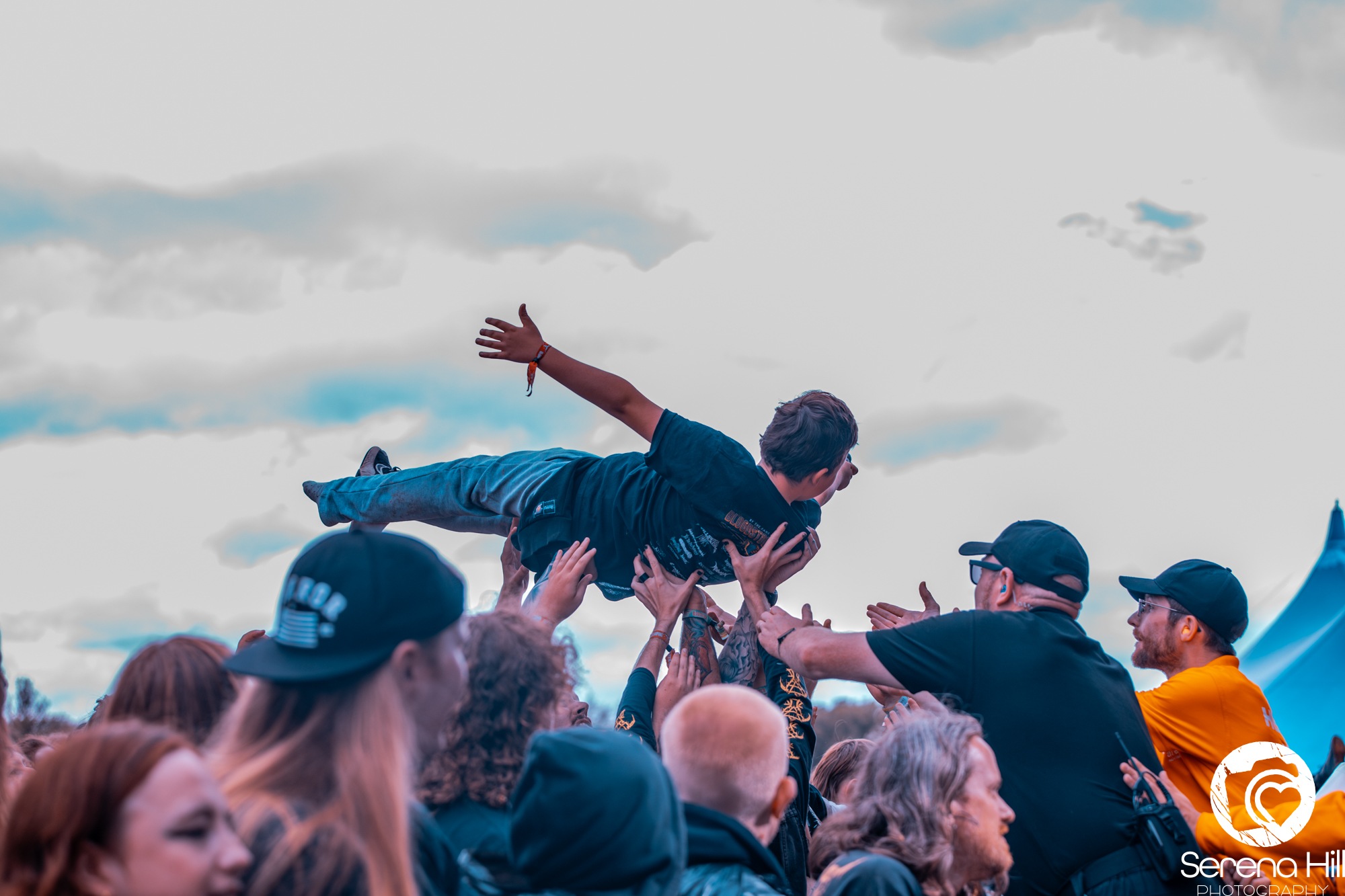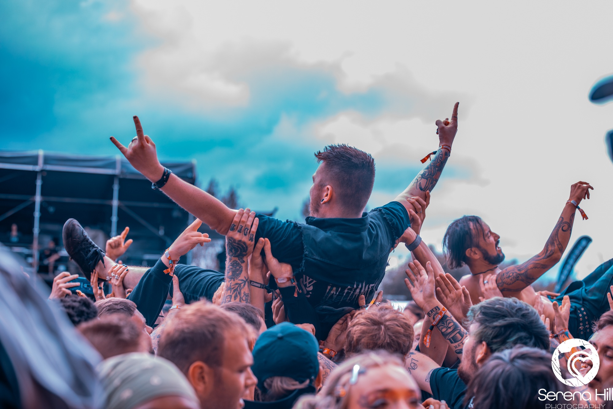 Yorkshire boys INVISIONS don’t give us the best set of the weekend, but it may be the most wholesome. They’ve been plying their trade in the UK’s crowded metalcore scene since 2016 but seem to have turned a corner this past year. A main stage appearance at Hellfest in June has given them a big boost of confidence, and their thirty minutes in the Sophie tent is another uplifting moment. The band quickly get the gathered crowd on their side and look absolutely delighted every time a fresh body surfs over the barrier. They threaten to peak too soon as their best track Annihilist turns up early, but they maintain their momentum and the set becomes a home run. INVISIONS have supported just about every international band that’s passed through their town and played in lots of half-empty venues, so the immense circle pit is richly deserved.