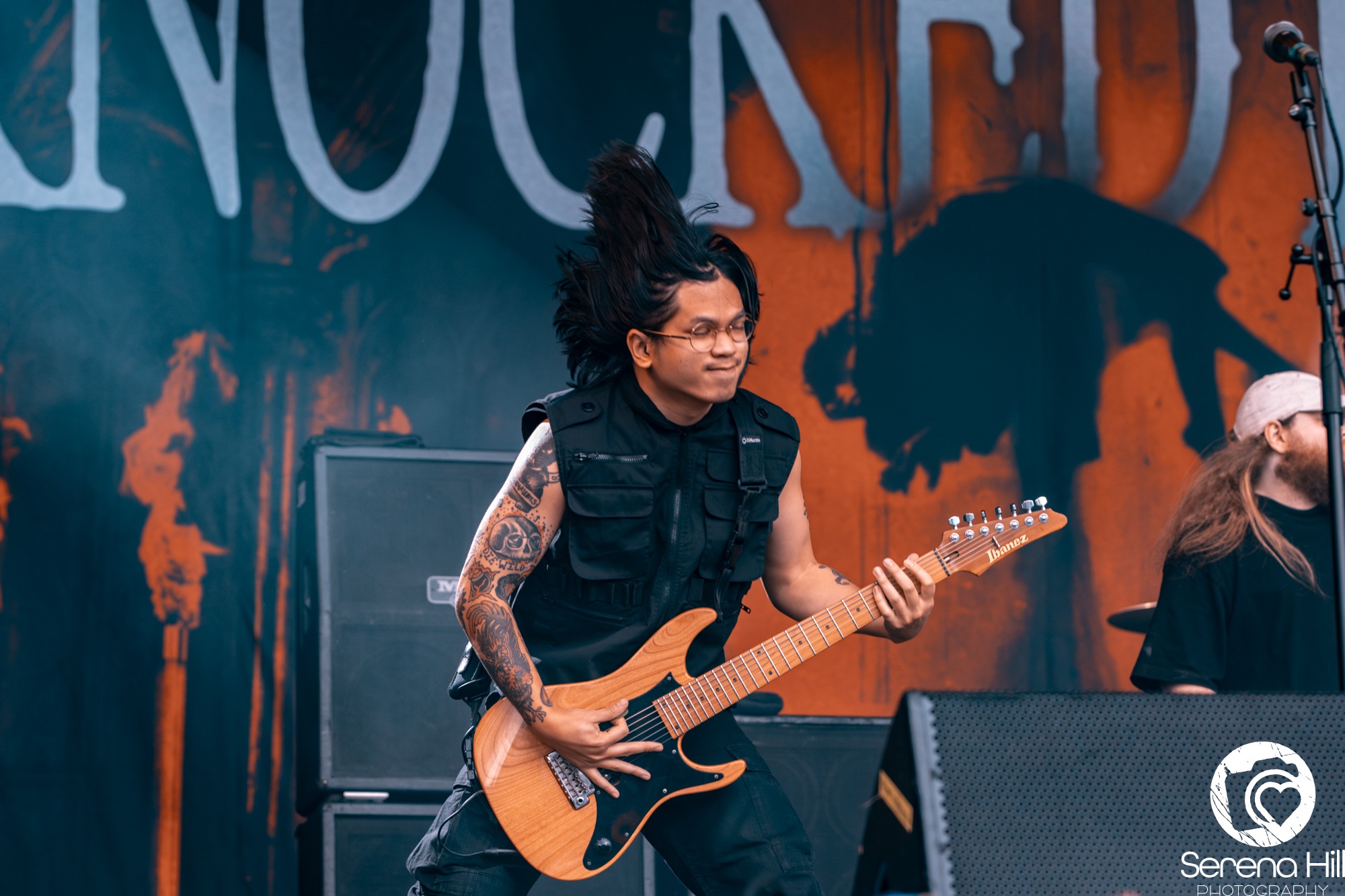 Having released their brand new record, A Feast On Sorrow, a day prior, for London metallers URNE, Bloodstock intends to be the perfect launch platform as the band look to kickstart their next chapter. And the band make good on this promise as their early morning set on the festival’s main stage is a solid statement of intent. Opting to open with Serpent & Spirit, the title track from 2021’s debut, the band launch into a cacophony of earth-shattering riffs whilst Joe Nally dispatches his vocals with aplomb. Material from their brand new album sounds strong in their live arsenal, with Becoming The Ocean being a particularly great highlight, and its clear that Nally is taken back with what is unfolding before him.