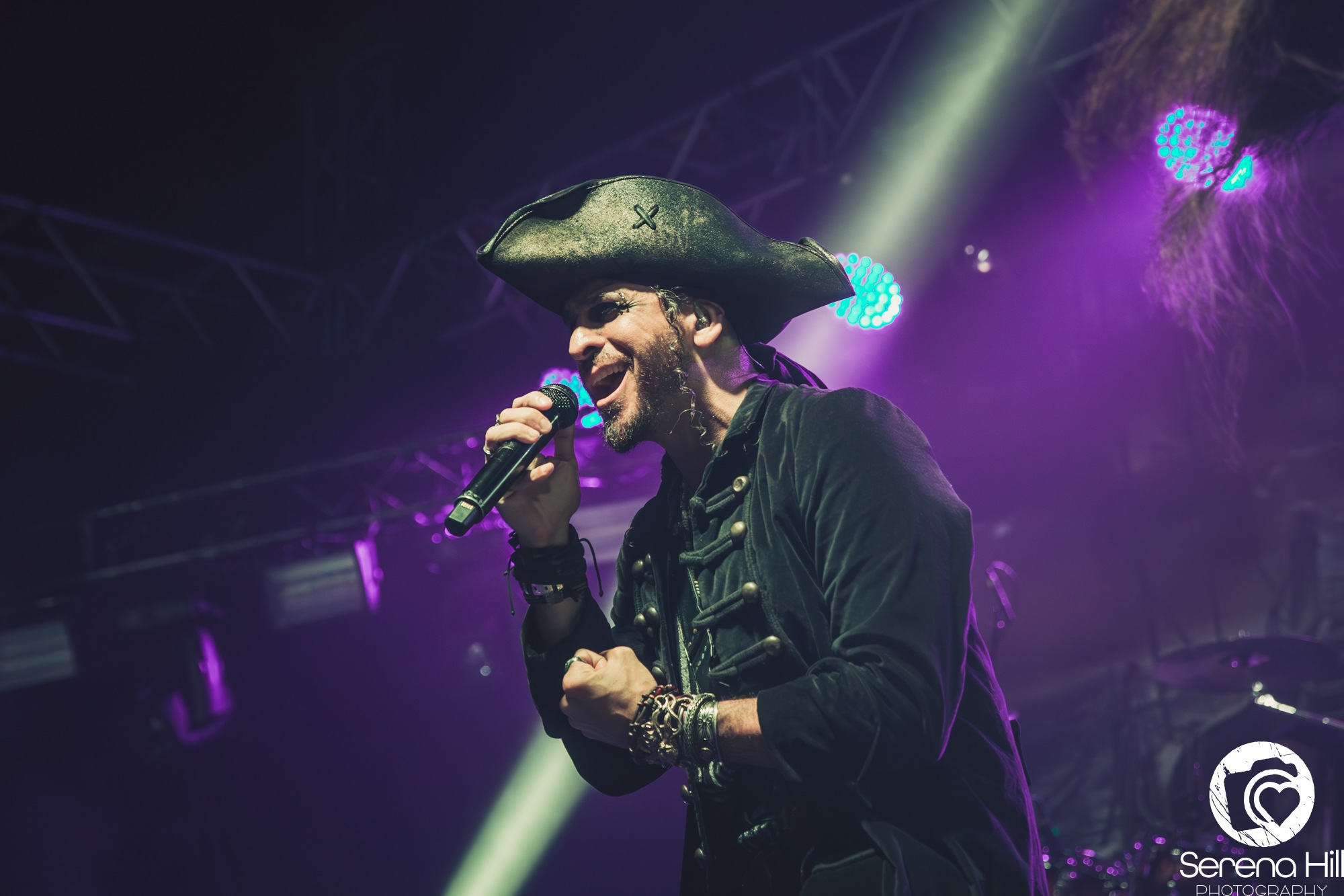 There’s a complete change of mood next as VISIONS OF ATLANTIS bound onto the stage. The dark anthems and urban paranoia from KING 810 are replaced by big, anthemic slices of symphonic metal cheese played by five Austrians dressed as pirates. They completely ignore their older work and the set consists entirely of songs from the last two albums, but the catchy melodies and bombastic pomp are precisely what the increasingly drunk crowd needs. Master The Hurricane and Clocks keep the party in full swing, while Legion Of The Seas is a rousing finale. It’s over-the-top, singalong nonsense and just the sort of light-hearted fare that makes Thursday nights at Bloodstock so fun. Singer Michele Guaitoli repeatedly getting his hat stolen is an entertaining sight as well.