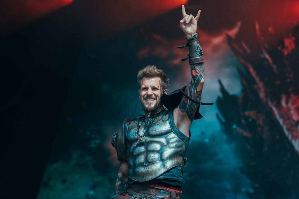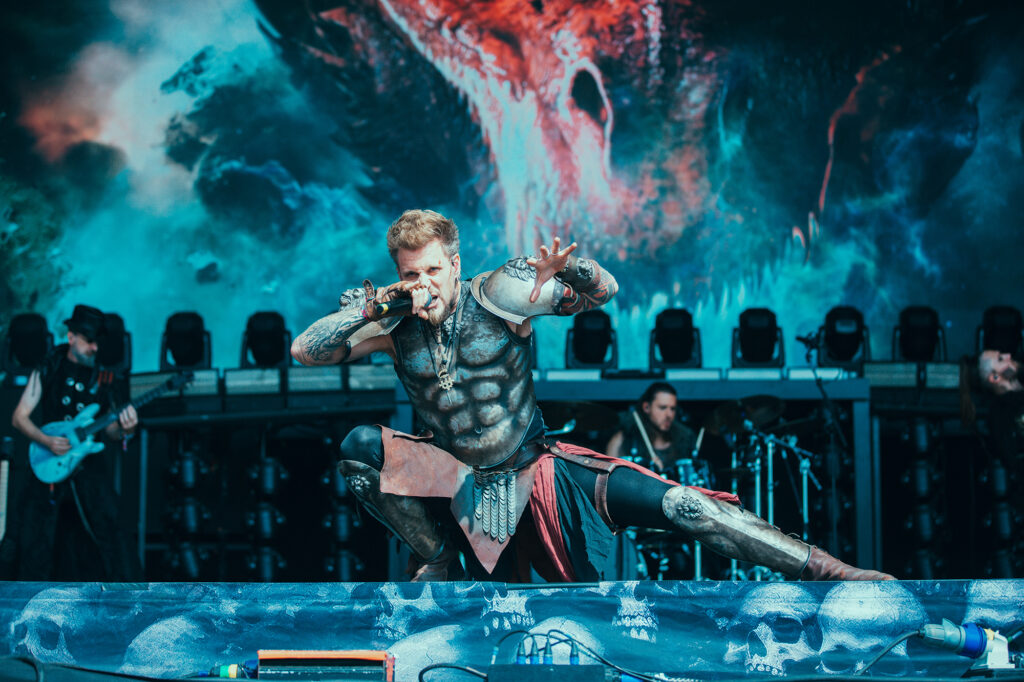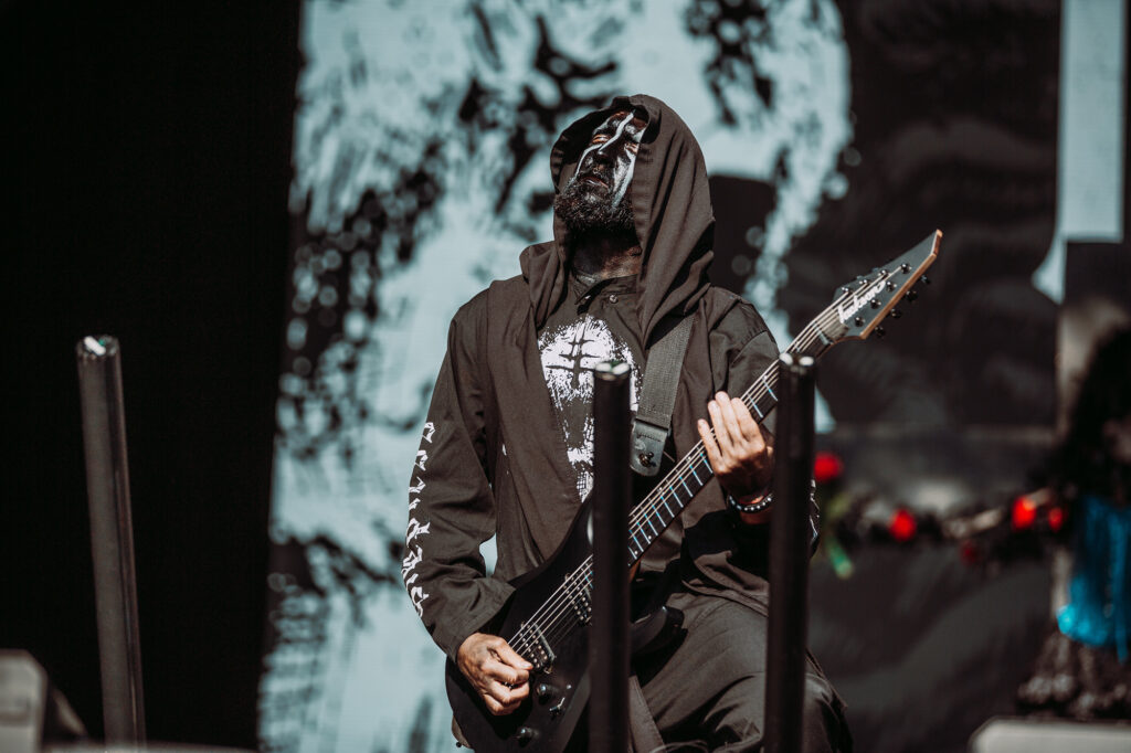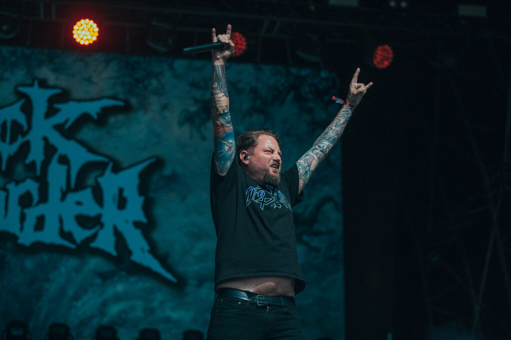 The spectacle hits you first: inflatable mascots towering over the Ronnie James Dio Stage, jets of flame punctuating every breakdown, and a production that wouldn’t look out of place in an arena. But it’s the parade of guests that really elevates proceedings. SLEEP TOKEN’s III appears for a thunderous Throes Of Perdition, fellow headliner Robb Flynn lends his growl to BLACK SABBATH’s Symptom Of The Universe whilst Ihsahn‘s mistimed entrance on In Waves becomes an endearing highlight rather than a mishap.