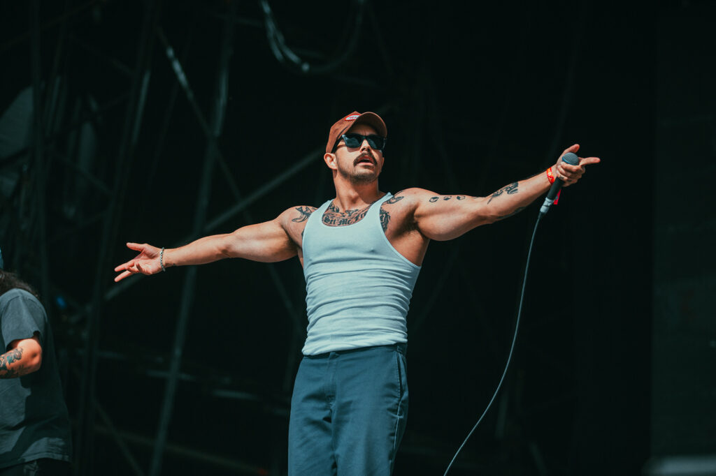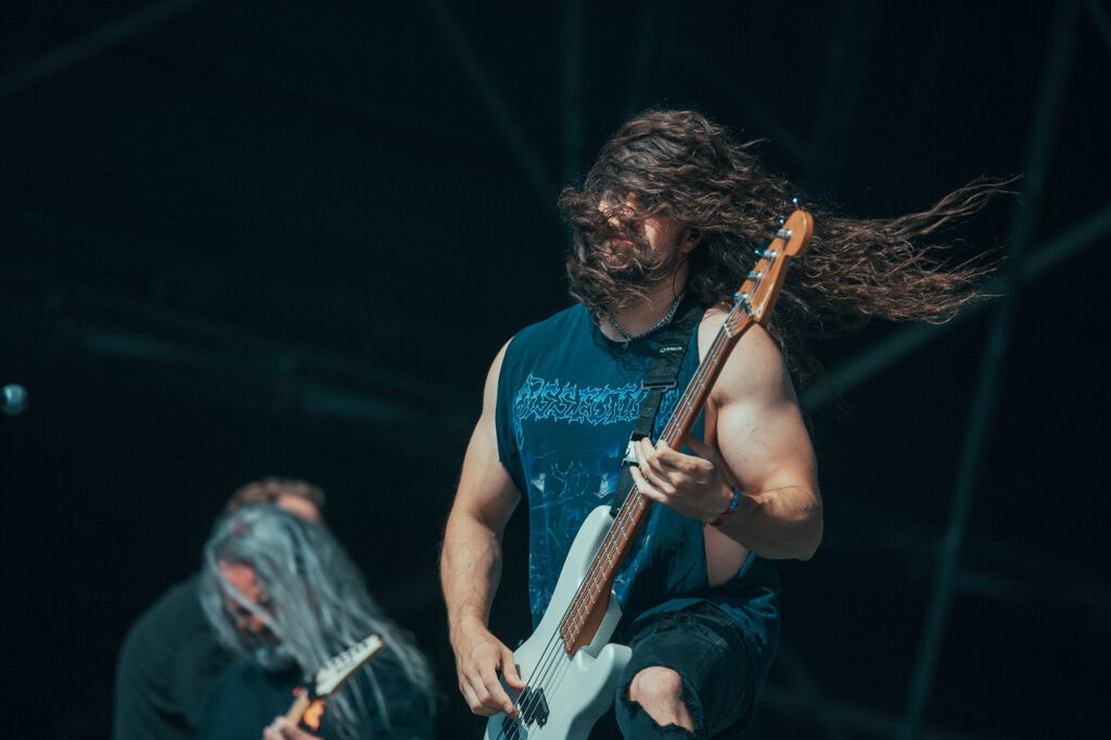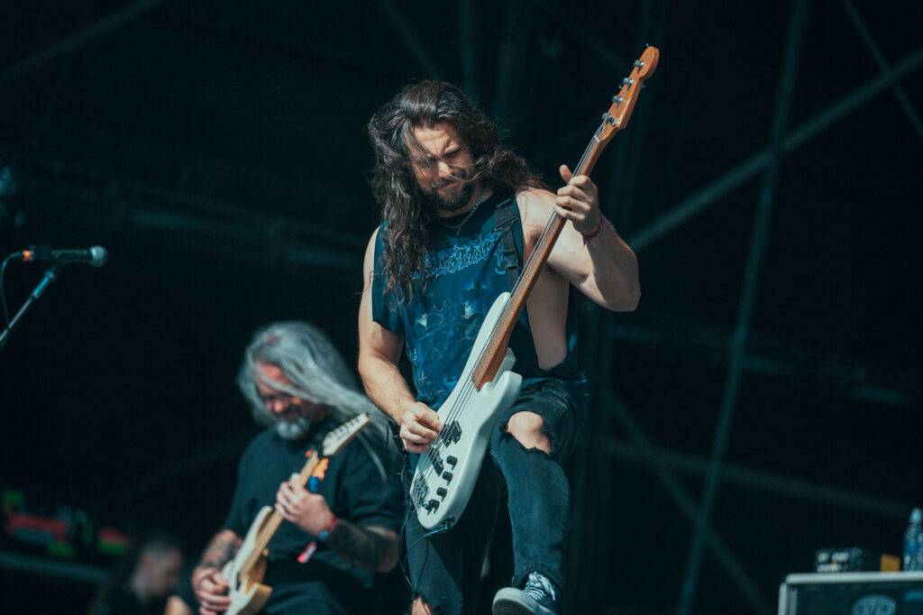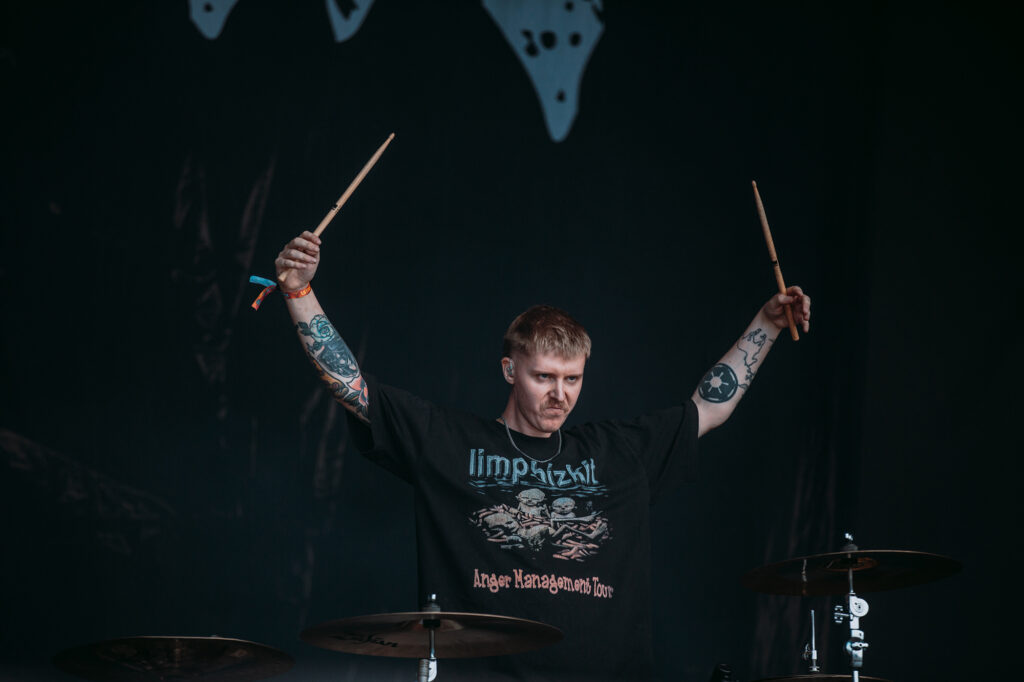 Switzerland’s deathcore champs PALCEFACE SWISS‘ stock has fast-risen in the past few years, with 2022’s Fear & Dagger and this year’s Cursed catapulting them into the same conversation as LORNA SHORE and next year’s headliners SLAUGHTER TO PREVAIL. And today’s set sees them earn their stripes and then some. As the angst-ridden opening duo of Hatred and …and with hope you’ll be damned creating dust clouds from circle pits and crowd surfers, PALEFACE SWISS come face-to-face with the main stage’s biggest crowd of the day. It’s their first UK festival show, and frontman Marc ‘Zelli’ Zellweger isn’t letting anyone off lightly. He might joke about the rare sighting of the sun leaving him looking like Mr Krabs once their finished, but he’s ribbing no one when he channels pre-That’s The Spirit-era Oli Sykes in baiting the crowd to go faster and harder with every song. The likes of Nail To The Tooth and Please End Me launch you headfirst into the dirt, whilst the call-and-response choruses of I Am A Cursed One and Best Before: Death feel like arena-ready anthems. As Love Burns sees them level the Ronnie James Dio Stage once more, one thing is clear: if PALEFACE SWISS aren’t headlining the Ronnie James Dio Stage in the next five years, something’s gone very wrong.