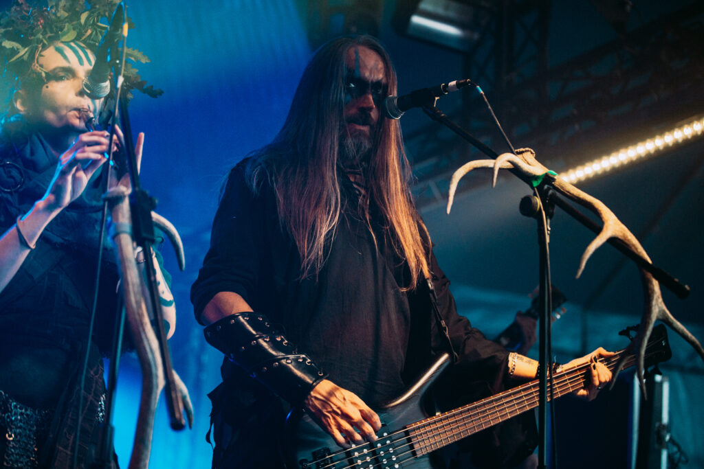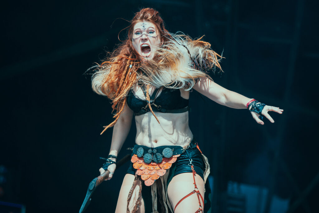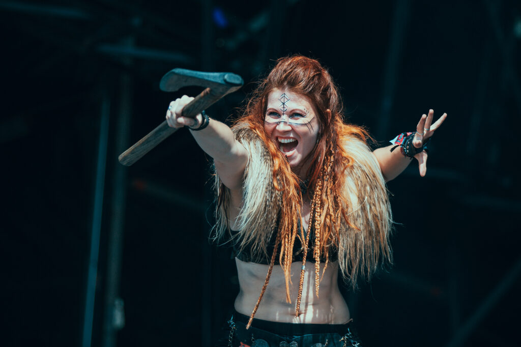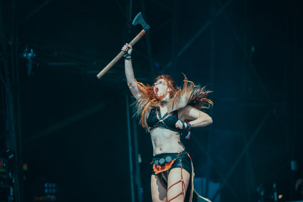 Over on the New Blood Stage next, there’s a rare sighting of a folk metal band. The sub-genre is underrepresented this year, but our hopes are raised when roadies stick antlers to the mic stands, and then fully met when THUNARWOLF walk out. Their set is twenty-minutes of galloping rhythms and manly jigging, and they’re loads of fun. There are four guys in the pit dressed as bananas, a face-painted barbarian playing a mandolin, and it’s very easy to get caught up in all the “woah-oh-ohs” in the choruses. The Friday line up is stacked, but THUNARWOLF are one of the quiet triumphs of the early afternoon.