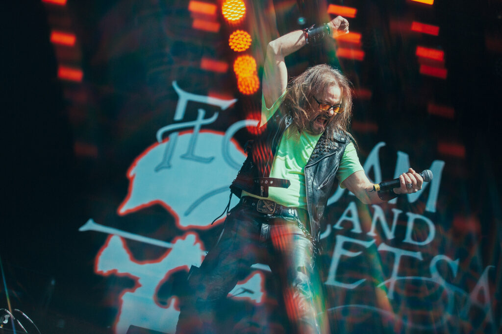 Back on the Ronnie James Dio Stage, we’re in desperate need of a pick-me-up. The arena has been subjected to a lot of slow-motion doom for the past hour, and while it has been terrific, it’s not quite been the free-wheeling heavy metal party we were hoping for on the drive up. Then a group of men in their sixties appear and the place goes berserk, FLOTSAM & JETSAM giving us a serious, old-school riot. The veteran thrashers are best known nowadays for once having a young Jason Newstead in their ranks, but they also have an incredible fifteen albums to their name and know how to kick some serious arse. They bound across the stage like hyperactive teenagers, blasting out melodic thrash anthems and it freaking rules. New songs like Brace For Impact sit comfortably alongside classics like No Place For Disgrace, and they show all the young whippersnappers backstage how to trigger a mosh.