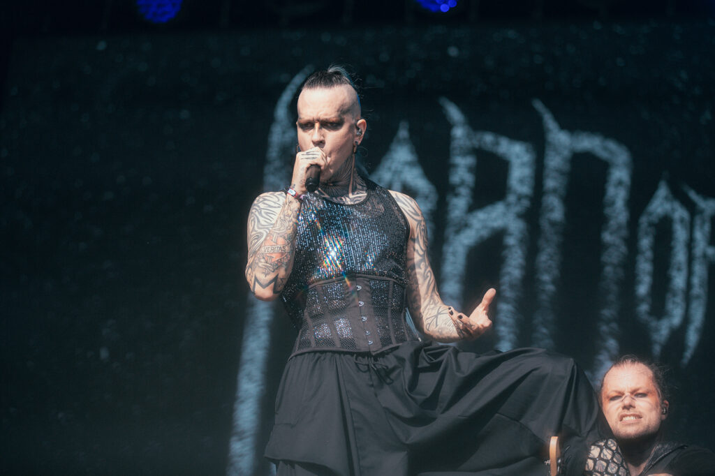 There’s something of a reality check next as LORD OF THE LOST take the main stage. They’re best known in these parts for their Eurovision appearance, but they had an extensive career prior to that and at their heart, they’ve always been a metal band. Blood And Glitter closes the show, but for the preceding hour, they go into darker territory than you might expect. There’s plenty of pomp and melodrama, but there’s also a plethora of heavy guitar riffs, pounding drums, and gnarly vocals. Drag Me To Hell in particular, is one massive roar of industrial anguish that dashes hopes for an hour of high camp partying. That being said, while LORD OF THE LOST clearly have their fans, they haven’t caught the attention of as many people necessary to justify their placement on the bill. There’s a decent number of folks dancing and singing along to their Gothic anthems, but they’d have been better suited to going on after FEUERSCHWANZ and swapping places with THE BLACK DAHLIA MURDER. It is a decent show, but we’re rapidly approaching the end of the weekend, and they didn’t have enough of an impact for this late in the day.