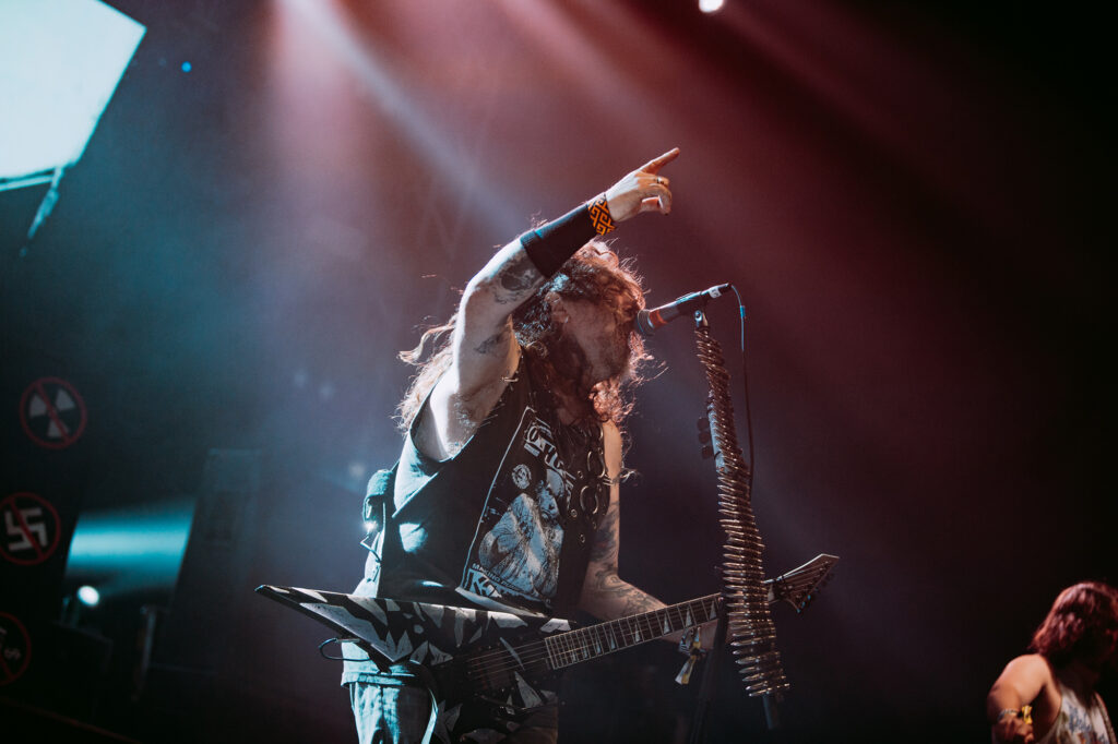Kicking off with the wicked double whammy of Imperium and Ten Ton Hammer is a hell of a way to get things moving, and it only escalates from there. Comparative newcomer Choke On The Ashes Of Your Hate is treated like an old favourite, Now We Die is pure pit carnage, and there’s a welcome appearance from the standalone hit Is There Anybody Out There?. For all the cast iron bangers in their repertoire though, the highlight of the set isn’t even a song. Ahead of a particularly emotive Darkness Within, Robb makes a short speech about their friend and longtime UK publicist Michelle Kerr, who passed away last year. Describing her as a “bad ass bitch who could drink anyone under the table,” it’s a heartfelt and genuine tribute, and within minutes, there’s not a dry eye in the house.