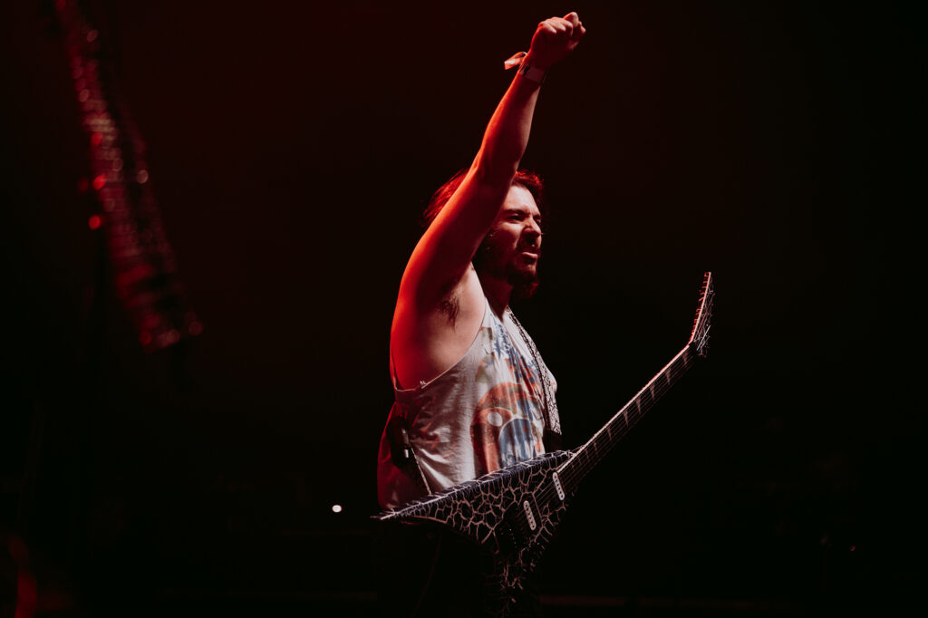 Let’s be real: there’s still no new music since 2021’s Fortitude. But there’s enough pyro to put both RAMMSTEIN and the local fire department on red alert. There’s confetti, there’s flames, there’s even fish and chips for £10 – thanks to drummer Mario Duplantier’s Love Actually-esque cardboard sign routine. Visually, it’s a spectacle made for stadiums. It’s almost as if they watched TRIVIUM and MACHINE HEAD, and said “hold our beers”.