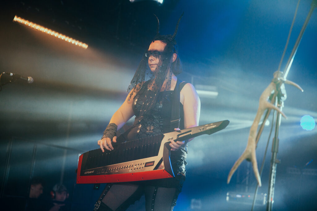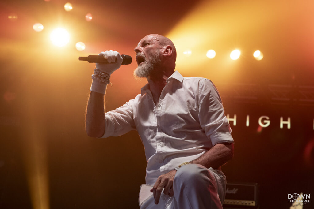 There’s been some drama around Aaron Stainthorpe of late, the legendary vocalist being notably absent from a tour with his ‘main band’ MY DYING BRIDE and rumours about his future swarming him like bees attacking a hornet. But as he takes the stage tonight, dressed entirely in white and half his face coated in make-up, he’s clearly in a good mood. HIGH PARASITE might deal in Gothic metal, but he’s laidback and full of self-deprecating humour. Not that the music itself reflects this. HIGH PARASITE are the soundtrack to driving modified sports cars around a neon-lit Tokyo shortly after getting your heart broken, and there are decades of anguish mixed into these melodies. They are energetic, epic, and make us all pause to check we haven’t turned into anime characters. They’ve got the chops to evolve into a full-time act and their singer has a lot of life left in him.