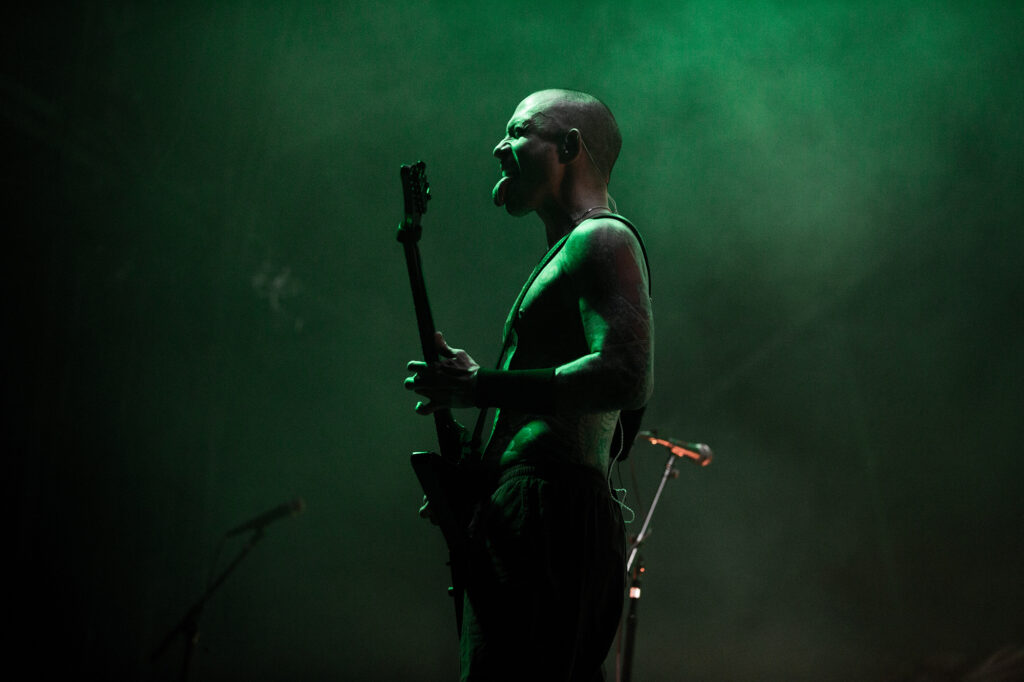Should three grown men, cosplaying in garden gnome hats and singing about being eaten alive by Ogres, be this darn good? If riffs, riffs, and even more riffs be something you wish, you might as well flop on the deck like a fish, because GNOME delivers in spades. Despite those first few pints of the festival being downed by punters, the trio of Rutger Verbist, Egon Loosveldt, and Geoffrey Verhulst’s blend of stoner rock and prog metal pops off in The Sophie Lancaster Stage. When the band announces it’s their biggest show ever, with smiles on their faces, the roars nearly drown them out. And speaking of drowning, Verbist’s vocals sometimes get swallowed in the mix, which suggests the sound desk is still waking up after a year’s slumber. Despite this, the likes of Old Souls, Rotten Tongue, and The Ogre still sound absolutely massive in the tent and serve as the perfect warm-up.
