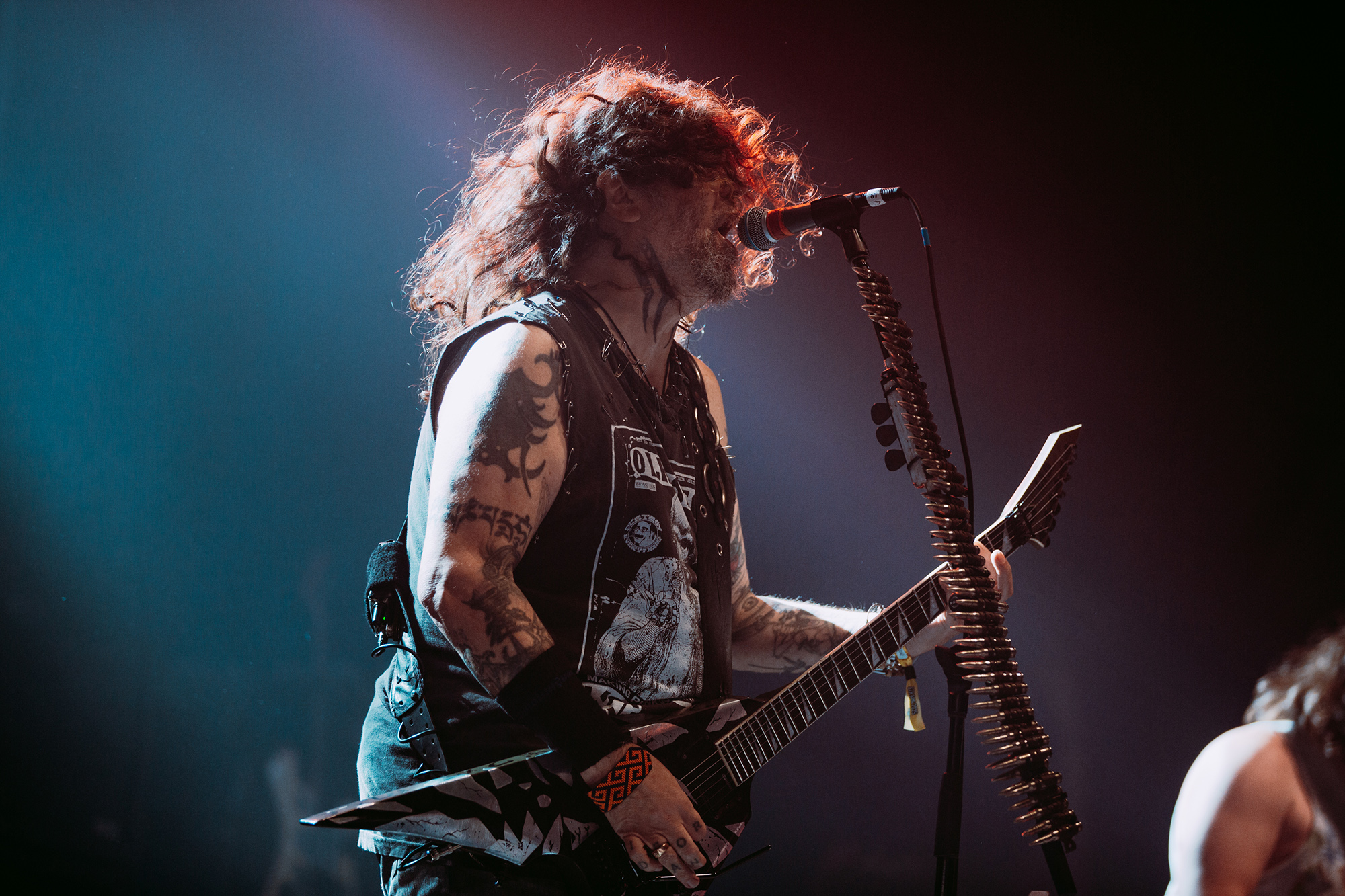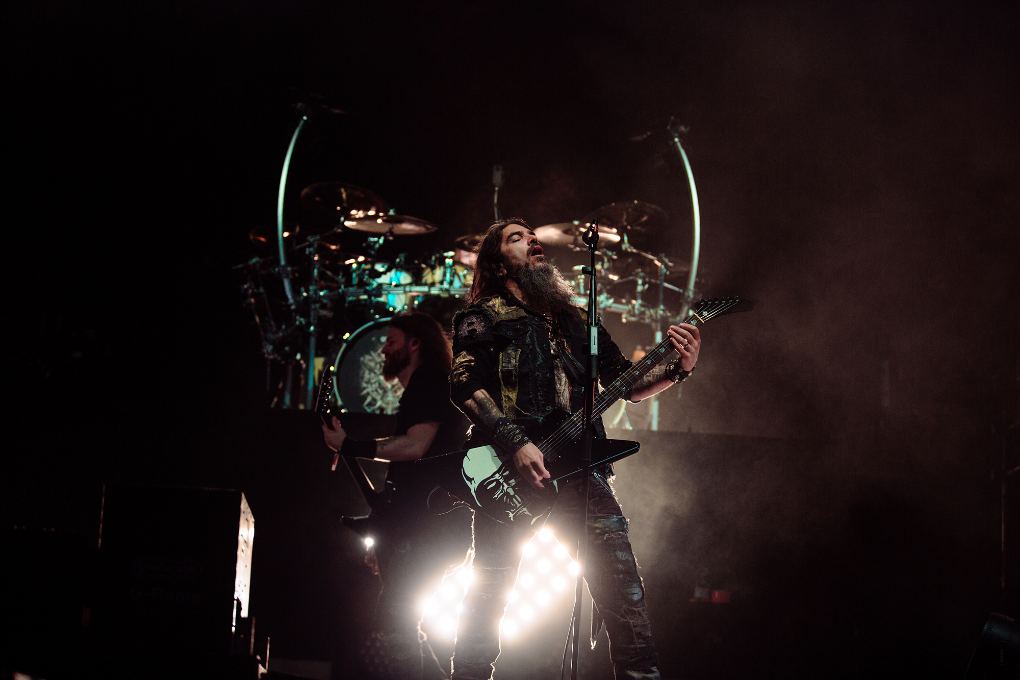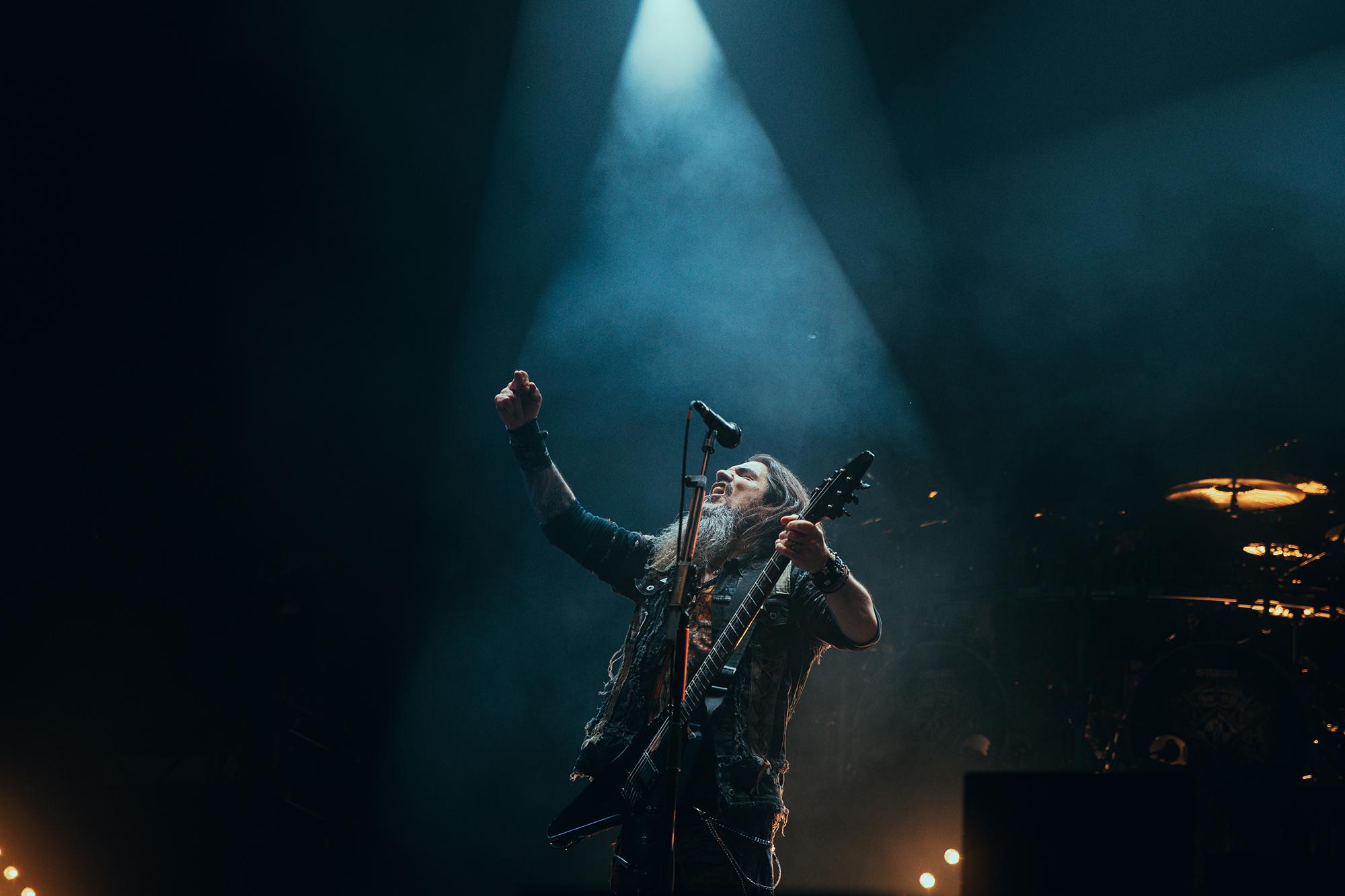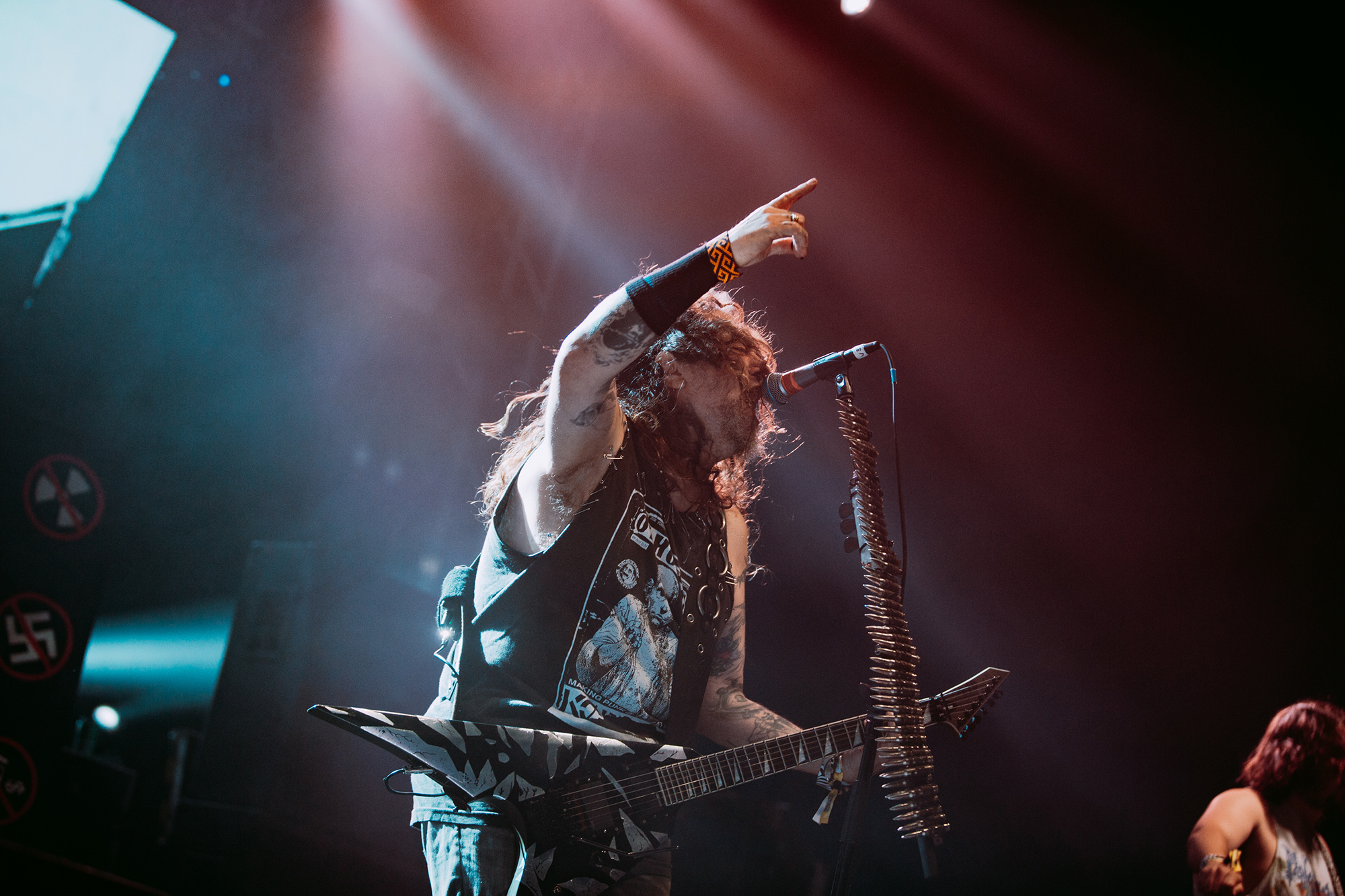 Kicking off with the wicked double whammy of Imperium and Ten Ton Hammer is a hell of a way to get things moving, and it only escalates from there. Comparative newcomer Choke On The Ashes Of Your Hate is treated like an old favourite, Now We Die is pure pit carnage, and there’s a welcome appearance from the standalone hit Is There Anybody Out There?. For all the cast iron bangers in their repertoire though, the highlight of the set isn’t even a song. Ahead of a particularly emotive Darkness Within, Robb makes a short speech about their friend and longtime UK publicist Michelle Kerr, who passed away last year. Describing her as a “bad ass bitch who could drink anyone under the table,” it’s a heartfelt and genuine tribute, and within minutes, there’s not a dry eye in the house.