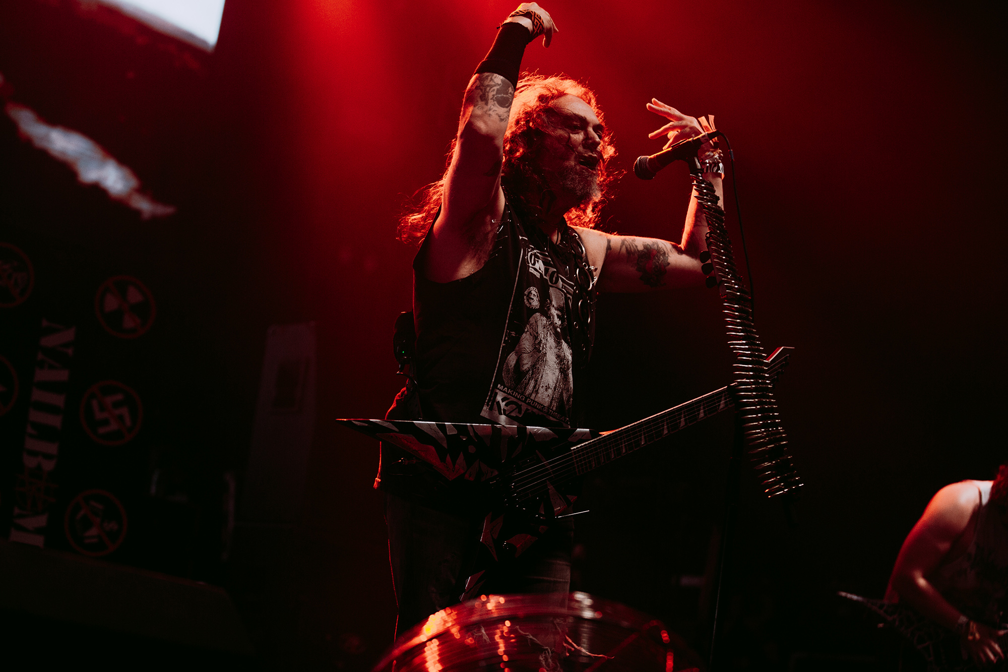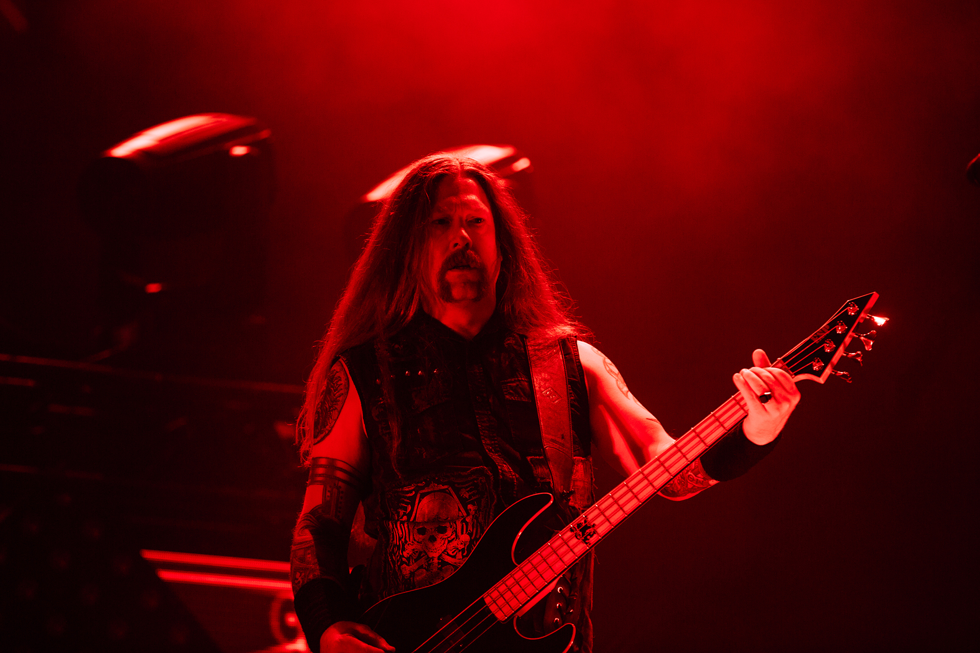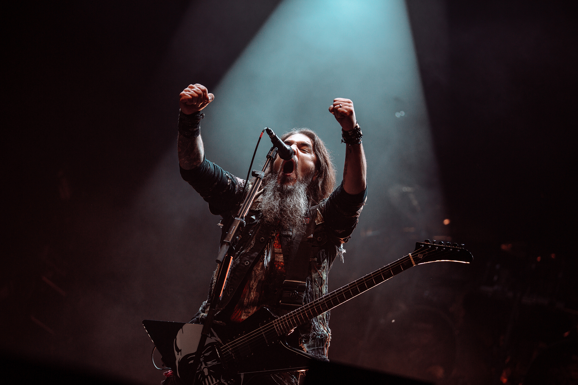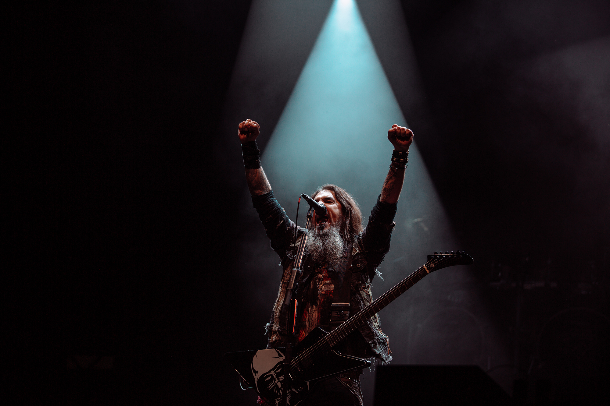 Kicking off with the wicked double whammy of Imperium and Ten Ton Hammer is a hell of a way to get things moving, and it only escalates from there. Comparative newcomer Choke On The Ashes Of Your Hate is treated like an old favourite, Now We Die is pure pit carnage, and there’s a welcome appearance from the standalone hit Is There Anybody Out There?. For all the cast iron bangers in their repertoire though, the highlight of the set isn’t even a song. Ahead of a particularly emotive Darkness Within, Robb makes a short speech about their friend and longtime UK publicist Michelle Kerr, who passed away last year. Describing her as a “bad ass bitch who could drink anyone under the table,” it’s a heartfelt and genuine tribute, and within minutes, there’s not a dry eye in the house.