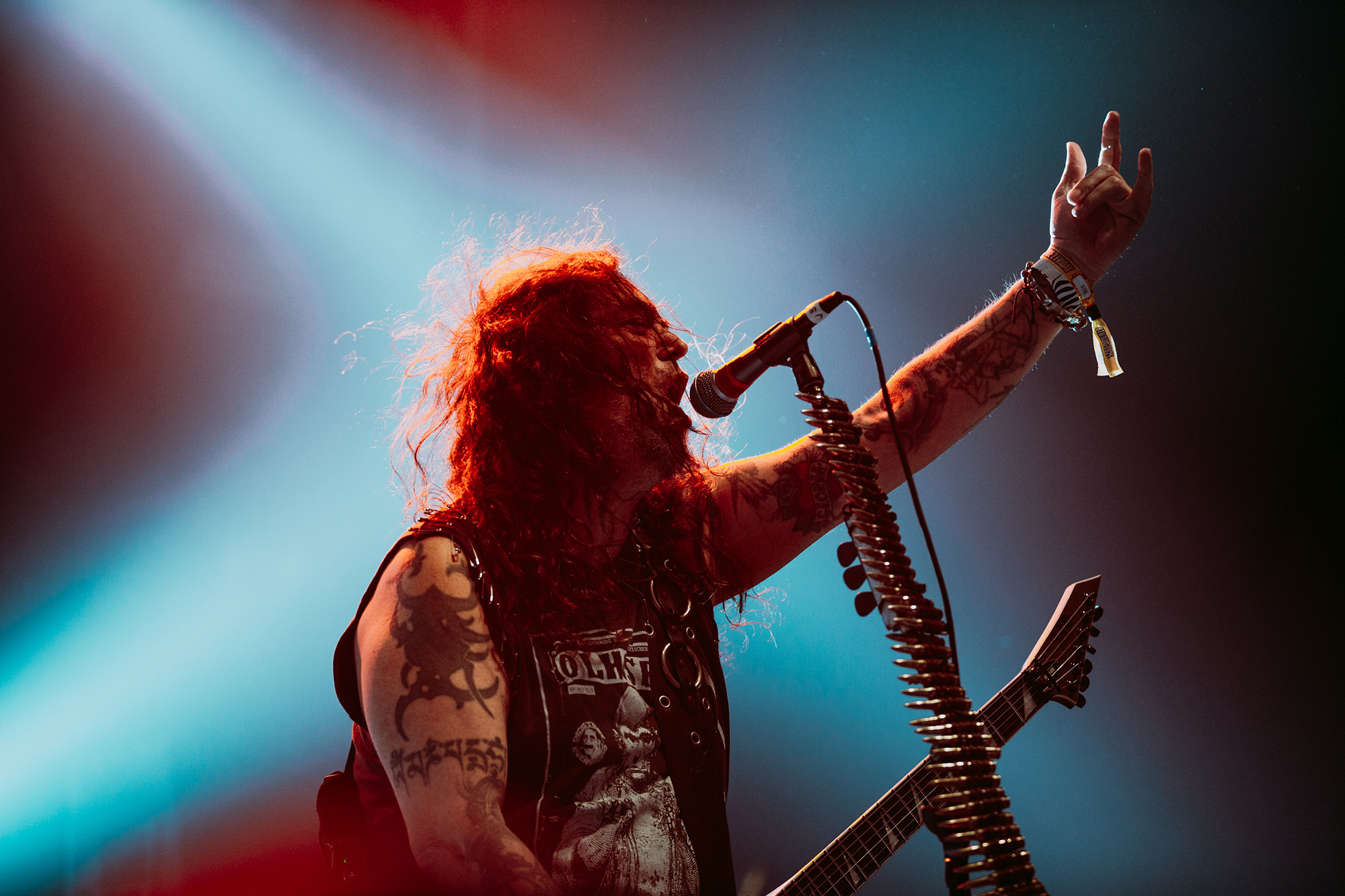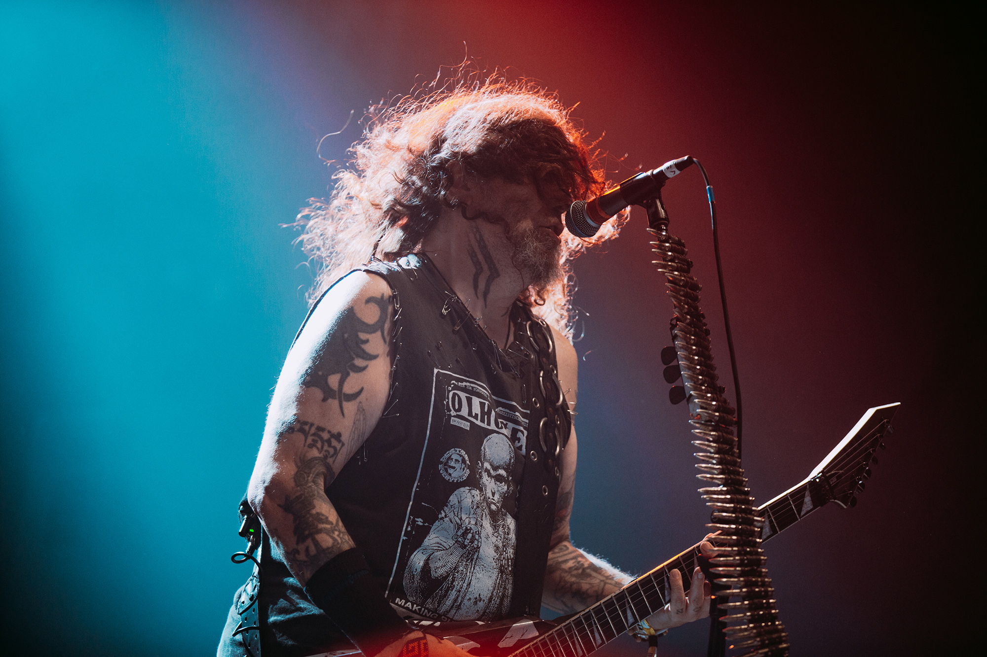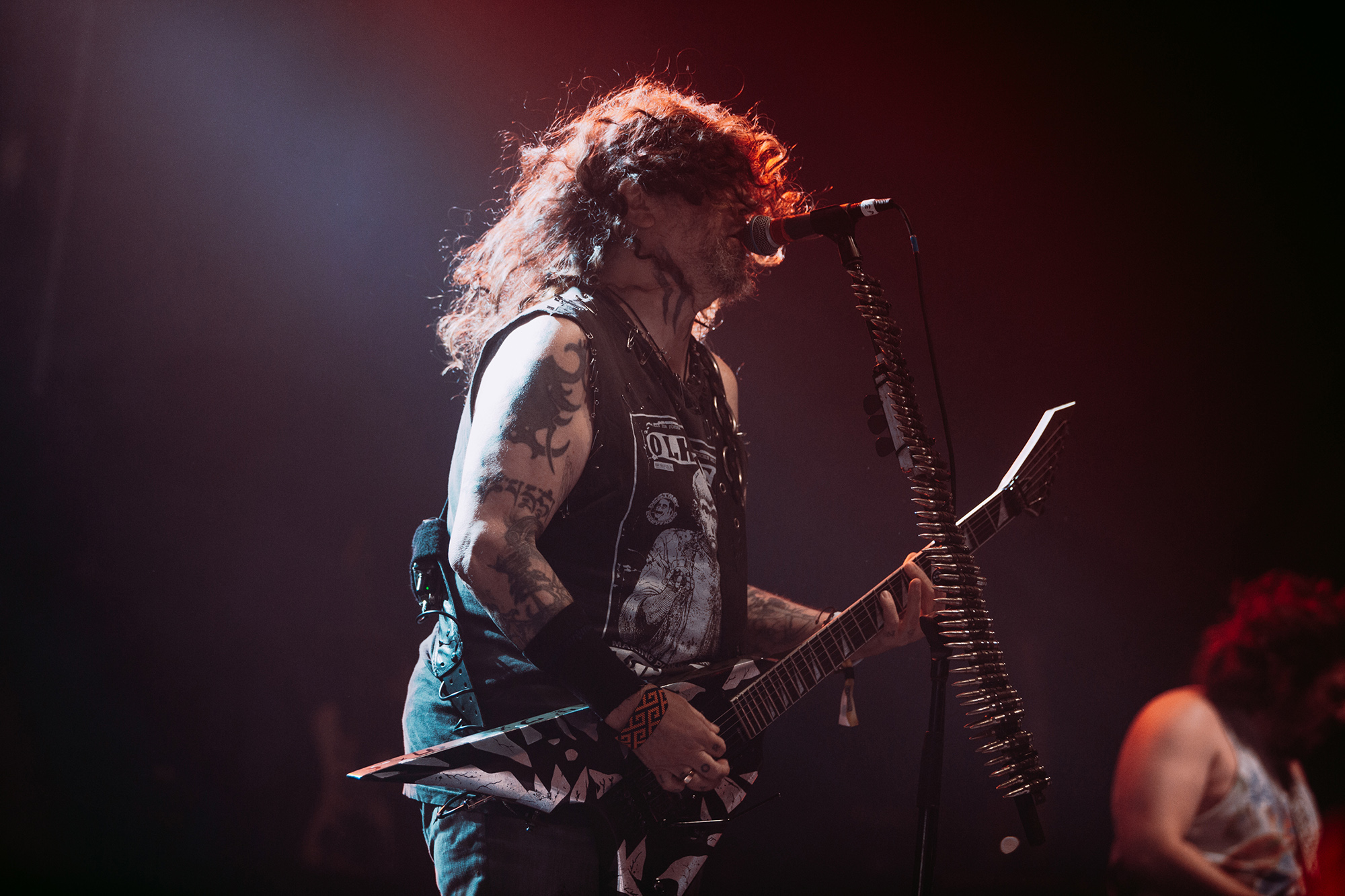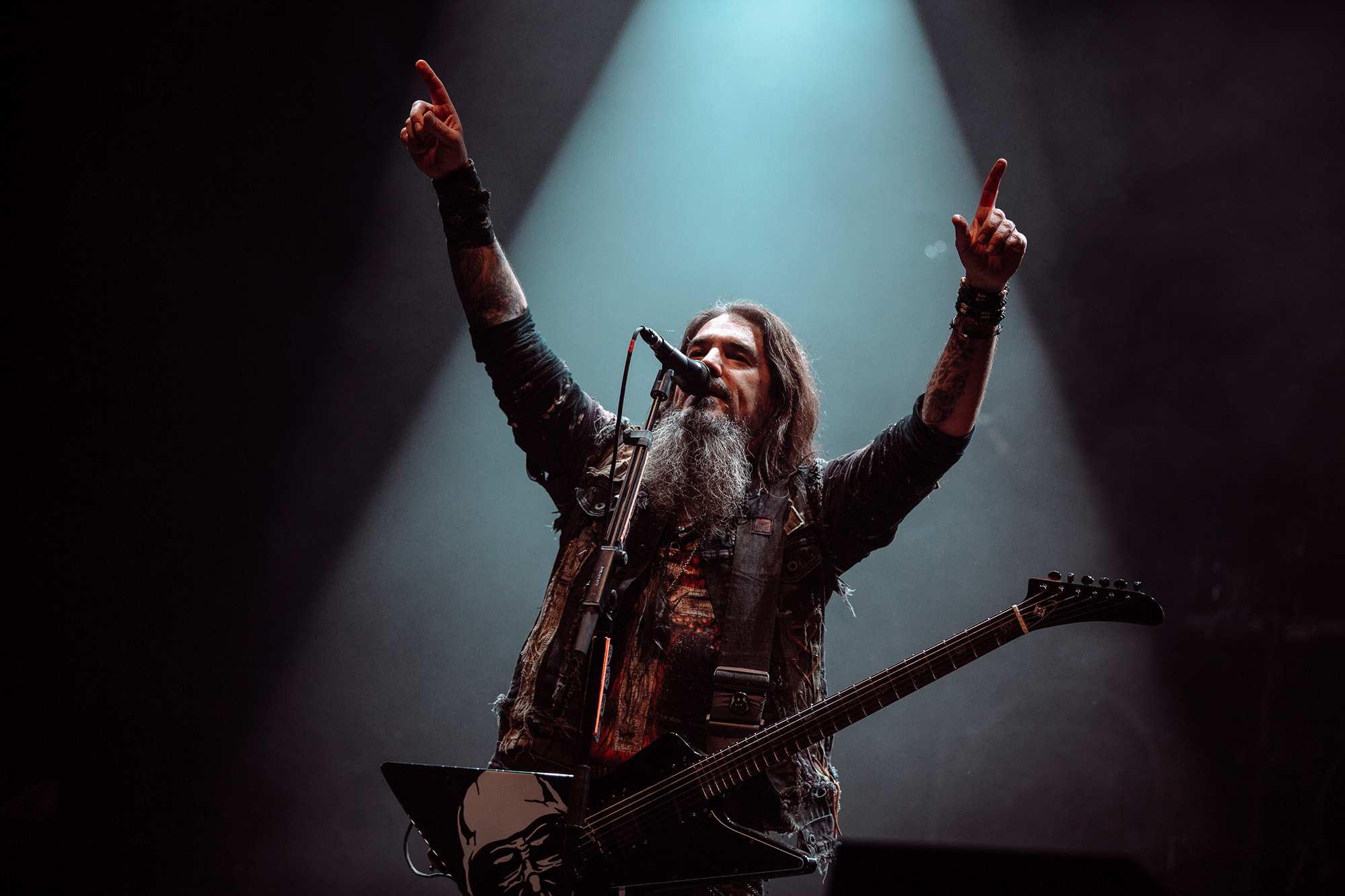 Kicking off with the wicked double whammy of Imperium and Ten Ton Hammer is a hell of a way to get things moving, and it only escalates from there. Comparative newcomer Choke On The Ashes Of Your Hate is treated like an old favourite, Now We Die is pure pit carnage, and there’s a welcome appearance from the standalone hit Is There Anybody Out There?. For all the cast iron bangers in their repertoire though, the highlight of the set isn’t even a song. Ahead of a particularly emotive Darkness Within, Robb makes a short speech about their friend and longtime UK publicist Michelle Kerr, who passed away last year. Describing her as a “bad ass bitch who could drink anyone under the table,” it’s a heartfelt and genuine tribute, and within minutes, there’s not a dry eye in the house.