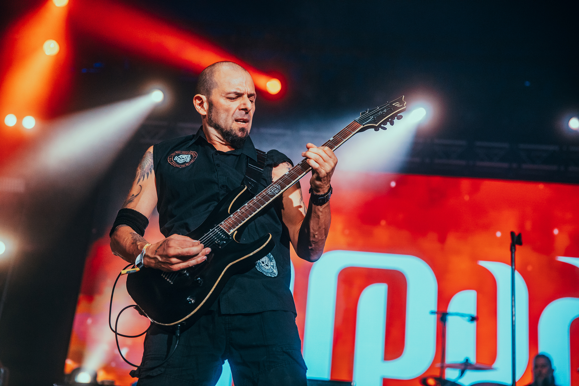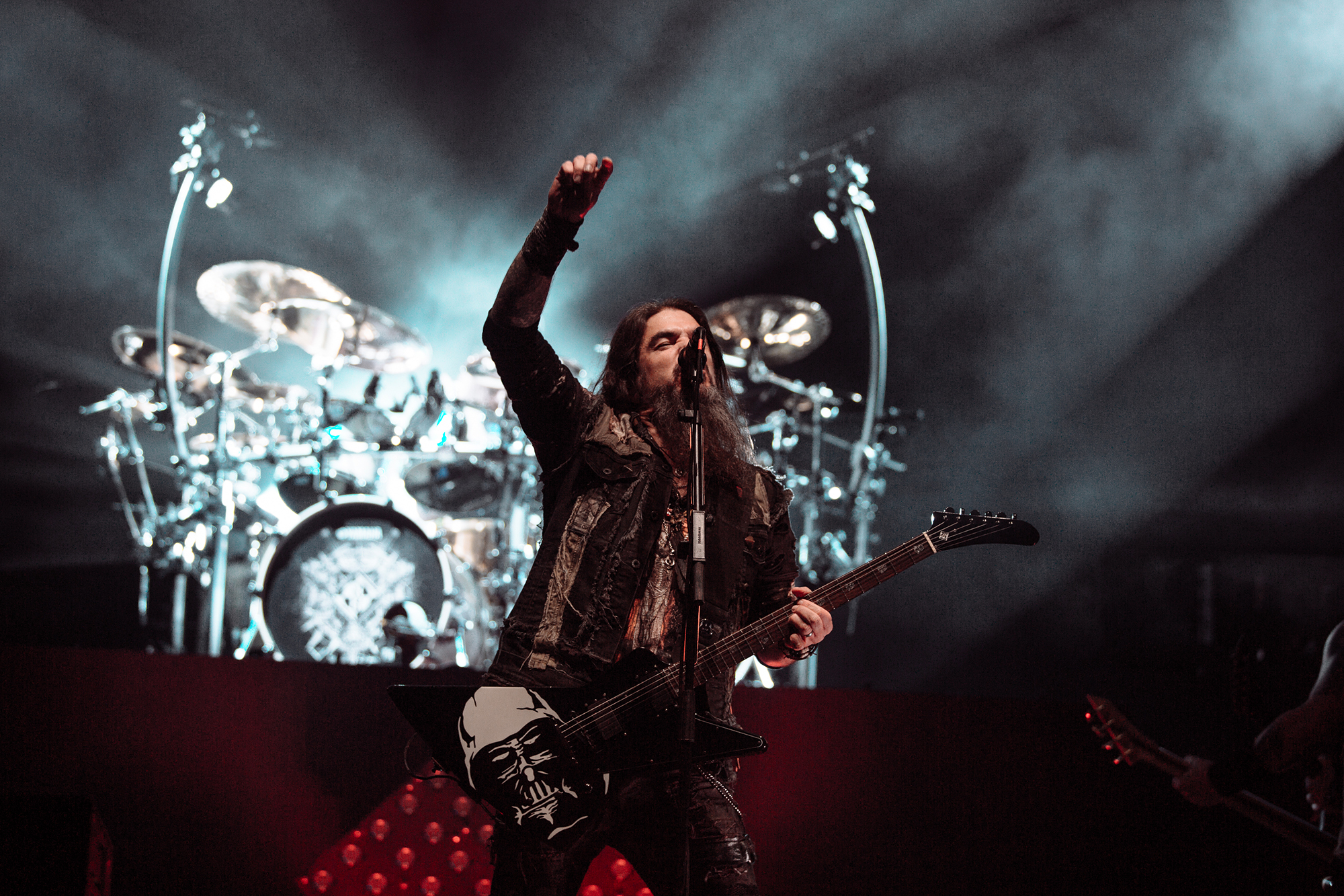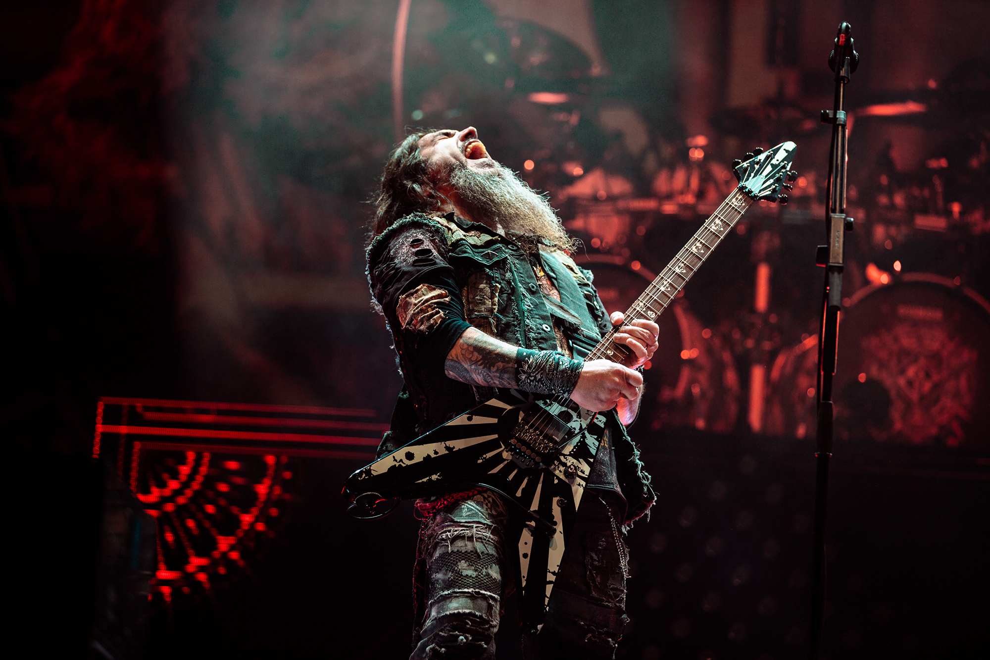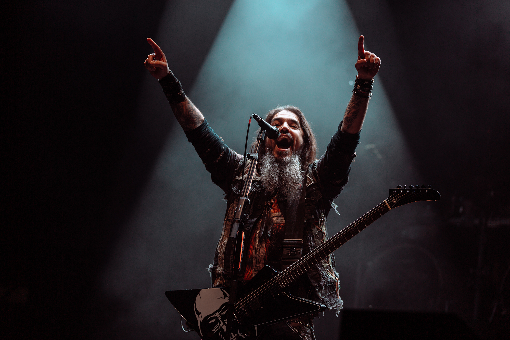 Kicking off with the wicked double whammy of Imperium and Ten Ton Hammer is a hell of a way to get things moving, and it only escalates from there. Comparative newcomer Choke On The Ashes Of Your Hate is treated like an old favourite, Now We Die is pure pit carnage, and there’s a welcome appearance from the standalone hit Is There Anybody Out There?. For all the cast iron bangers in their repertoire though, the highlight of the set isn’t even a song. Ahead of a particularly emotive Darkness Within, Robb makes a short speech about their friend and longtime UK publicist Michelle Kerr, who passed away last year. Describing her as a “bad ass bitch who could drink anyone under the table,” it’s a heartfelt and genuine tribute, and within minutes, there’s not a dry eye in the house.