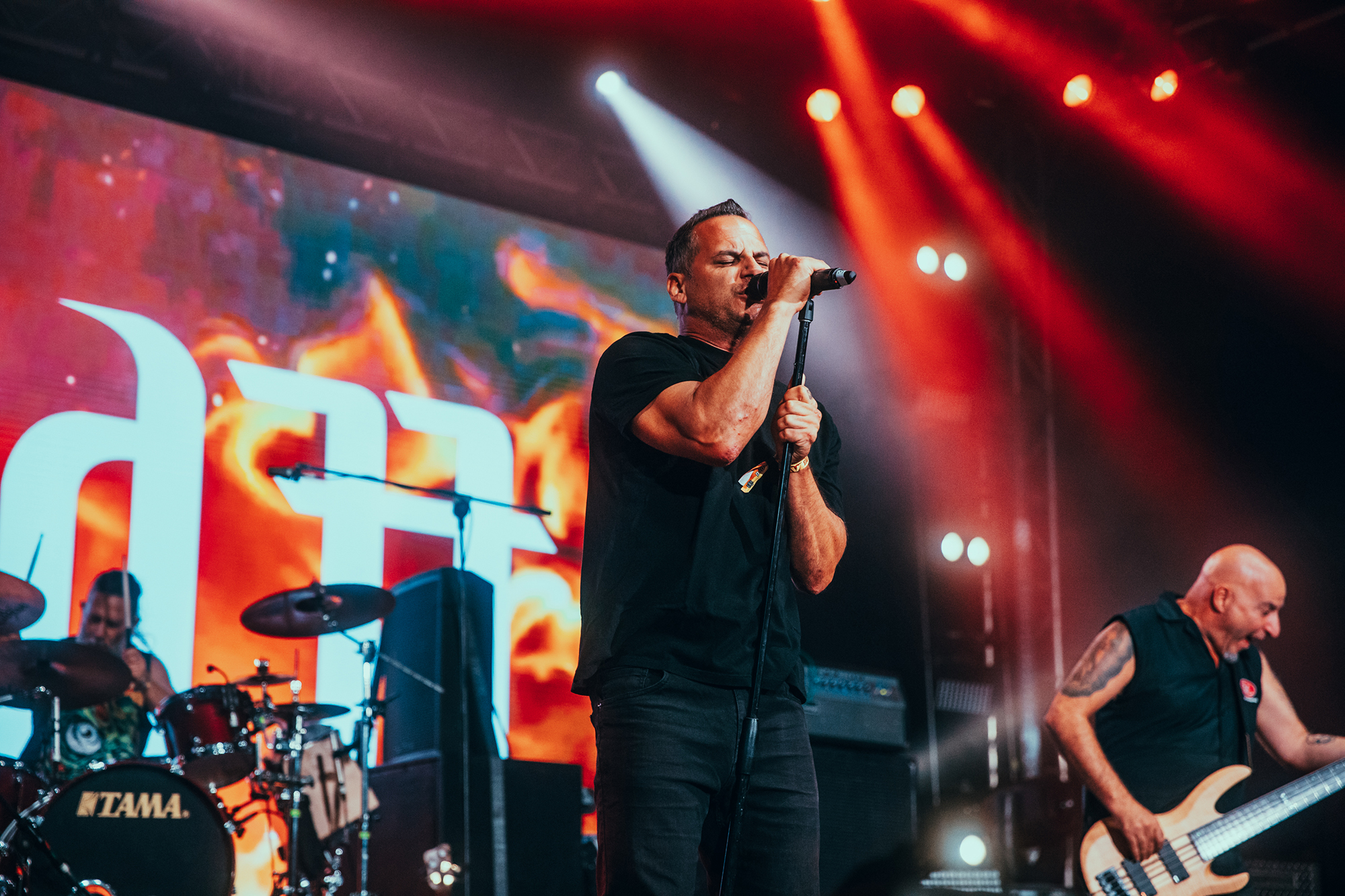One of the biggest surprises of this year’s festival is how popular BREED 77 are. Our more long-in-the-tooth readers might remember them as being the perpetual support act of the early to mid-2000s, and a reliable, if unspectacular band who enjoyed moderate success but were never world beaters. But as the hour approaches and the Sophie Lancaster Stage is filled with ever more excited fans, it seems we might have underestimated the lads from Gibraltar. From the opening World’s On Fire to the closing La Ultima Hora, they’re treated like returning heroes. The crowd sings back with hearty enthusiasm, crowd surfers spill over the barrier, and it’s a rousing, uplifting experience. We didn’t have BREED 77 having a renaissance on our predictions for 2025, but here we are. And credit to them, they do a better cover of Zombie than BAD WOLVES do.