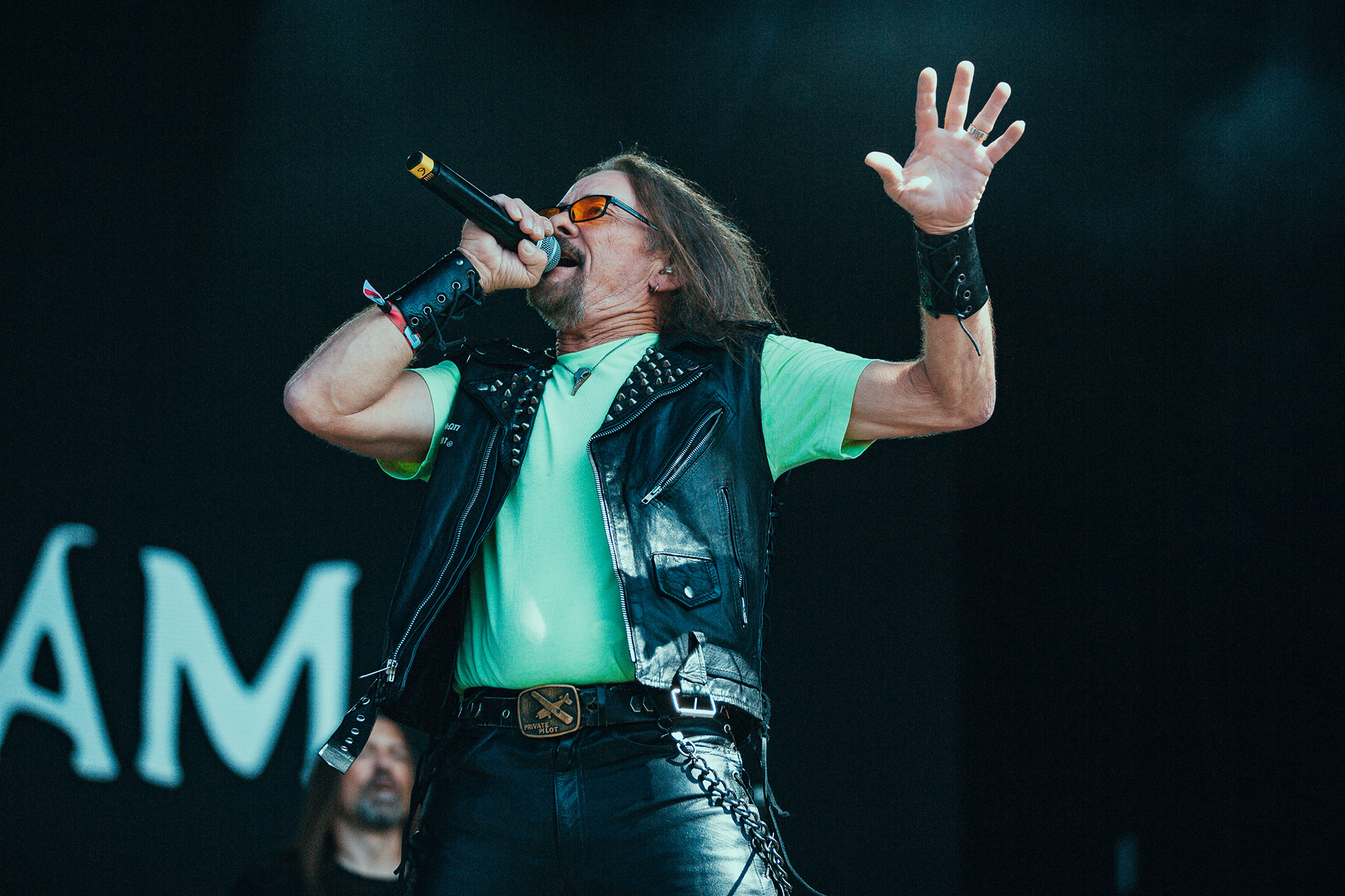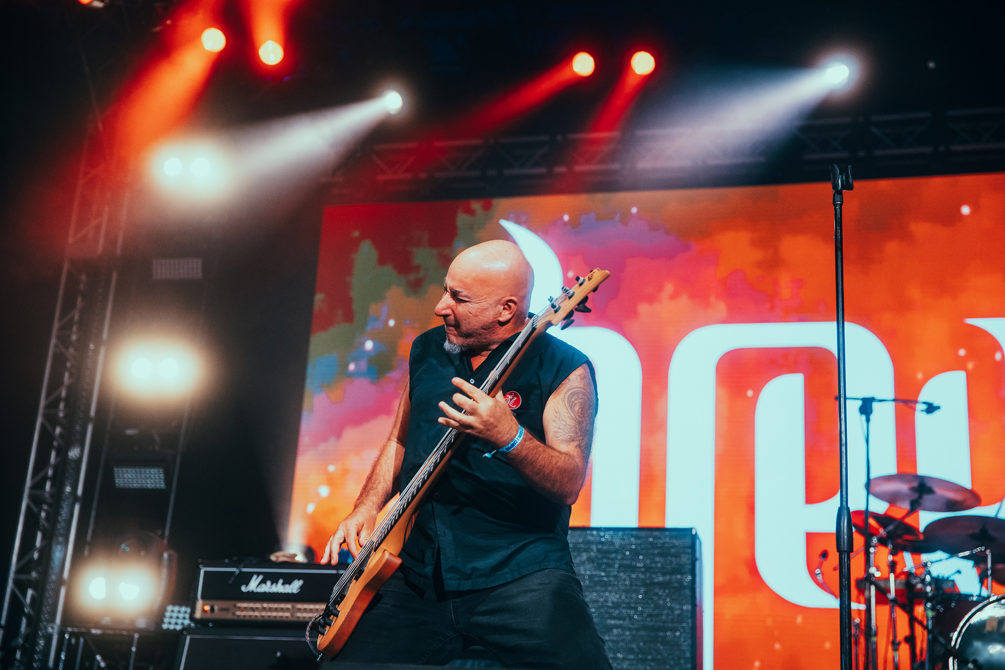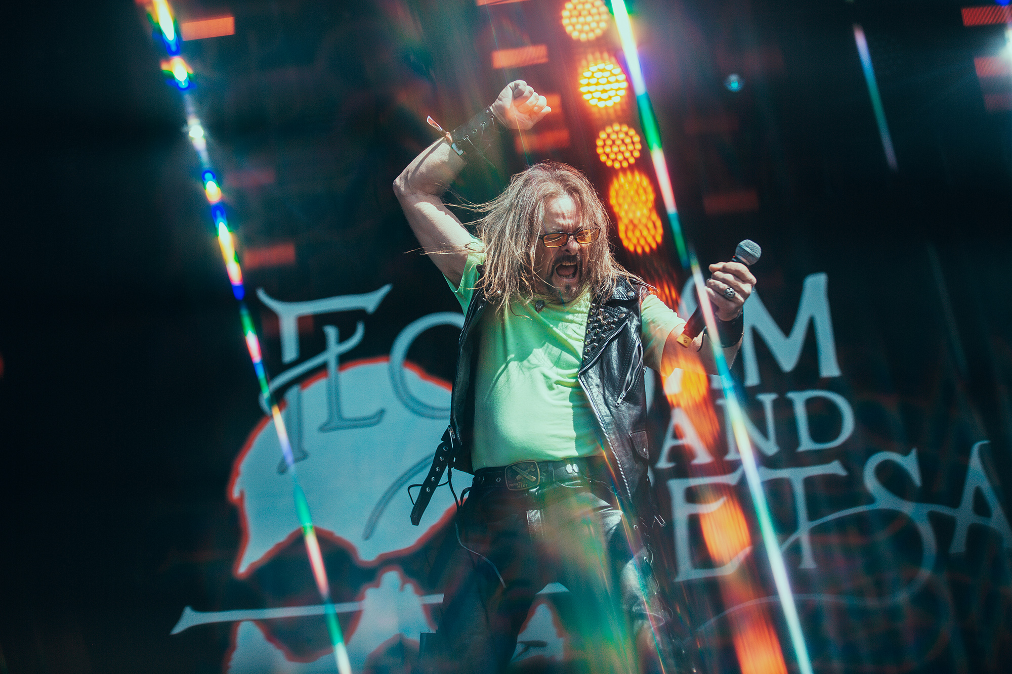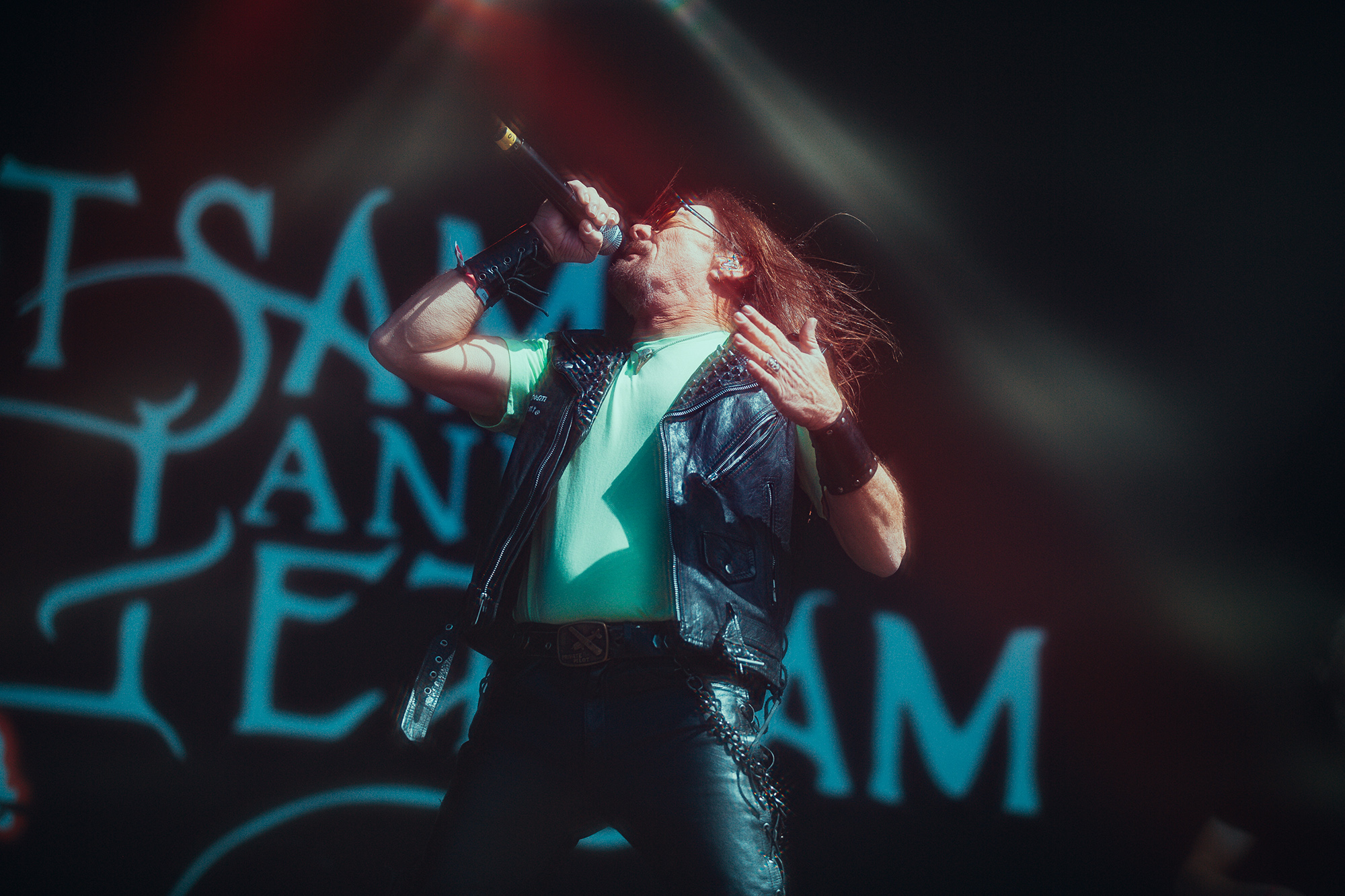 Back on the Ronnie James Dio Stage, we’re in desperate need of a pick-me-up. The arena has been subjected to a lot of slow-motion doom for the past hour, and while it has been terrific, it’s not quite been the free-wheeling heavy metal party we were hoping for on the drive up. Then a group of men in their sixties appear and the place goes berserk, FLOTSAM & JETSAM giving us a serious, old-school riot. The veteran thrashers are best known nowadays for once having a young Jason Newstead in their ranks, but they also have an incredible fifteen albums to their name and know how to kick some serious arse. They bound across the stage like hyperactive teenagers, blasting out melodic thrash anthems and it freaking rules. New songs like Brace For Impact sit comfortably alongside classics like No Place For Disgrace, and they show all the young whippersnappers backstage how to trigger a mosh.