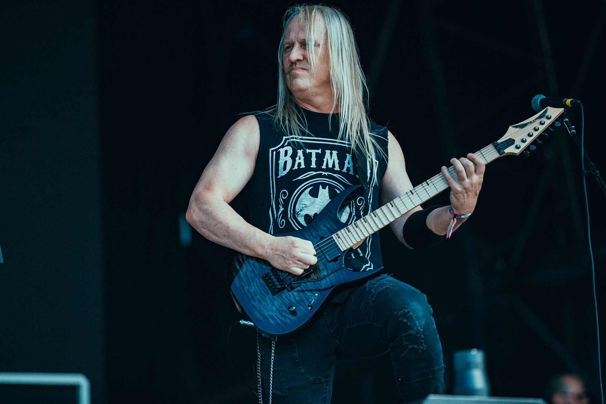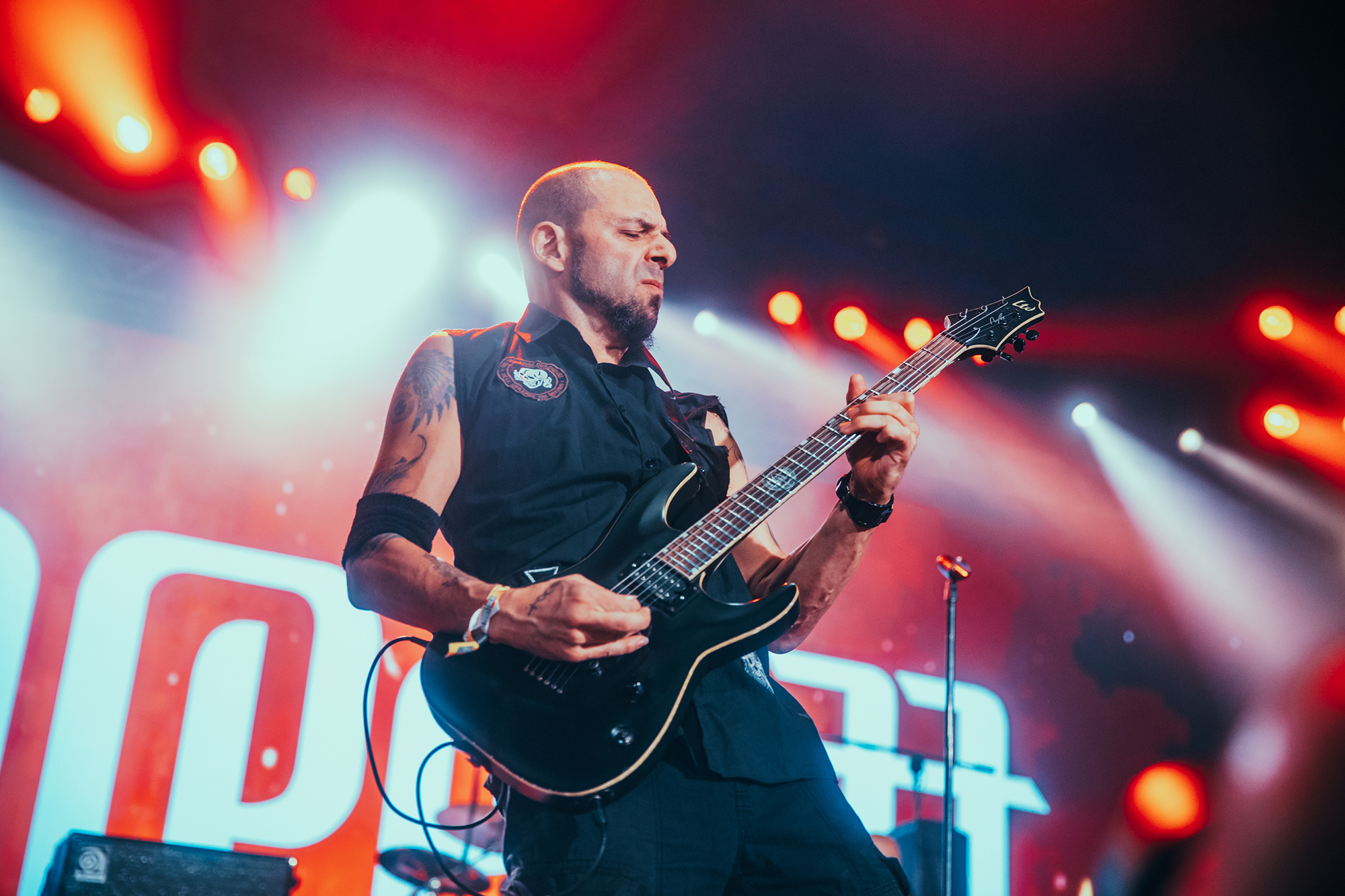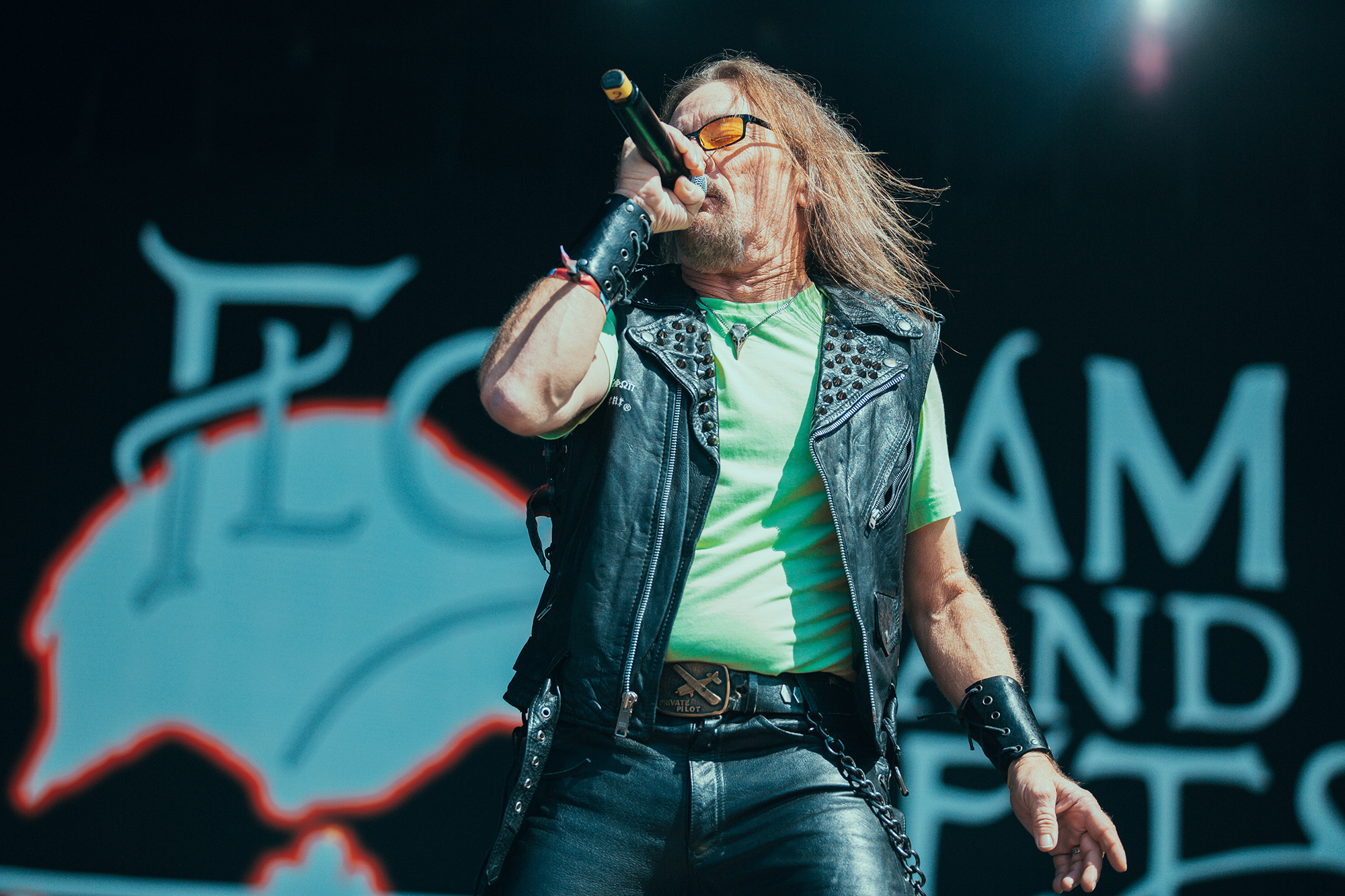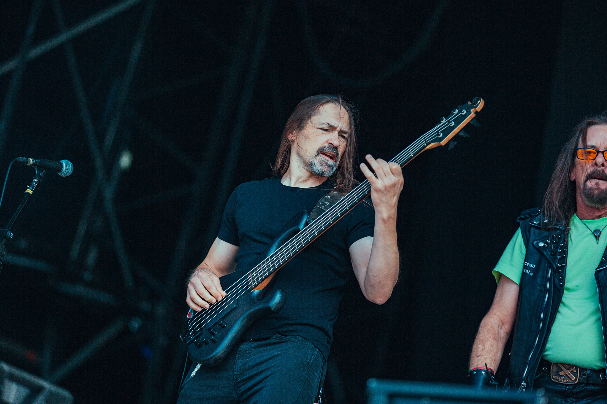 Back on the Ronnie James Dio Stage, we’re in desperate need of a pick-me-up. The arena has been subjected to a lot of slow-motion doom for the past hour, and while it has been terrific, it’s not quite been the free-wheeling heavy metal party we were hoping for on the drive up. Then a group of men in their sixties appear and the place goes berserk, FLOTSAM & JETSAM giving us a serious, old-school riot. The veteran thrashers are best known nowadays for once having a young Jason Newstead in their ranks, but they also have an incredible fifteen albums to their name and know how to kick some serious arse. They bound across the stage like hyperactive teenagers, blasting out melodic thrash anthems and it freaking rules. New songs like Brace For Impact sit comfortably alongside classics like No Place For Disgrace, and they show all the young whippersnappers backstage how to trigger a mosh.